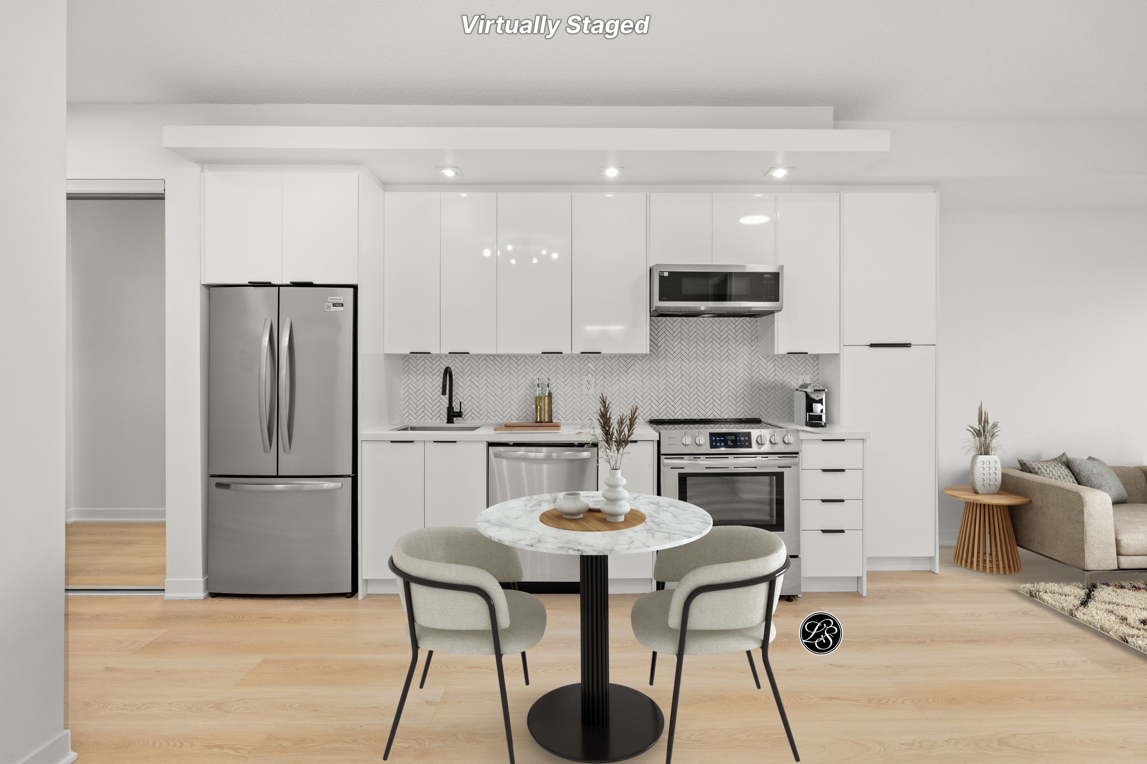 Welcome to California Condos in Mystic Pointe, where modern living meets an exceptional lifestyle. This beautifully updated suite features nearly complete renovations throughout, including new premium vinyl flooring, kitchen cabinetry/hardware, large sink with a stylish faucet, and newer appliances for your convenience. The partially updated bathroom also boasts a new vanity and mirror, creating a fresh, contemporary feel from the moment you walk in. The primary bedroom features a spacious closet with modern custom shelving for exceptional organization and style. After dinner, step out onto the balcony to enjoy the breathtaking sunsets. Residents of California Condos enjoy a remarkable collection of amenities designed for wellness, recreation, and social connection. These include both an indoor and outdoor pool, saunas, hot tubs, two well-equipped gyms on separate levels, a basketball and badminton court, yoga and pilates studio, a party room, guest suites, ample visitor parking, 24 hr security/concierge services, among many others. Nestled just steps from Grand Avenue Park and Humber Bay Shores, this vibrant location provides walking access to the lakefront, scenic trails, cafes, dining options, and the lively community charm that makes this neighbourhood highly sought after. Additionally, you have the highway, TTC, and Mimico GO nearby. This beautifully updated condo, located in an amenity-rich building in one of South Etobicoke's most desirable areas, presents an exceptional lifestyle opportunity. Your new home awaits!