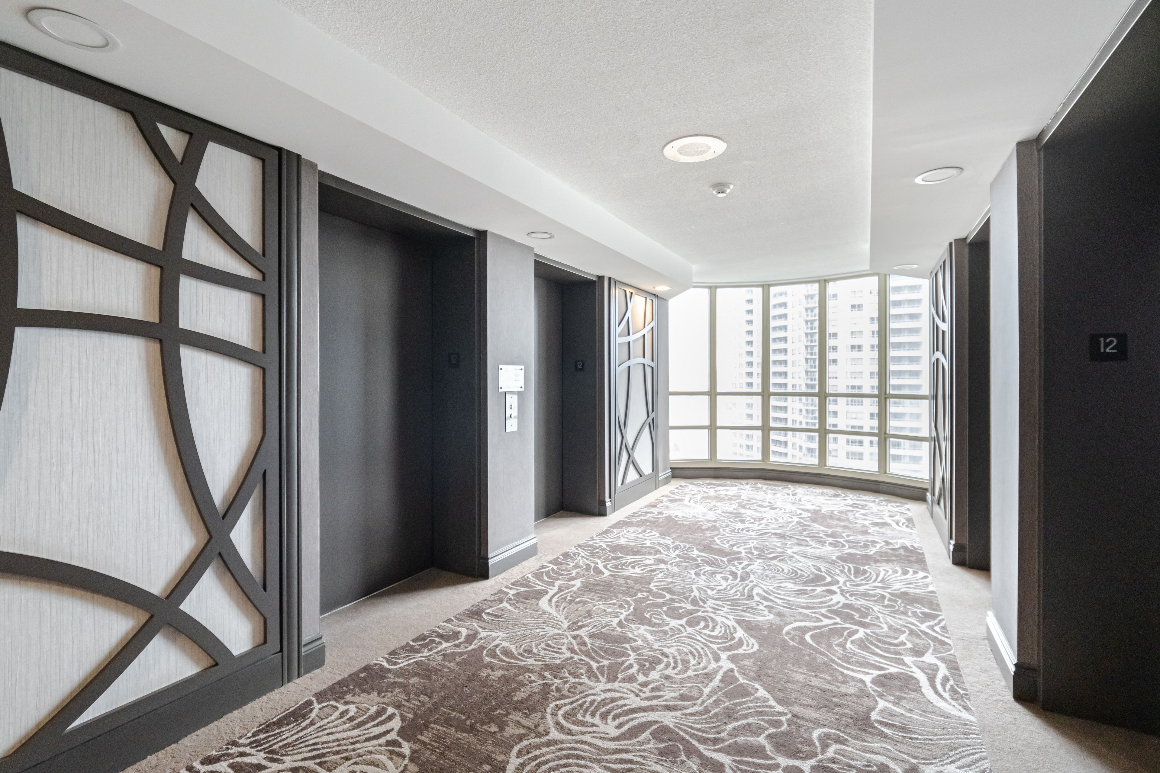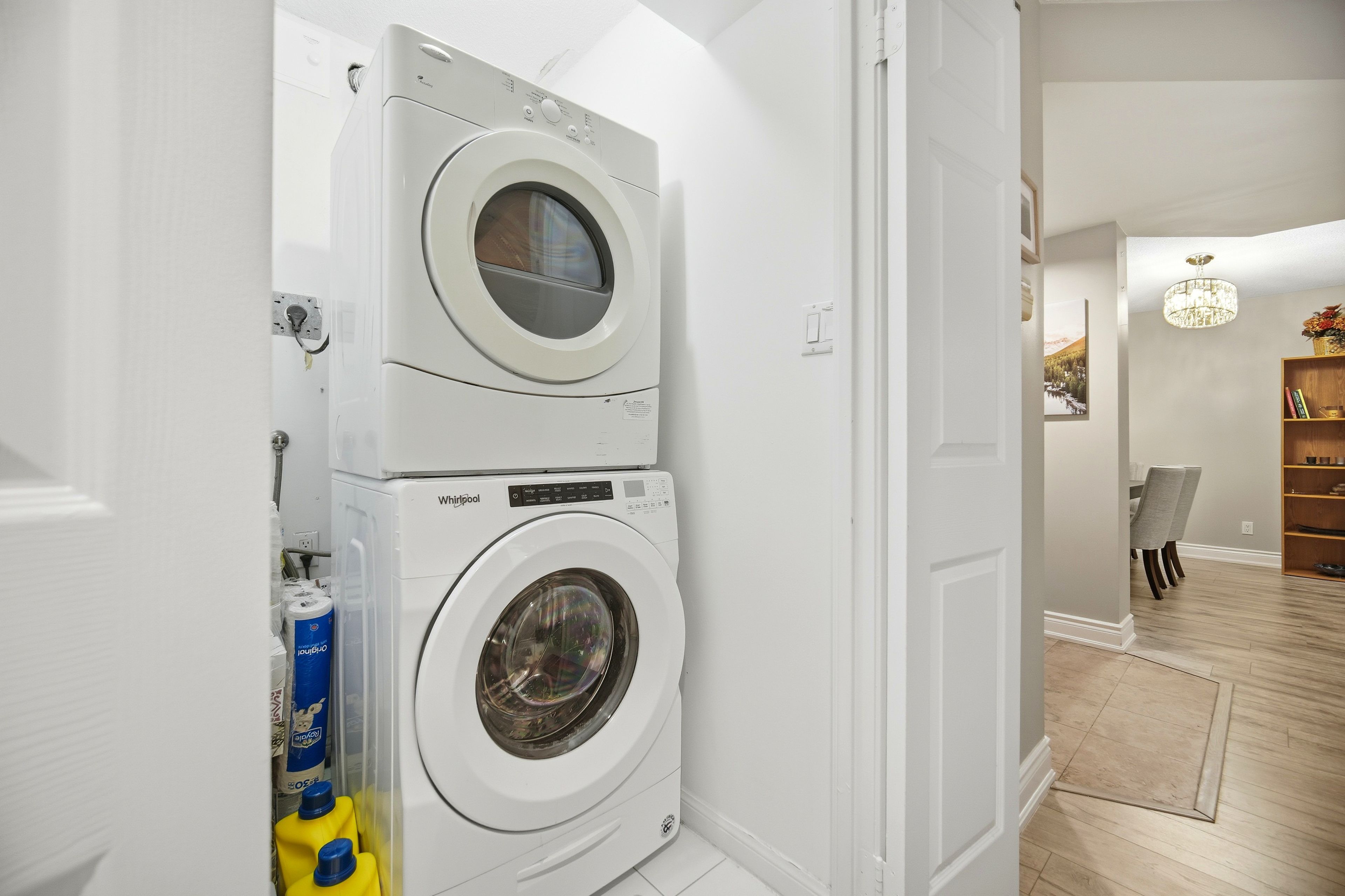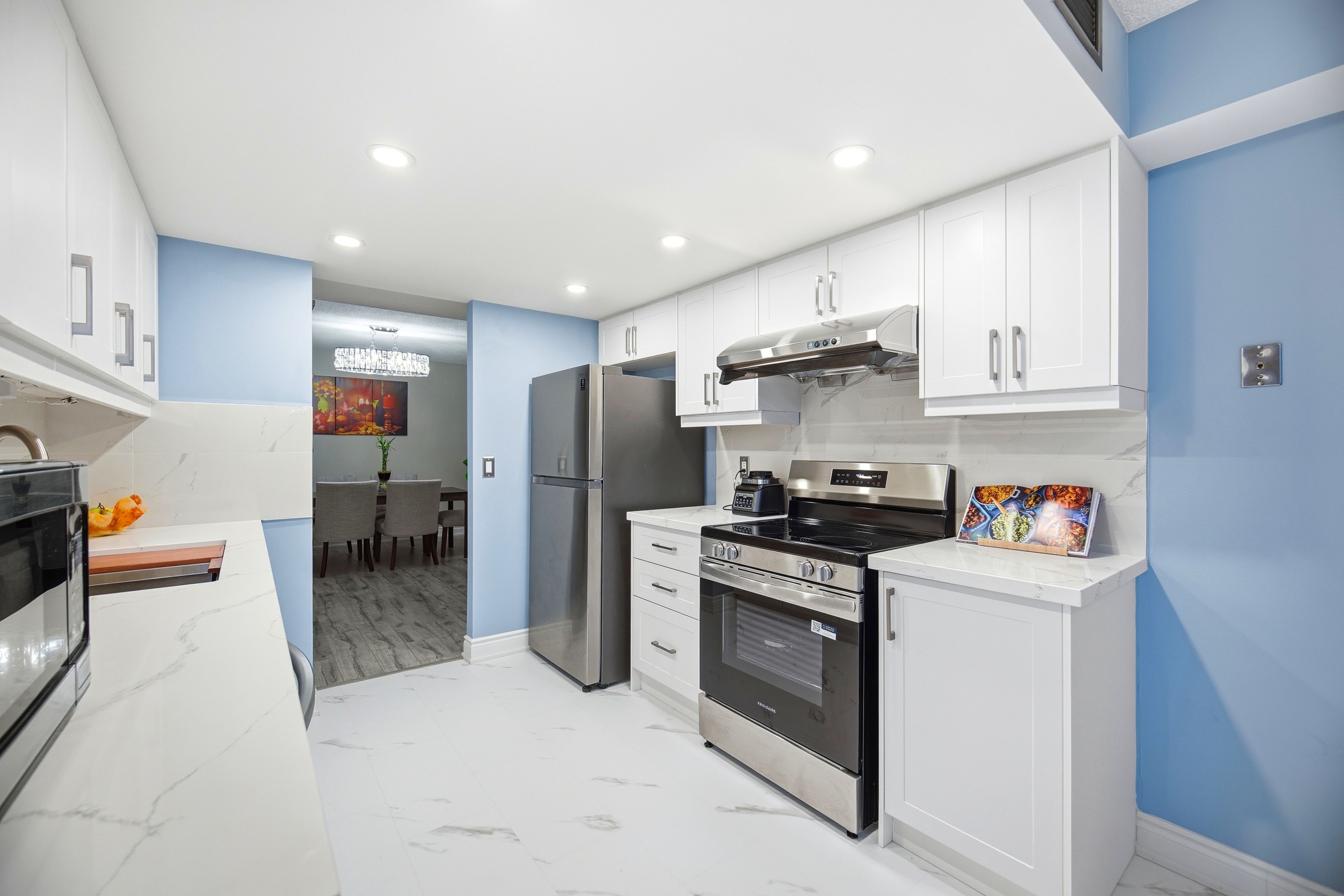 Prestigious Park Mansion - 1,370 sq. ft. Brand-new kitchen in 2025 with new vinyl flooring. Spacious split-bedroom layout with stunning panoramic views from floor-to-ceiling windows, expansive living area with walk-out to private balcony, and formal dining room-ideal for entertaining. Primary bedroom features walk-in closet and luxurious 4-piece ensuite with jacuzzi tub with a separate shower and new vinyl flooring. Second bedroom with walk-in closet, bathroom and balcony access. Recently updated throughout with refreshed bathrooms, laminate floors, and fresh paint. Includes 2 parking spots, locker, newer kit appliances, washer & dryer, and all window coverings. Luxury building on a quiet, park-like cul-de-sac offering outstanding amenities: 24-hr. concierge, rooftop pool, gym, tennis & squash courts, party room, guest suites, BBQs, car wash, and more. Maintenance fees include all utilities, cable TV & internet. Prime location-steps to shopping and transit, easy access to Hwy 403, and quick commute to downtown Toronto. Exceptional value-don't miss it!