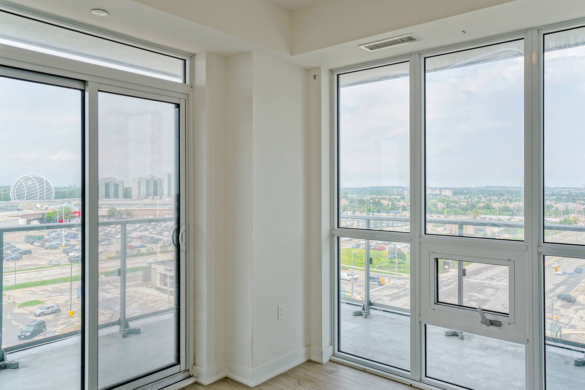 2 Bed 2 Full Bath + Large Den (880 Sqft) With Spectacular Open View Of Erin Mills Mall & Eglinton. Huge "L"-shaped balcony (250+ sq ft). Less Than Six-Year-Old Unit, Layout With Living/Dining & Kitchen, Includes One Parking & One Locker, Laminate Flooring Throughout, Steps To Erin Mills Town Centre, Schools, Walmart, Credit Valley Hospital, Minutes To Public Transit & Major Hwy, And Steps To Cineplex.