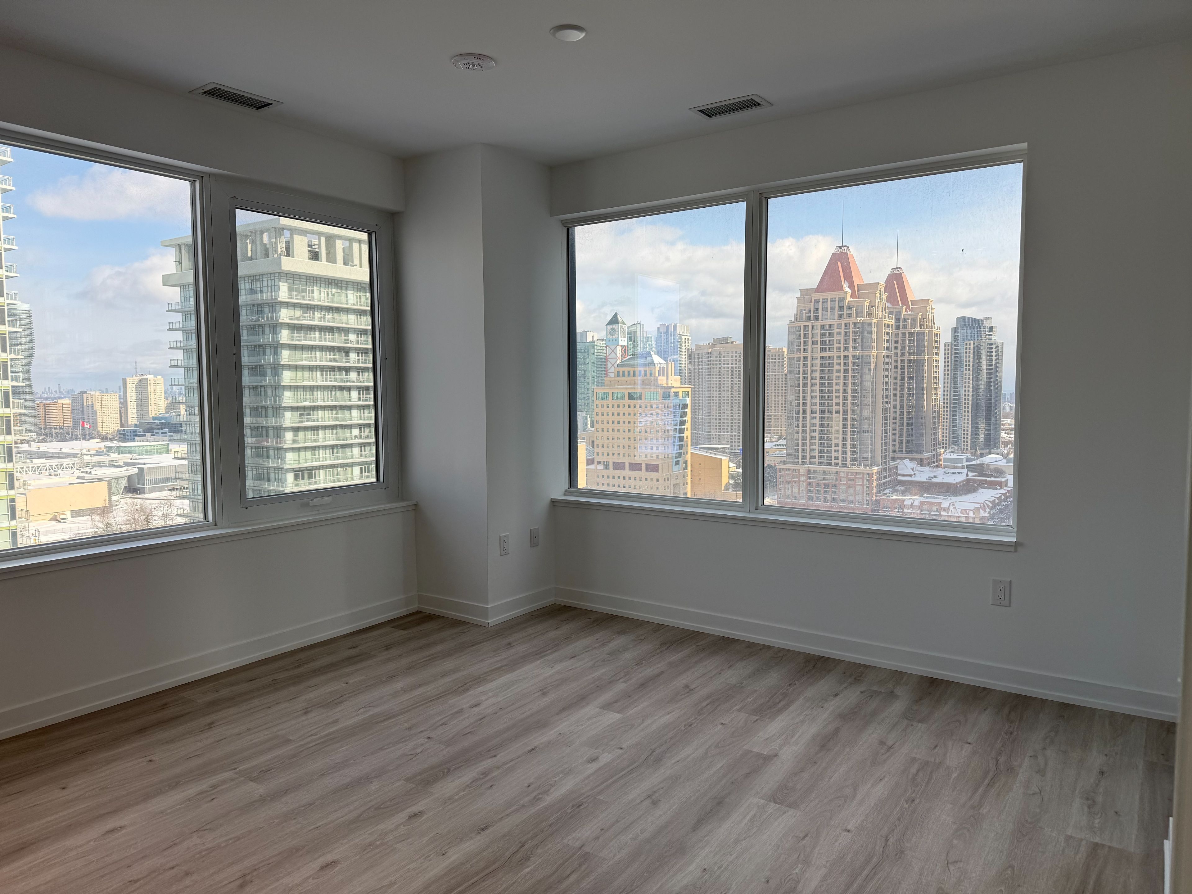 Welcome To This Brand-New, Sun-Filled 2-Bedroom Plus Den, 2-Bathroom Corner Suite At The Prestigious Daniels Development In Mississauga City Centre. Featuring High-End Finishes, An Open-Concept Layout, And A Spacious Den Ideal As A Third Bedroom Or Home Office. Enjoy A Modern Kitchen With Quartz Countertops And Built-In Appliances, Plus A Large Balcony With Unobstructed City Views. Resort-Style Amenities Include Fitness Centre, Basketball Court, Rock Climbing Wall, Sauna, Pet Spa, And 24-Hour Concierge. Prime Location Steps To Square One, Transit, Shopping, Dining, And More.