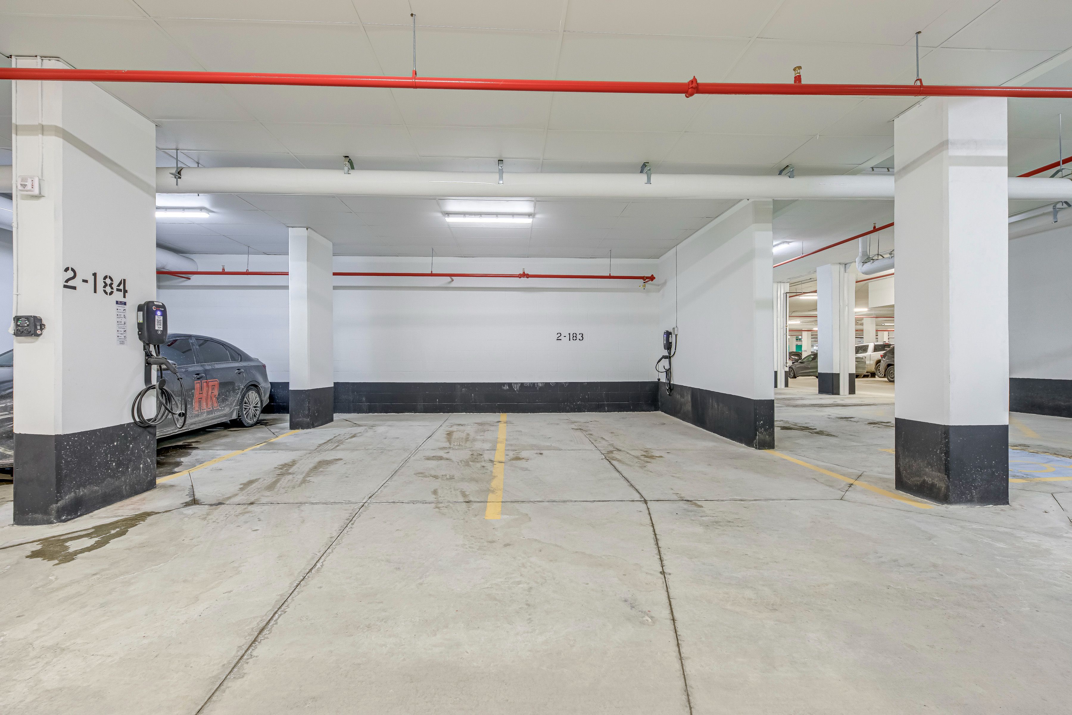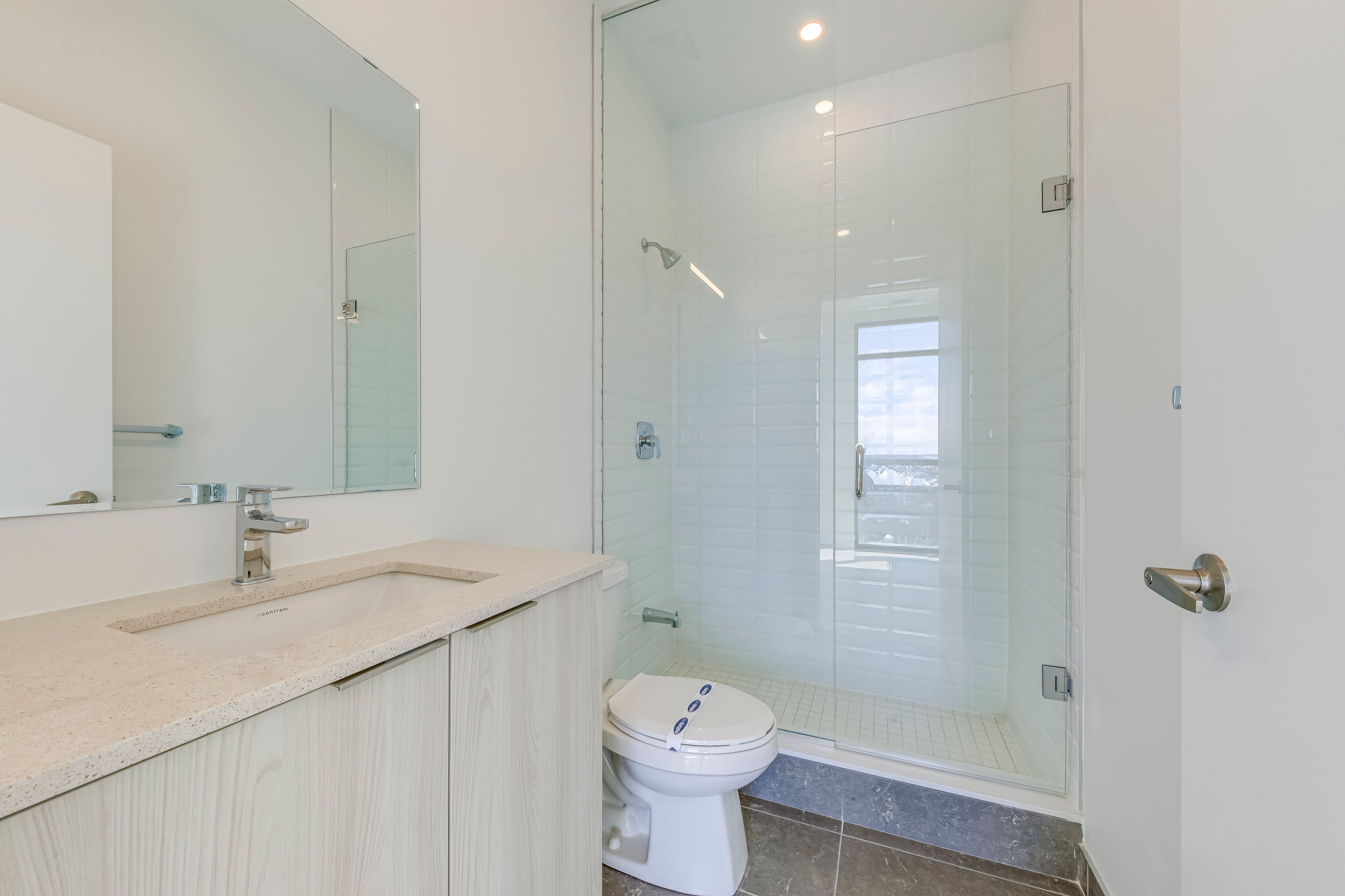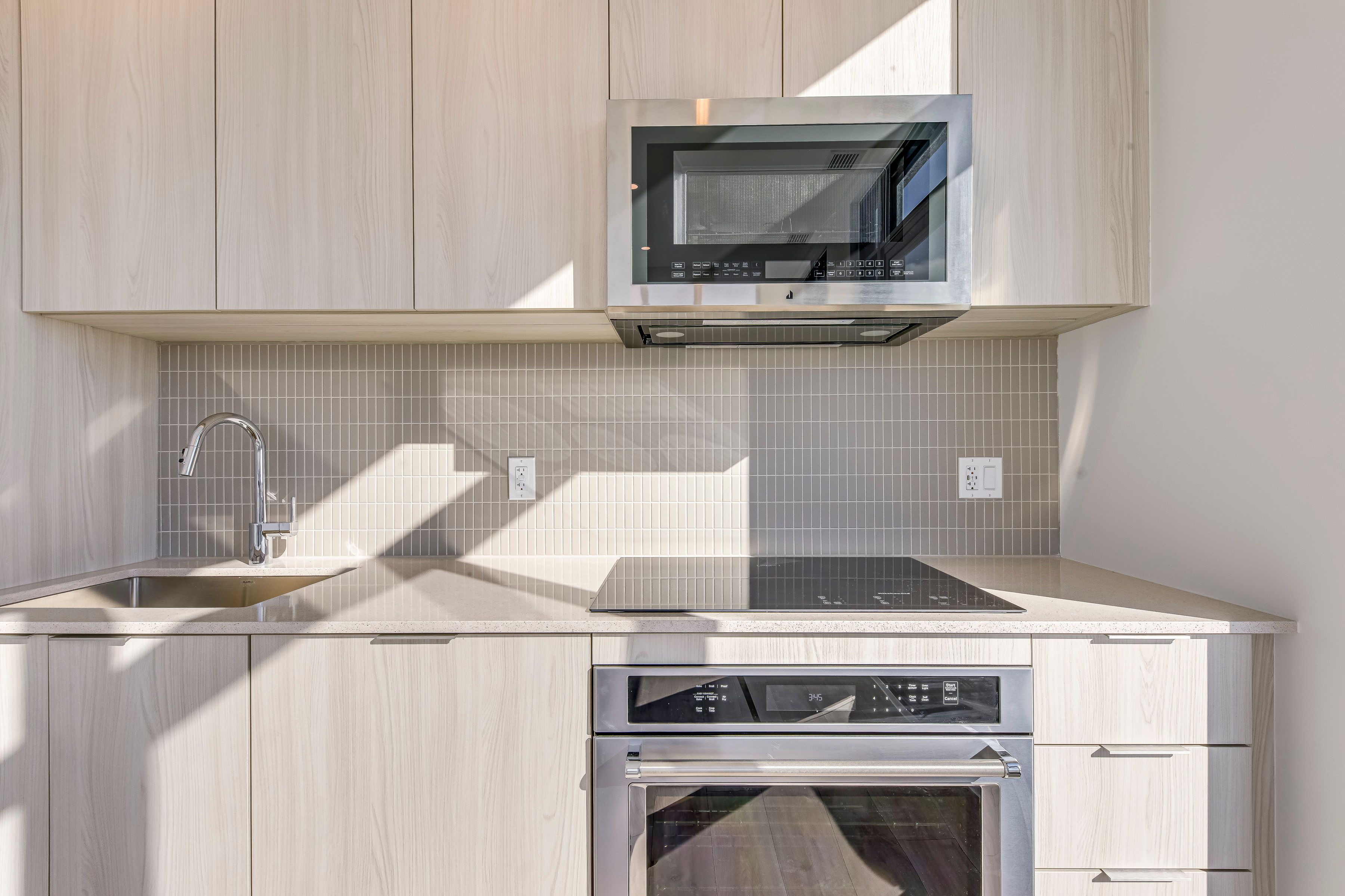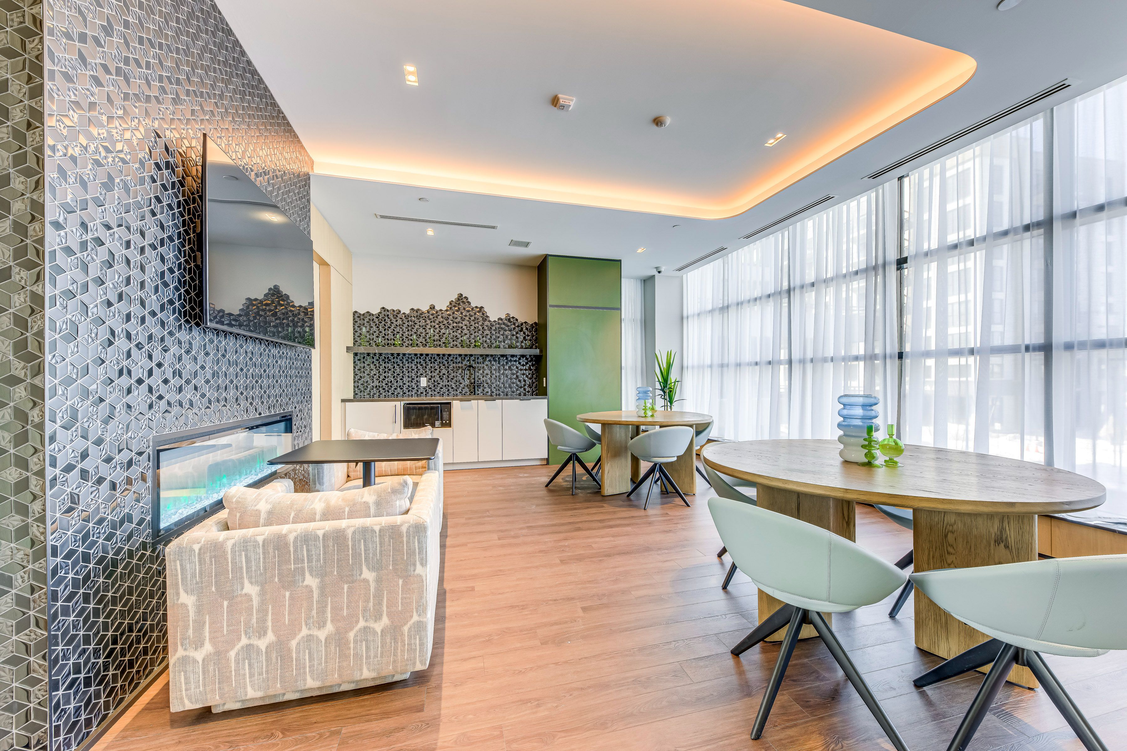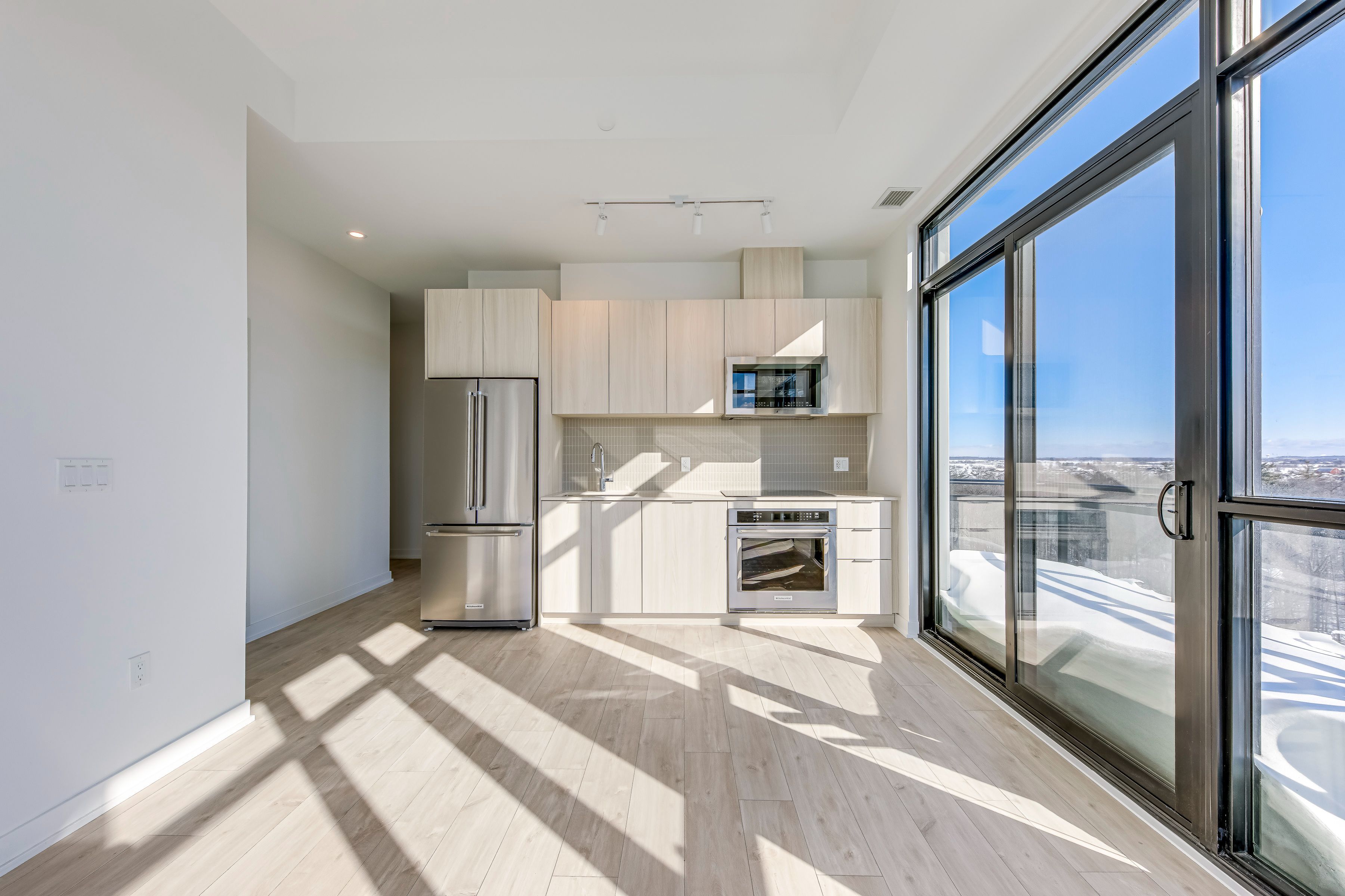 Penthouse luxury at Mile & Creek!!! Gorgeous never-lived-in 2 bedroom plus den penthouse features 10 foot ceilings throughout and breathtaking views from the floor to ceiling south facing windows, offering all day natural light! Enjoy peaceful mornings on the private balcony overlooking the forest! High end upgrades include built-in Kitchen Aid Ceramic Top Stove and Stainless Steel Oven, plus a separate built-in Jenn-Air microwave oven combo, Panelled Diswasher, Blanco X-large sink, pot lights throughout, and French door Stainless Steel Kitchen Aid Refrigerator . Offering 887 square feet of space encompassing 2 full bathrooms, ensuite laundry, and a versatile den/office space.Included in the rent is 1GB high speed internet and state-of-the-art geothermal heating. Unbeatable and Rare convenience with 2 Full underground parking spots included!! One for electric vehicles and the other an extra large handicap zoned spot (available for personal use as tenant). Amazing amenities include Fully Equipped Fitness Centre, Pet Spa, Rooftop Outdoor Lounge, Media and Interior Party rooms! EV Parking Included.