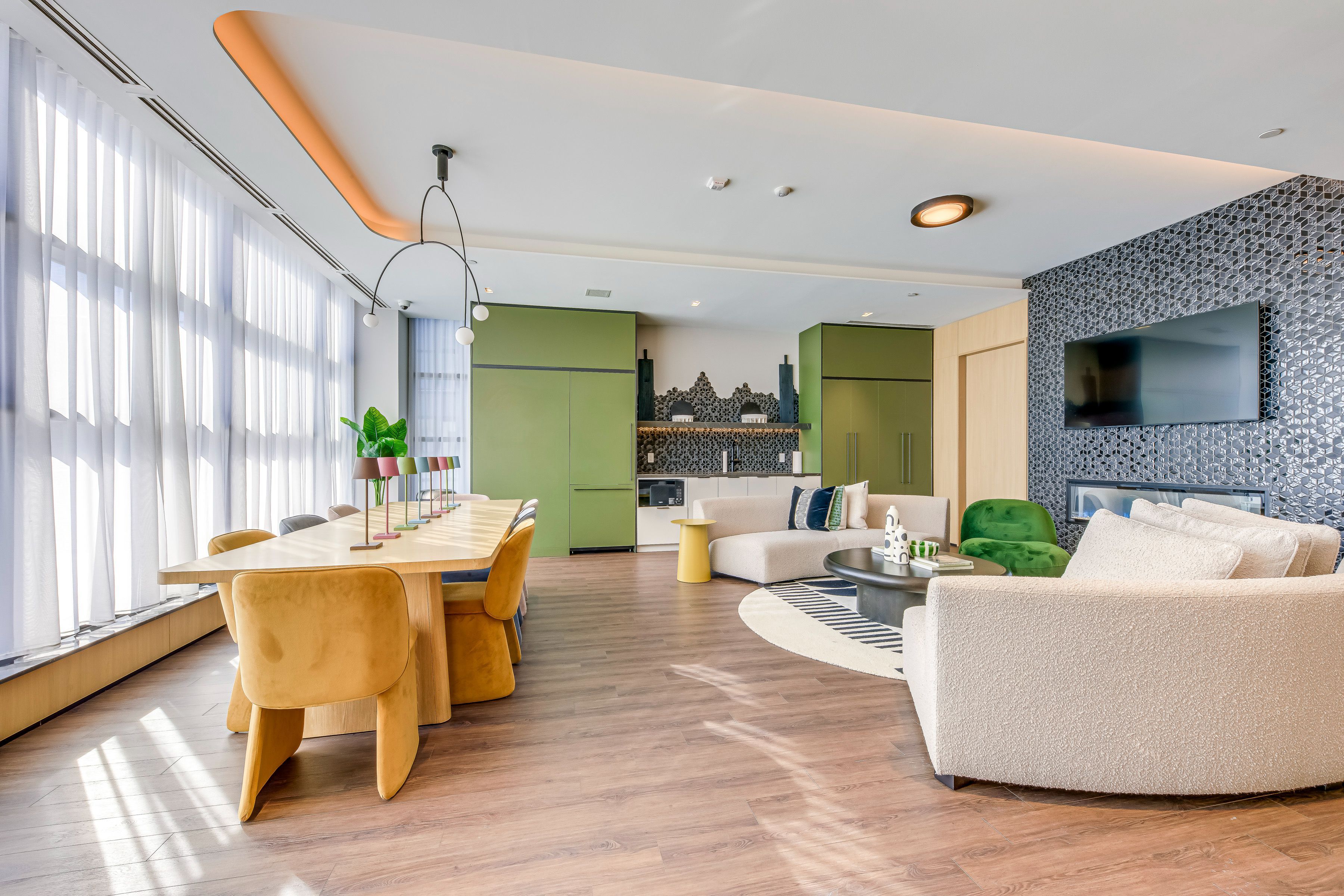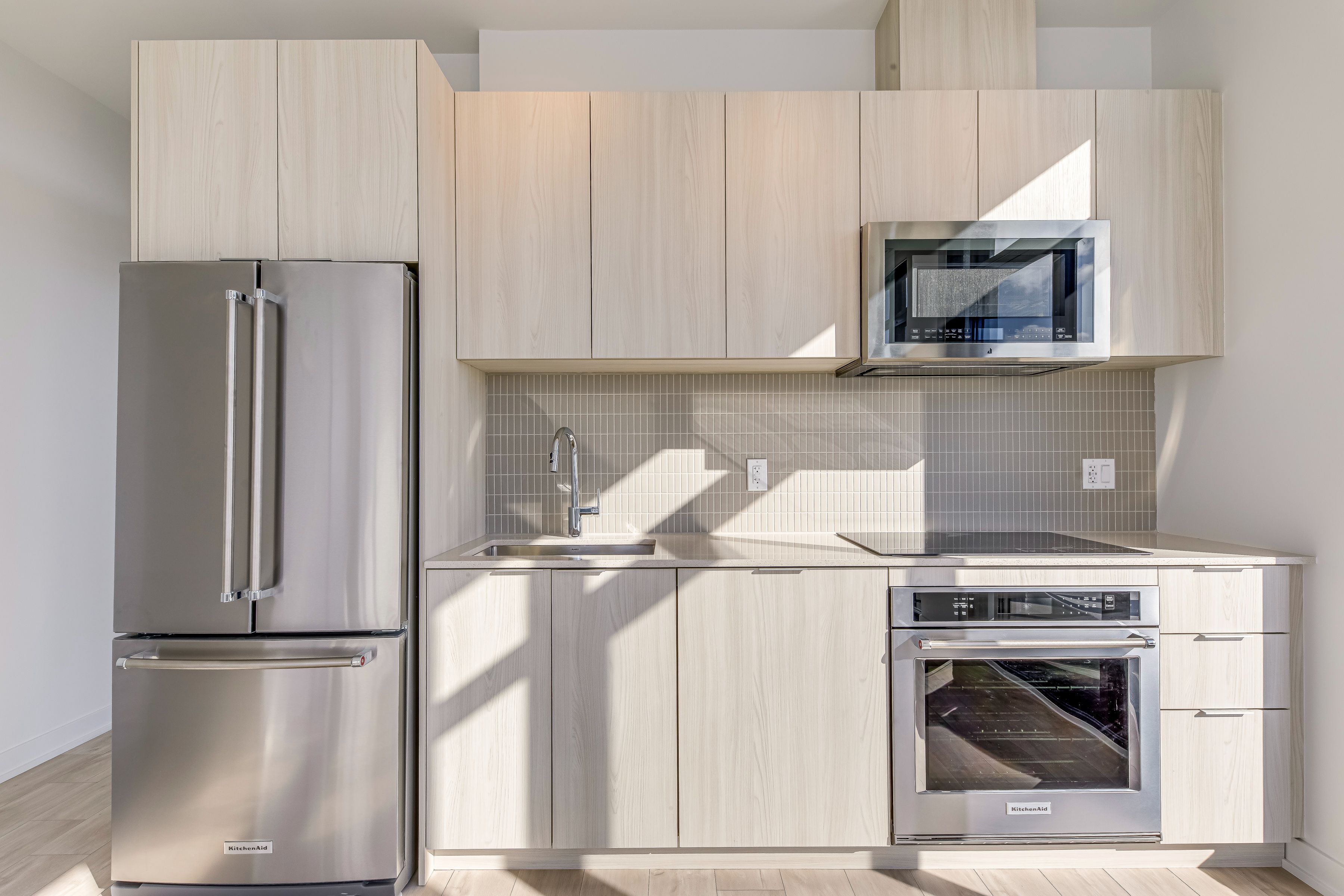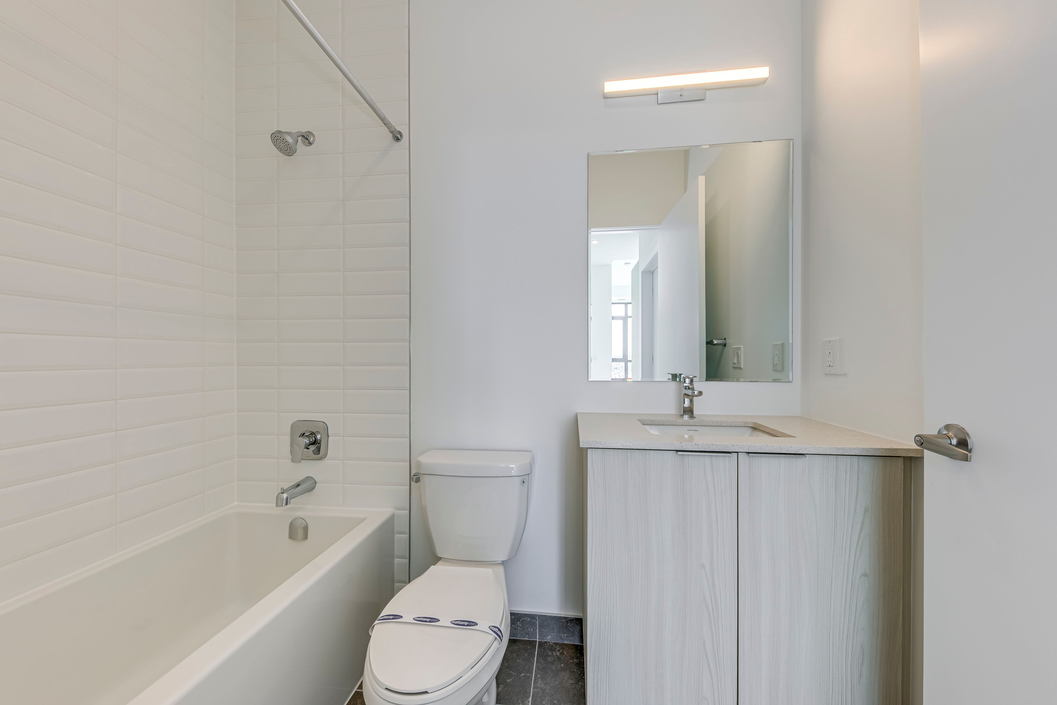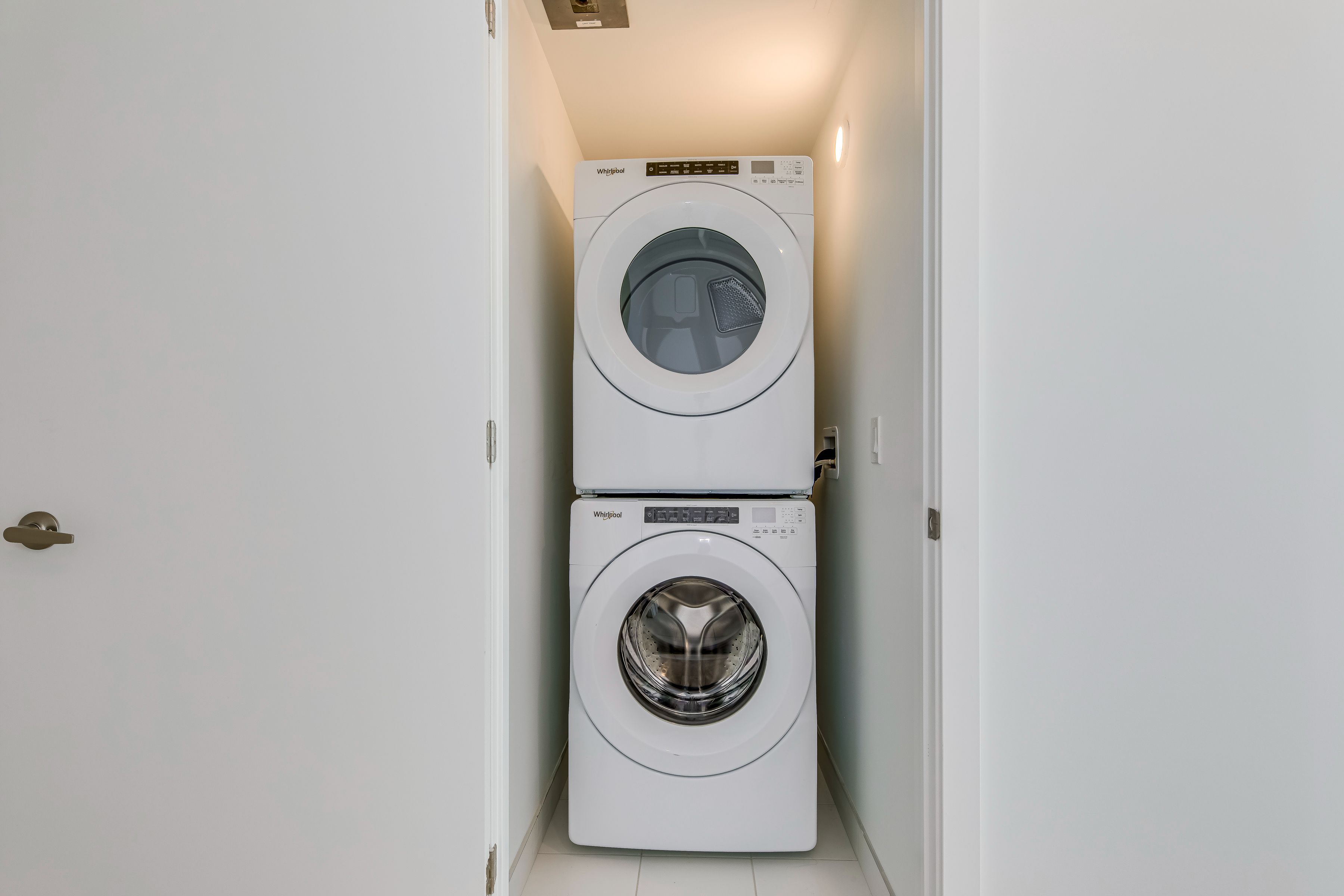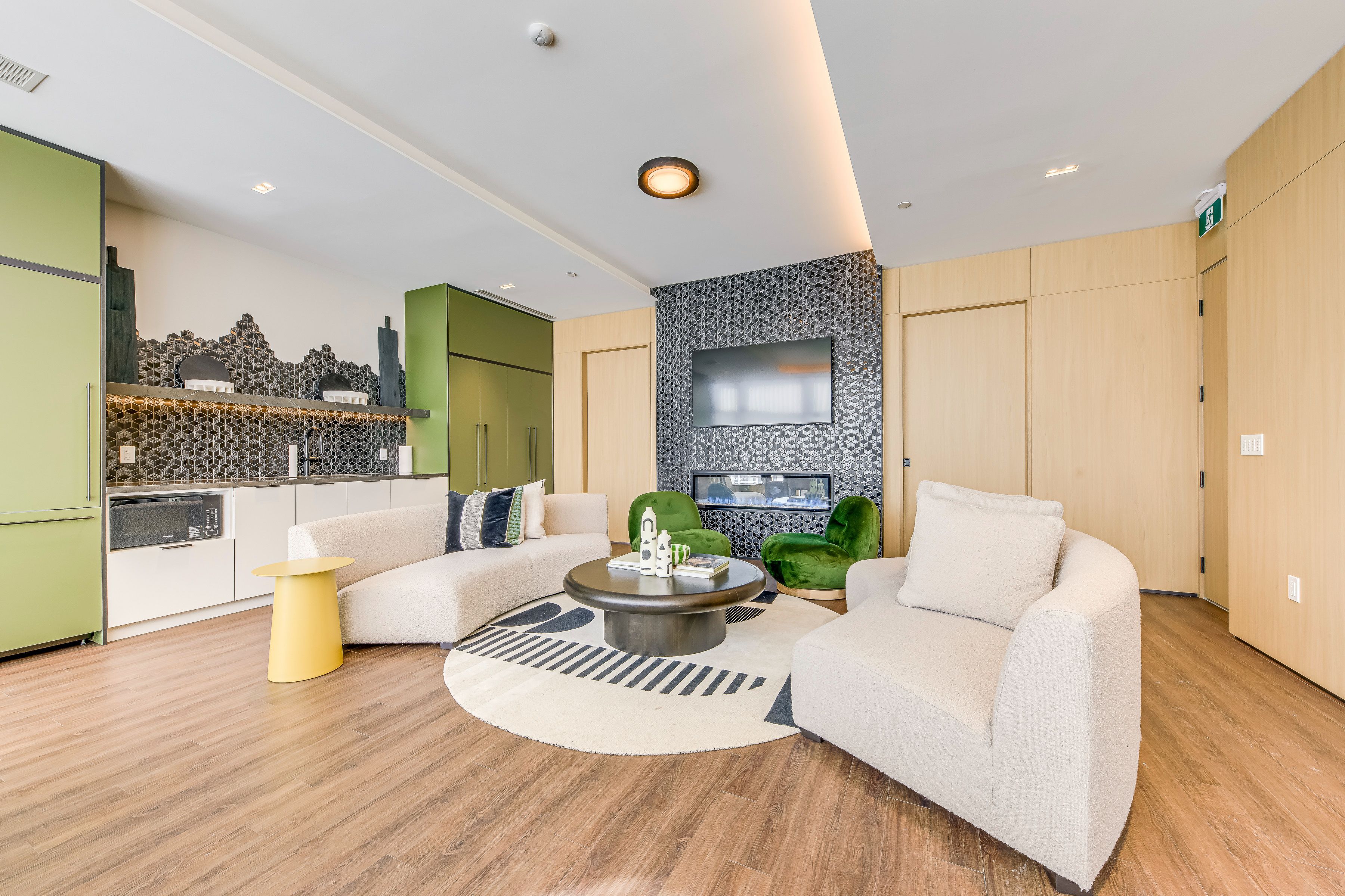 Penthouse luxury at Mile & Creek!!! Gorgeous never-lived-in 2 bedroom plus den penthouse features 10 foot ceilings throughout and breathtaking views from the floor to ceiling south facing windows, offering all day natural light! Enjoy peaceful mornings on the private balcony overlooking the forest! High end upgrades include built-in Kitchen Aid Ceramic Top Stove and Stainless Steel Oven, plus a separate built-in Jenn-Air microwave oven combo, Panelled Diswasher, Blanco X-large sink, pot lights throughout, and French door Stainless Steel Kitchen Aid Refrigerator . Offering 887 square feet of space encompassing 2 full bathrooms, ensuite laundry, and a versatile den/office space.Included in the rent is 1GB high speed internet and state-of-the-art geothermal heating. Unbeatable and Rare convenience with 2 Full underground parking spots included!! One for electric vehicles and the other an extra large handicap zoned spot (available for personal use as tenant). Amazing amenities include Fully Equipped Fitness Centre, Pet Spa, Rooftop Outdoor Lounge, Media and Interior Party rooms! EV Parking Included.