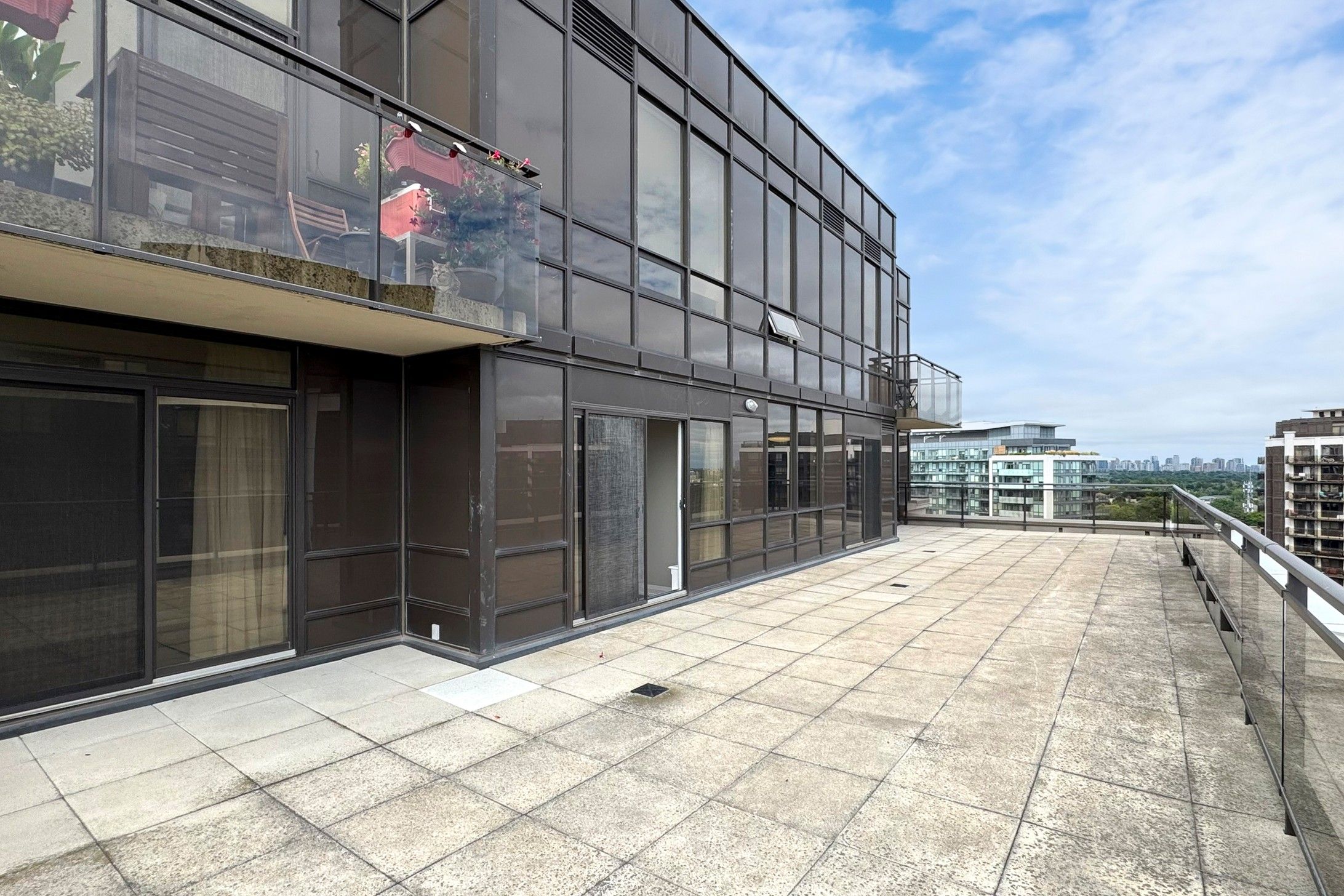 Grand Luxury Unique One-of-a-kind Lower penthouse unit offers 1332 sqft of living space, a spectacularly gigantic outdoor oasis, nearly 1000 sq.ft. terrace and additional 2 balconies with breathtaking four directional views including south city & CN Tower views. 2 spacious bedrooms, 2 Bath, upgraded finishes. Chefs kitchen with storage space. Steps to Sheppard West subway station, TTC, subway, Downsview park, Minutes to Yorkdale shopping center, 401 and the Allen expwy. Open Concept Living! Amazing amenities: Pool, gym, hot tub, sauna, party room, theatre, guest suits, 24 hour concierge, ample underground visitor parking, Golf simulator and Jacuzzi!