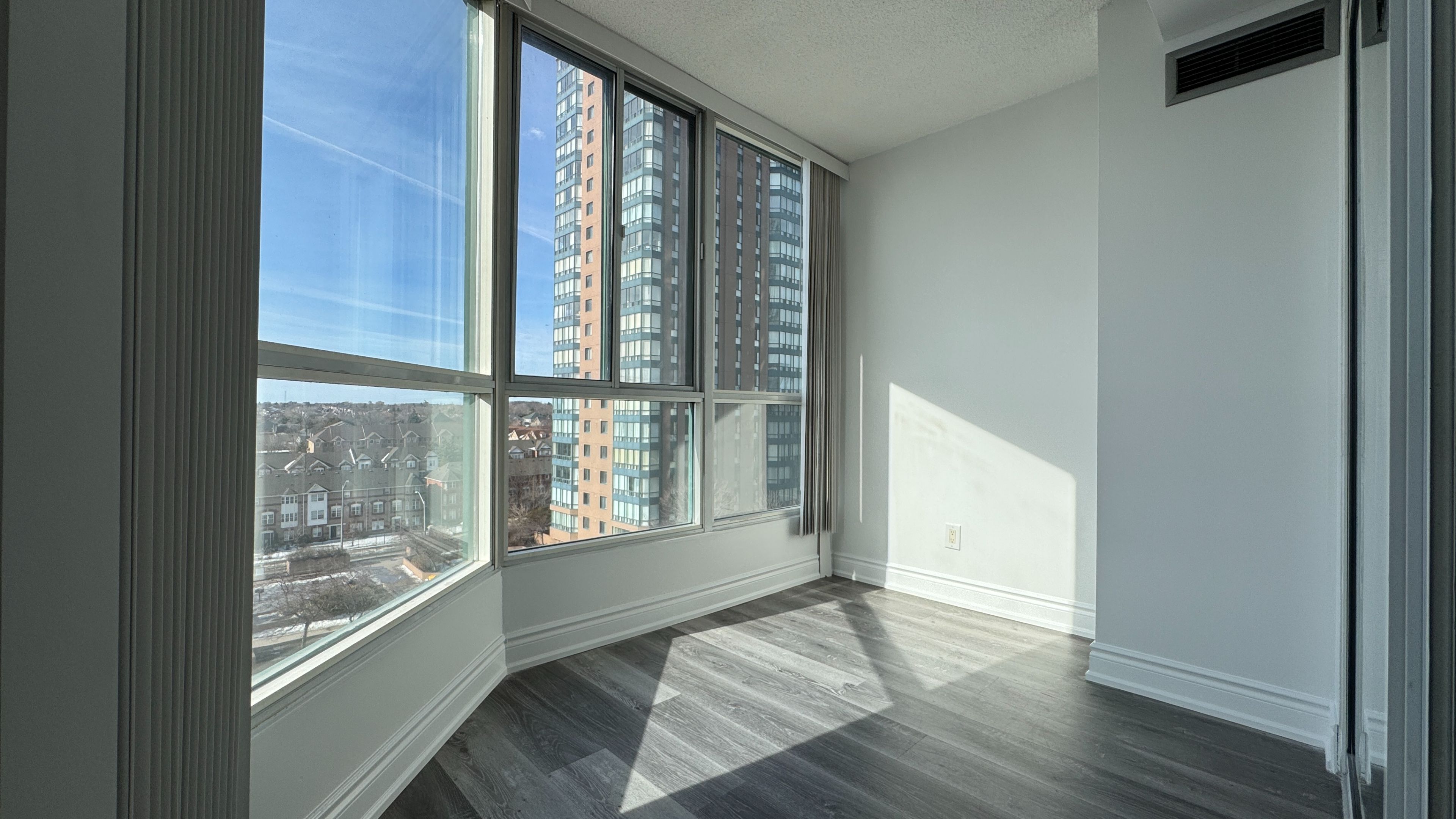 Welcome to Unit 702, a well laid out 2-bedroom plus solarium condo offering approximately 900 sq. ft. of bright, functional living space in Mississauga's highly connected Cooksville community. Featuring a desirable exposure, this unit is filled with natural light throughout the day and offers a comfortable, open layout ideal for homeowners or investors alike.The updated kitchen is equipped with stainless steel appliances, quartz countertops, laminate flooring, and ample cabinetry flowing seamlessly into the expansive living area. The enclosed solarium provides versatile additional space, perfect for a home office, dining area, or reading nook. The generously sized primary bedroom features a large built-in closet and is complemented by a modern 4-piece bathroom with double sinks and quartz counters across the hall. Additional conveniences include in-suite laundry and 1 underground parking. Ideally situated just minutes from Square One Shopping Centre, Cooksville GO Station, major transit routes, and quick access to Highways 403, 401, and QEW, this location offers unbeatable connectivity. Nearby parks, schools, restaurants, and everyday amenities make this a highly walkable and desirable neighbourhood for commuters and families alike. Power of Sale, being sold "where is, as is". The unit is vacant, presenting an excellent opportunity to secure a well located condo with strong long term potential.