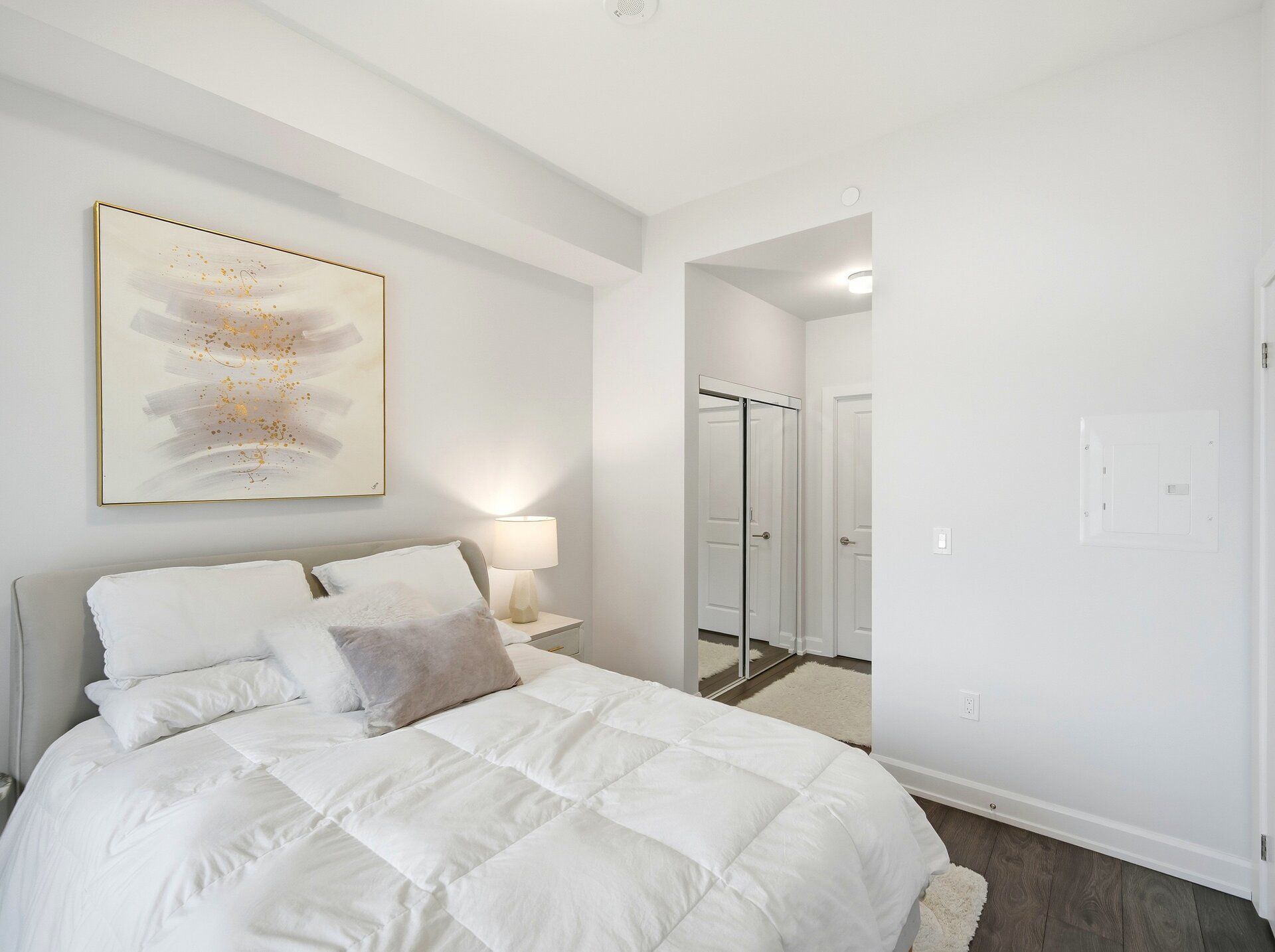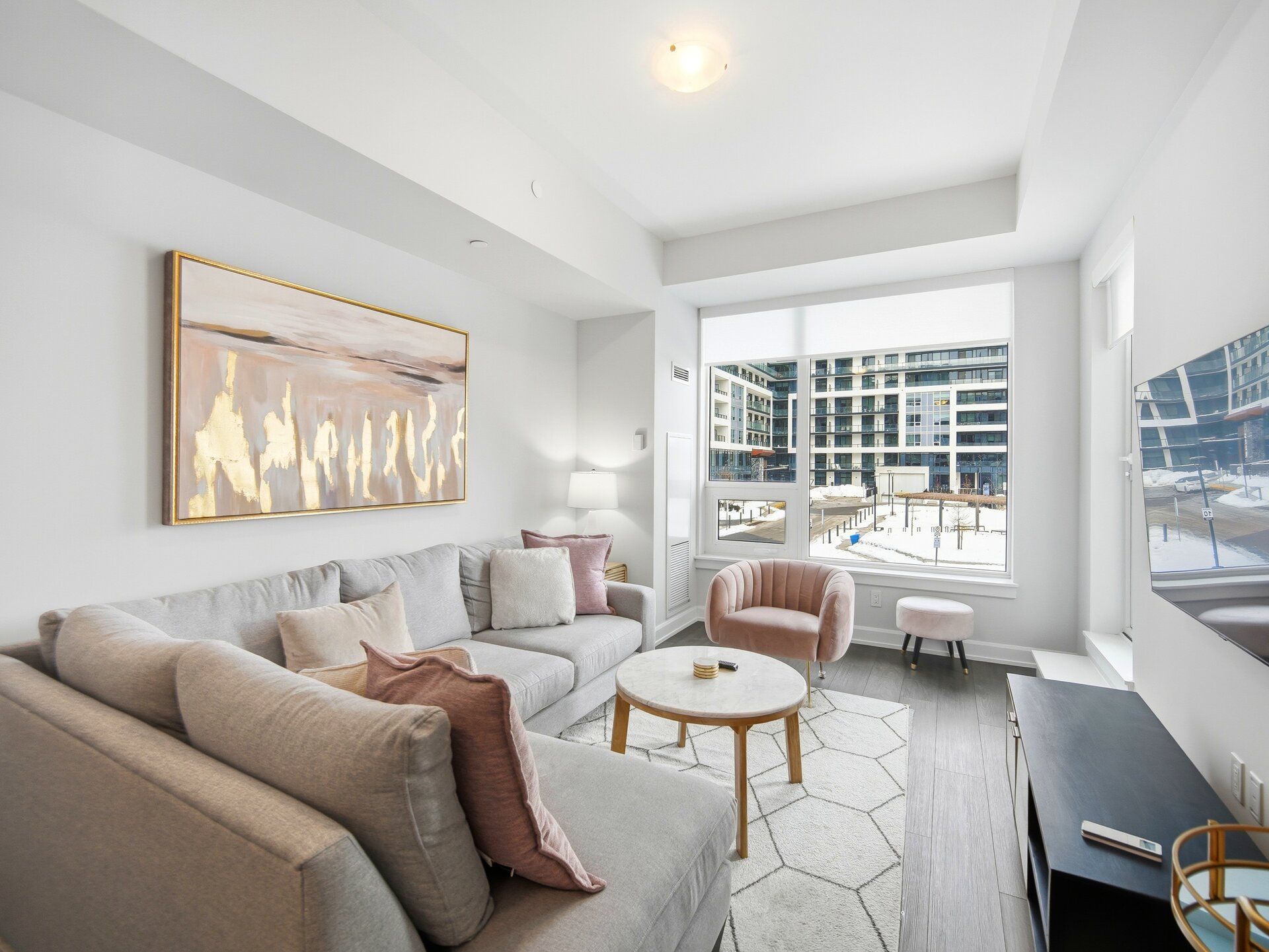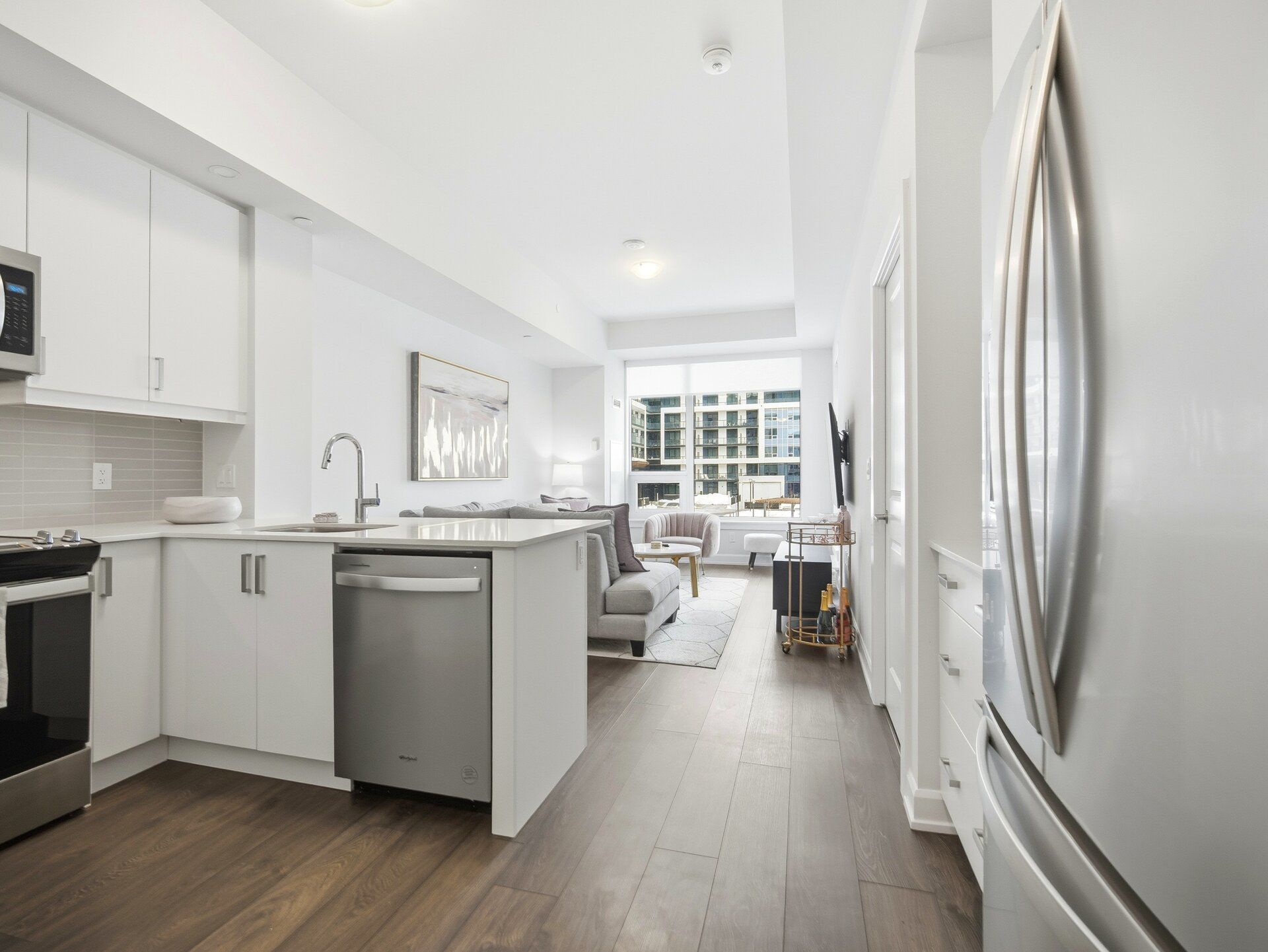 Welcome to a beautifully furnished Upper West Side 1bed + den (With Parking) residence offering close to 700sf of refined living space with a highly versatile layout. This thoughtfully upgraded suite goes beyond builder finishes, featuring a coffee station, full pantry storage, and a rare dual-access bathroom conveniently connected to both the bedroom and main living area. The open-concept design is enhanced by 10-foot ceilings, abundant natural light, and crisp modern finishes throughout. The contemporary kitchen is equipped with quartz countertops, Whirlpool appliances, and streamlined cabinetry. The spacious den offers excellent flexibility as a second bedroom, home office, or extended living space. Step outside to an oversized balcony terrace-ideal for entertaining or relaxing outdoors. Offered fully furnished with stylish, modern furnishings for a turnkey living experience; unit may also be leased unfurnished upon request. Includes one parking space. Ideally located in a prime Oakville neighbourhood just steps to shopping, dining, LCBO, and everyday conveniences, with quick access to major highways, the hospital, Sheridan College, parks, and green spaces.