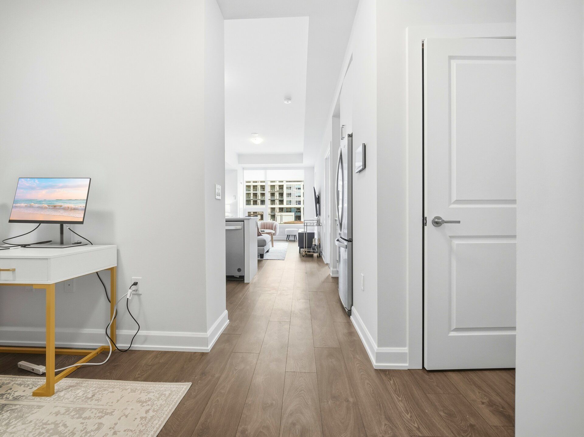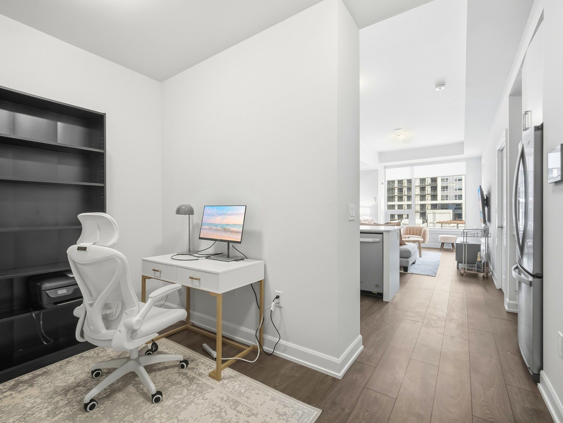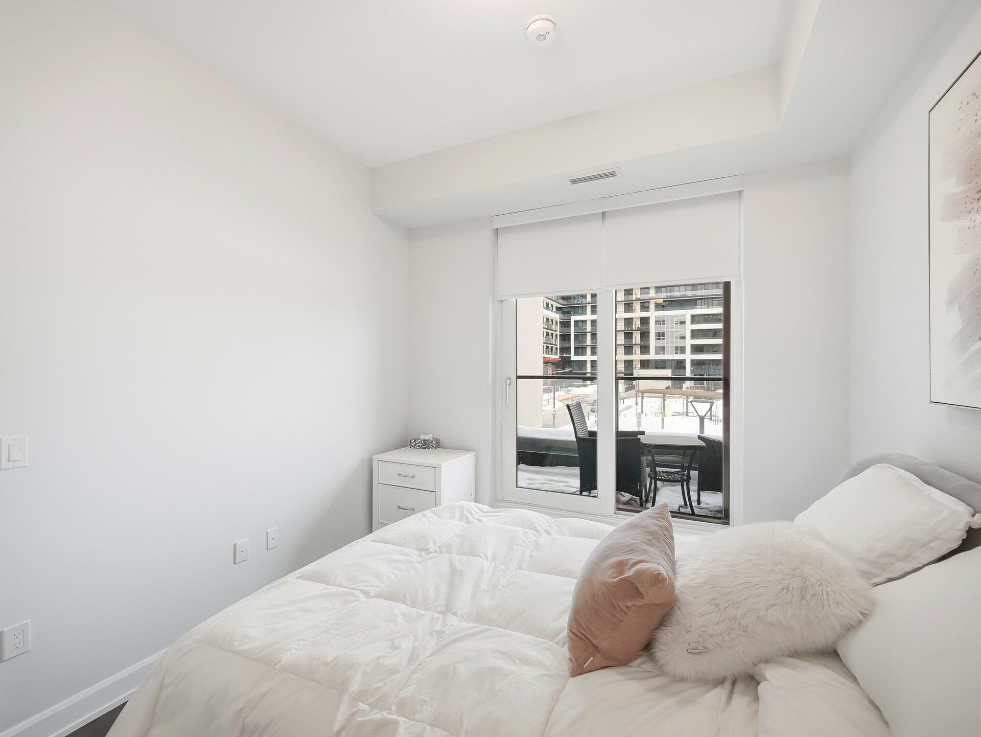 Welcome to a beautifully furnished Upper West Side 1bed + den (With Parking) residence offering close to 700sf of refined living space with a highly versatile layout. This thoughtfully upgraded suite goes beyond builder finishes, featuring a coffee station, full pantry storage, and a rare dual-access bathroom conveniently connected to both the bedroom and main living area. The open-concept design is enhanced by 10-foot ceilings, abundant natural light, and crisp modern finishes throughout. The contemporary kitchen is equipped with quartz countertops, Whirlpool appliances, and streamlined cabinetry. The spacious den offers excellent flexibility as a second bedroom, home office, or extended living space. Step outside to an oversized balcony terrace-ideal for entertaining or relaxing outdoors. Offered fully furnished with stylish, modern furnishings for a turnkey living experience; unit may also be leased unfurnished upon request. Includes one parking space. Ideally located in a prime Oakville neighbourhood just steps to shopping, dining, LCBO, and everyday conveniences, with quick access to major highways, the hospital, Sheridan College, parks, and green spaces.