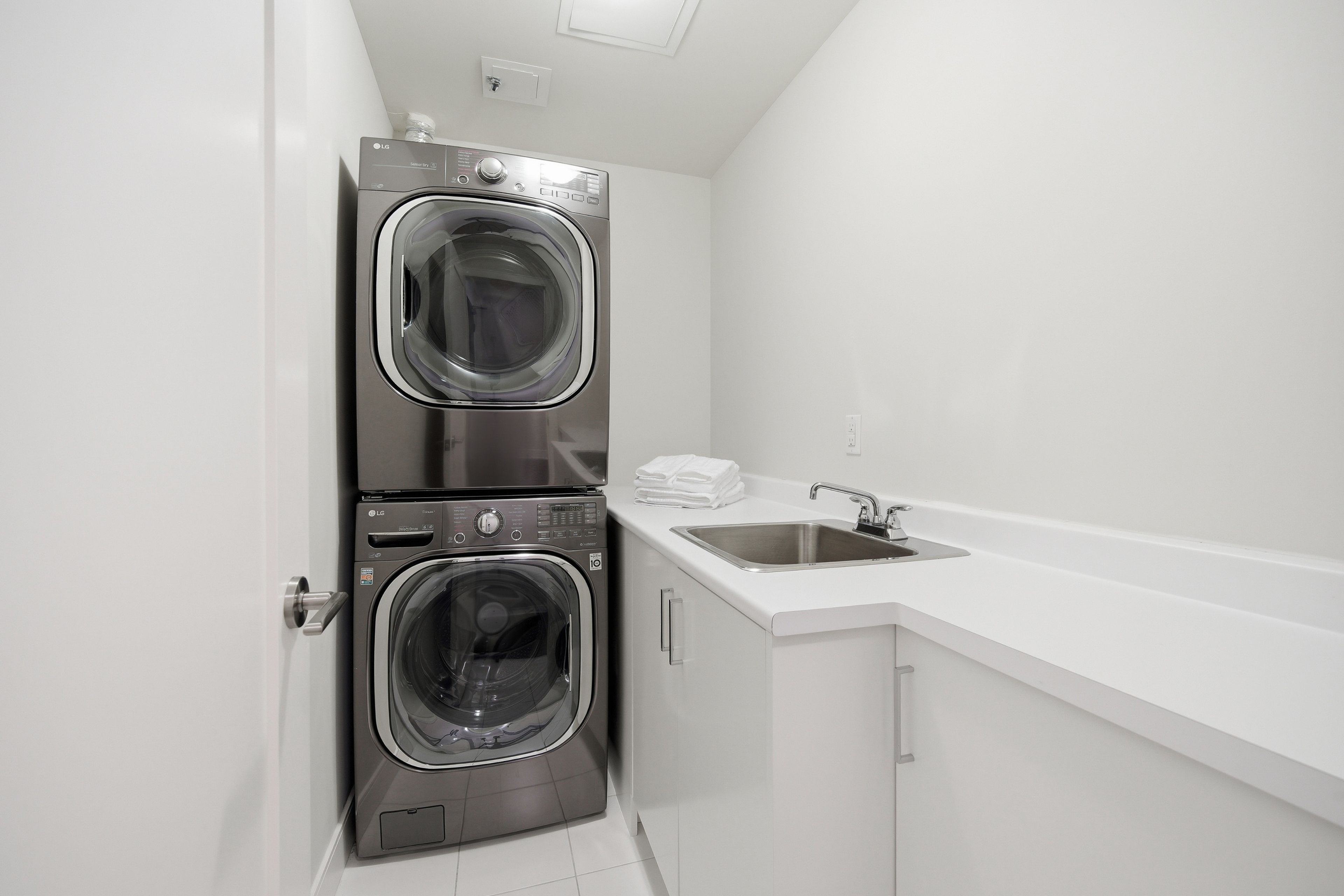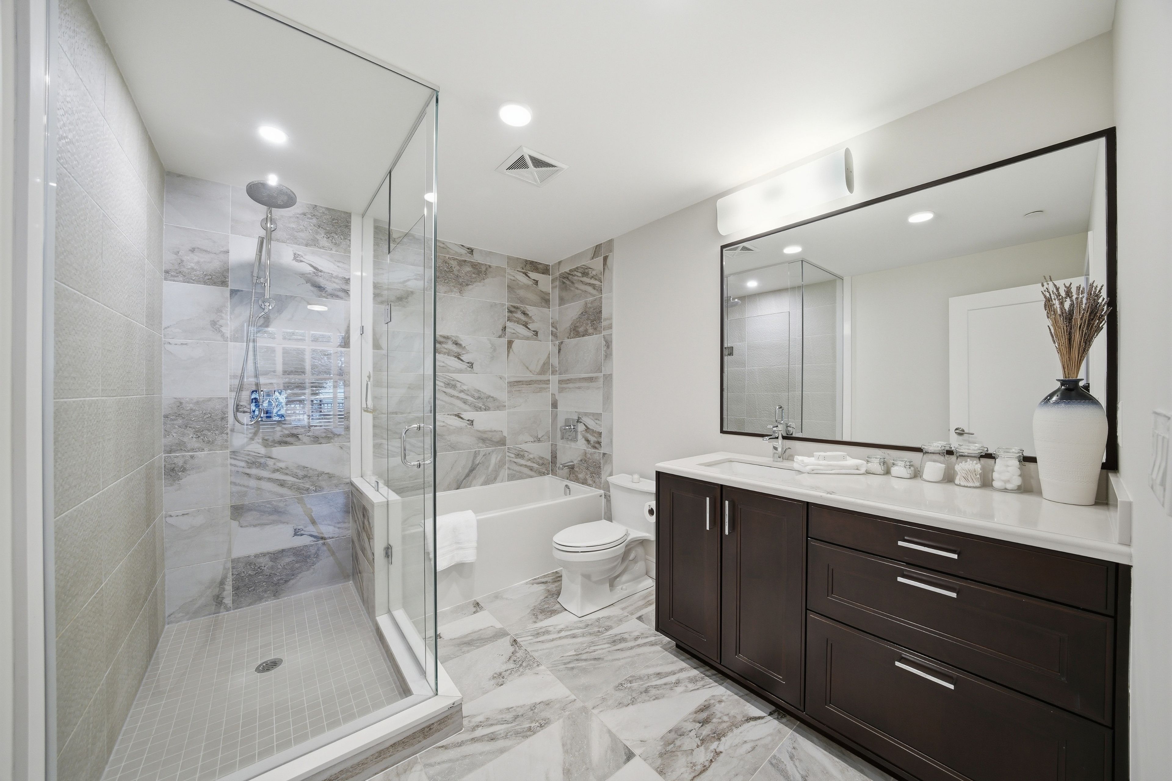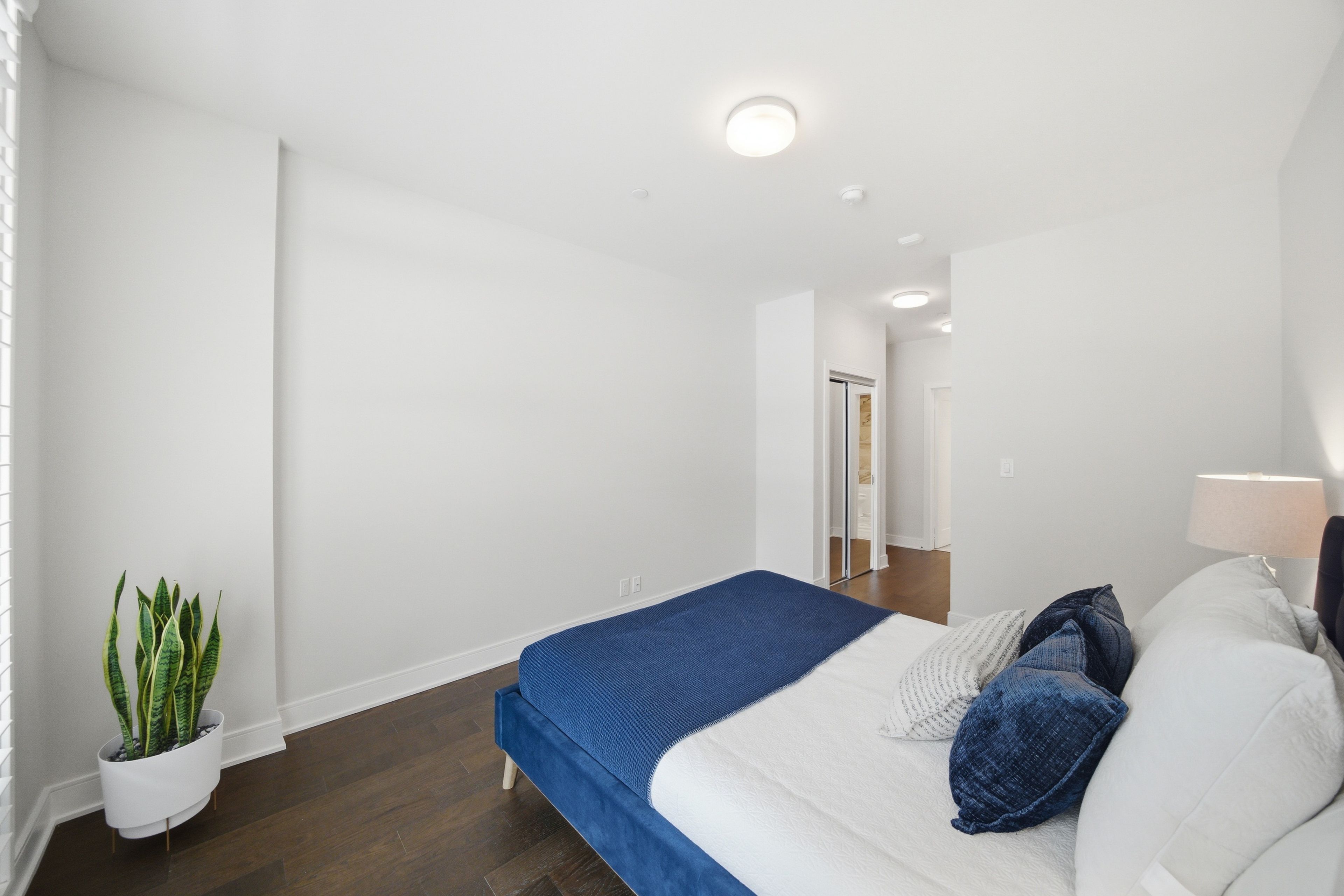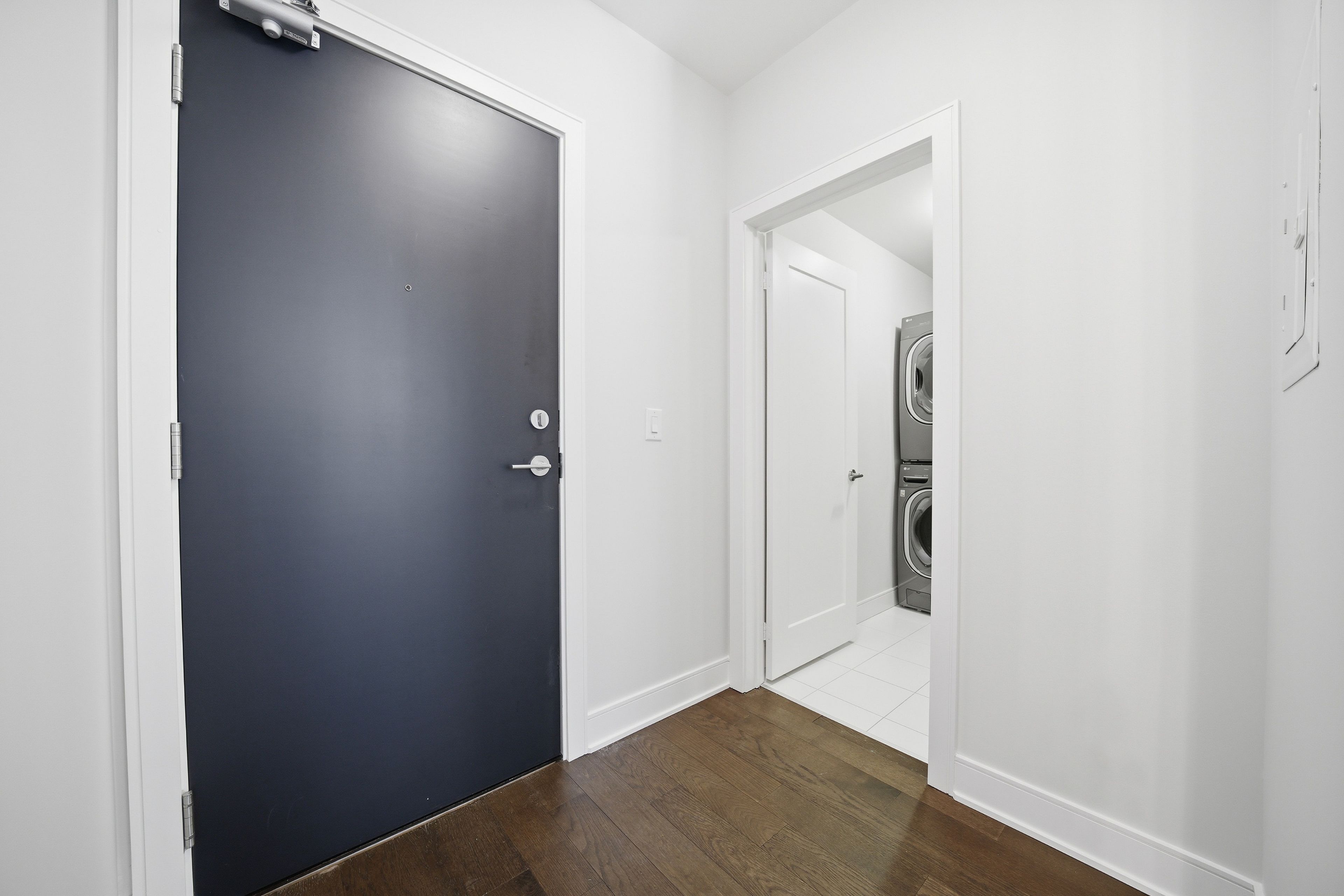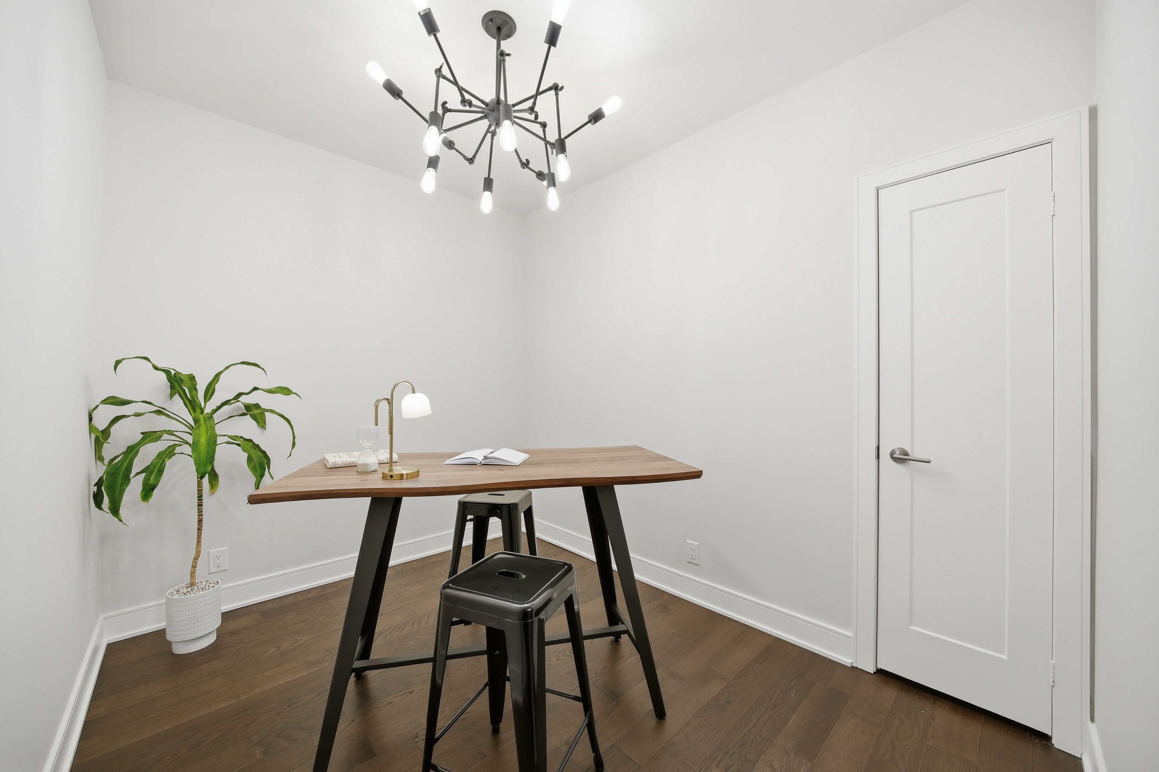 Most condos get built to rent or flip. This one was built to live in. Suite 117 at The Craftsman is a rare, end-user designed residence where quality and intention are evident throughout. The layout offers exceptional flow, living more like a bungalow than a condo, with bedrooms thoughtfully separated from the main living area. This allows for a better use of space and quieter, more private bedrooms. Throughout the suite, five-inch engineered hardwood floors replace typical builder finishes, while numerous pot lights and statement light fixtures, all on dimmers, seamlessly integrate with your smart home devices. The fully customized kitchen represents a significant investment and is the true heart of this home. Featuring marble-inspired counters, elegant two-tone cabinetry, and thoughtful storage solutions like Lazy Susans, deep pot drawers, and cabinet drawers for those hard-to-reach areas, every inch of this space was designed for functionality. Premium appliances include the JennAir-branded induction cooktop, smart oven, paneled dishwasher, 72-inch-high counter-depth fridge, and a Marvel built-in wine fridge, creating a space that is refined, practical, and perfect for entertaining. The primary retreat occupies its own exclusive wing with multiple closets, including a large walk-in, and a spa-inspired ensuite complete with a glass shower stall, soaker tub, large custom vanity, and hidden pull-out drawers with built-in under-counter outlets for seamless organization. A proper second bedroom with a walk-in closet and a spacious den finished with closet storage also provides true flexibility for guests or a home office. Additional highlights include California shutters, a large laundry room with a sink and extra cabinet storage, EV-ready parking located just steps from the elevator, and a storage locker directly across the hallway. For buyers who notice the difference, this suite delivers thoughtful upgrades, smarter storage, and a layout that simply feels right.