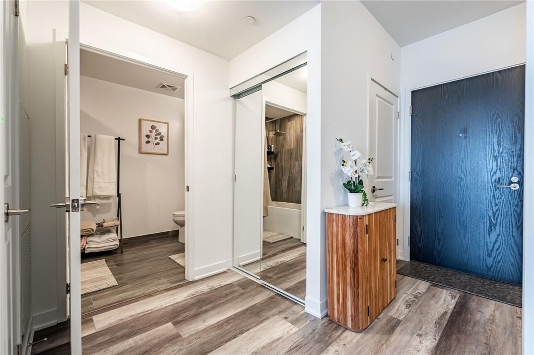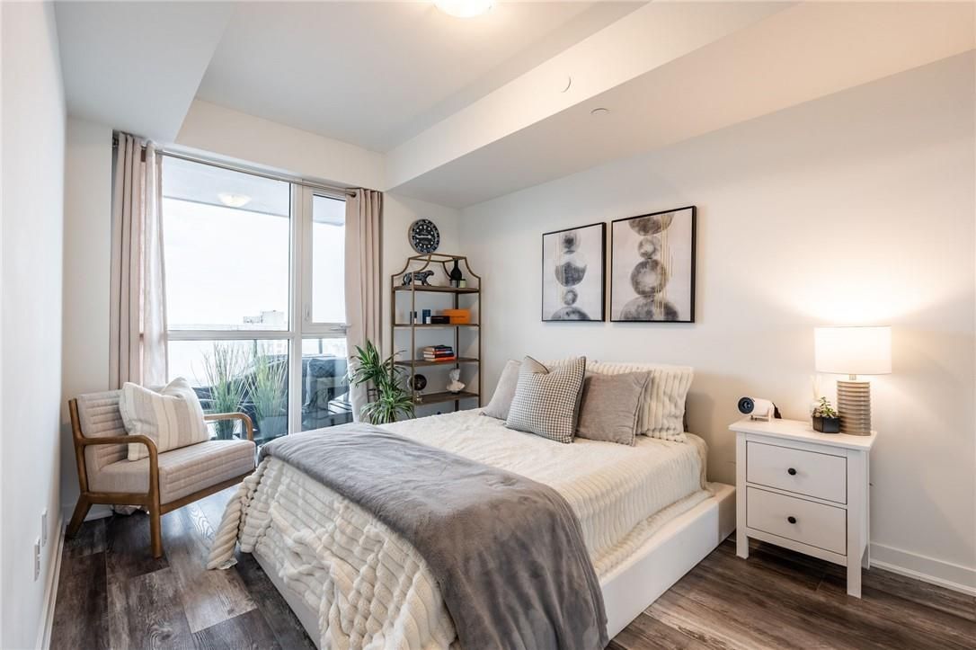 Welcome to Gallery Condos and Lofts in the heart of Downtown Burlington. Perfectly placed newly constructed building that combines modern luxury with downtown conveniences. 1305 is a 1 bed + den and 1 bath, 620 sq. ft. with an 8x20 balcony. This Moma model has lots of upgrades like wide plank flooring, upgraded tile and counters and full size upgraded kitchen stainless appliances. The open concept kitchen & living room is very spacious and leads to floor to ceiling sliding door to balcony. The unobstructed views of the lake and downtown are breathtaking. Balcony is also outfitted with gas outlet for BBQ. The bedroom is spacious with double closets and its own large opening window. The 4-piece bath is designed to maximize space and functionality. This unit also comes with underground secure parking and its own locker for storage. The hotel style amenities include 24-hour concierge, pool, gym, games room, party room with full kitchen, yoga studio, dog wash area, roof top BBQ and seating and 2 floor terrace off the pool area. Enjoy the lakefront lifestyle with restaurants, parks and nightlife at your doorstep!
