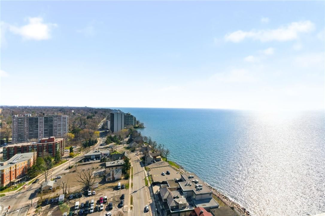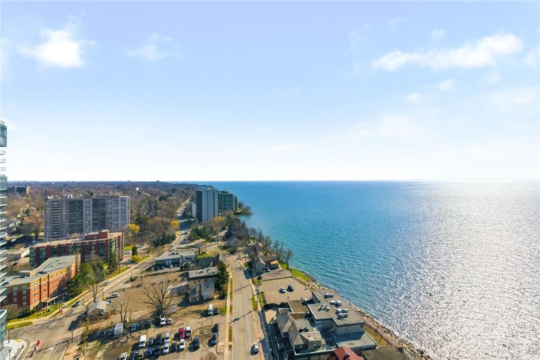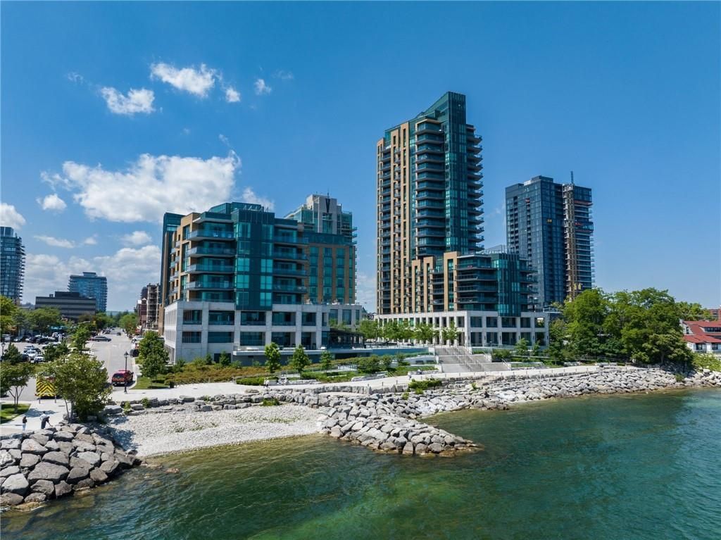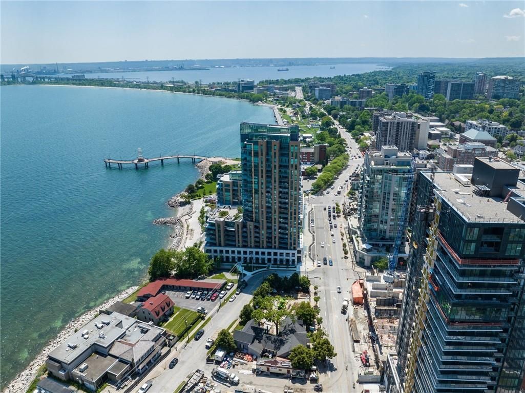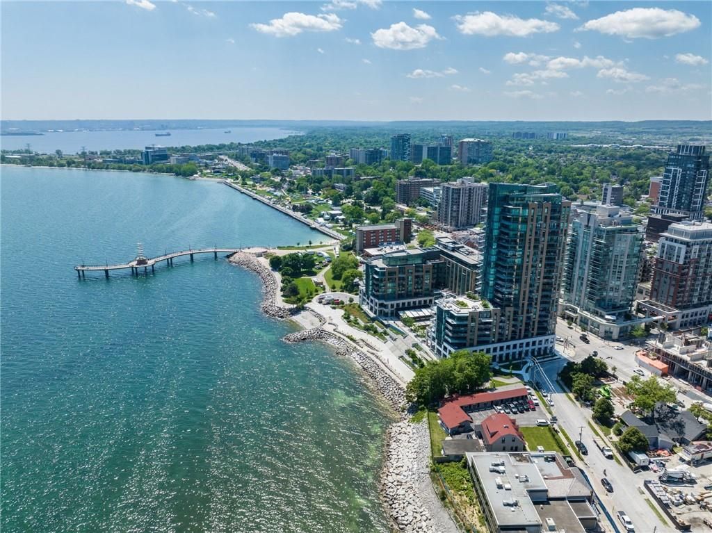 Stunning Luxury Sub-Penthouse Suite at the exclusive Bridgewater Residences offering stylish resort style living on the Burlington waterfront. This elegantly appointed 2 Bed+Den, 2 Bath suite will take your breath away with spectacular Lake views & over $200K in upgrades; every room is sheer luxury. Chic engineered white oak floors, 7' doors, 9' tray ceilings, LED potlights, Designer Ciot Tile, b-i surround sound, auto. blinds & closet lights & more! Private Primary suite w/luxe ensuite, double closets w/custom organizers & w-o to large balcony. The bathrooms are pure opulence with heated marble floors, oversized w-i glass showers, quartz vanities & Kohler fixtures. 2nd Bedroom with Ensuite Privilege to stunning 4 pc bath w/heated floor. Chef's Kitchen w/Thermador panel appliances, gas cooktop w/Grohe pot filler, microwave drawer, custom walnut accent cabinetry to ceiling, s/s kick plates, pantry & quartz island w/waterfall. Living Room features stunning Lake views through floor to ceiling windows, gorgeous quartz feature wall w/b-i media & sleek horizontal fireplace. Ideal South-East exposure & views from every room w/floor to ceiling windows that capture panoramic lake & city views. The flexible floor plan offers Den with beautiful floor to ceiling views of the water; easily convertible to an Office for those working from home. Two large balconies offer stunning panoramic views of the Lake and Toronto skyline & escarpment Sunsets. 2 Parking (1 with Charger), 24 hr concierge, valet visitor parking, rooftop lounge, gym, party room, Pearle Hotel & Indoor Pool access. Easy hwy & transit access. Enjoy an easy Lakefront Lifestyle, steps to everything downtown Burlington has to offer; unique shops, fine restaurants, art gallery, theatre & the award winning waterfront.