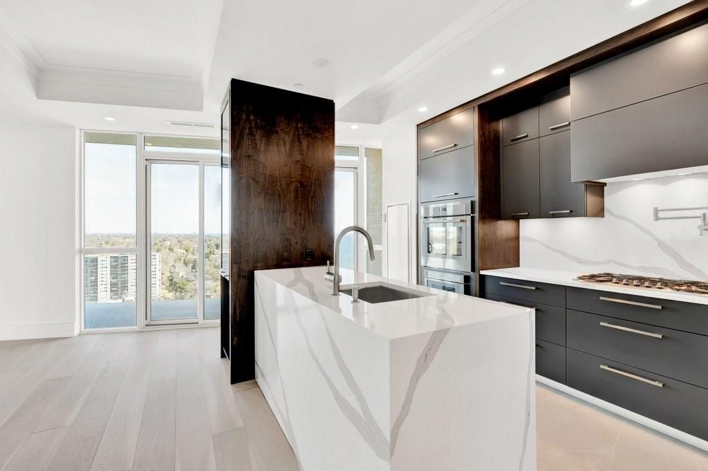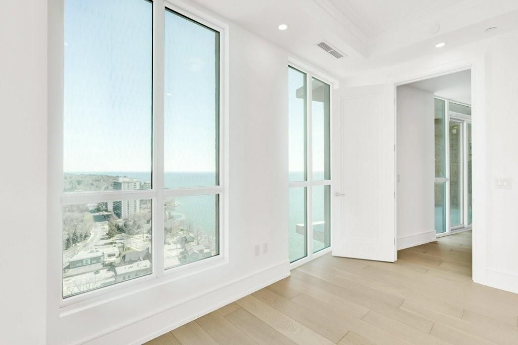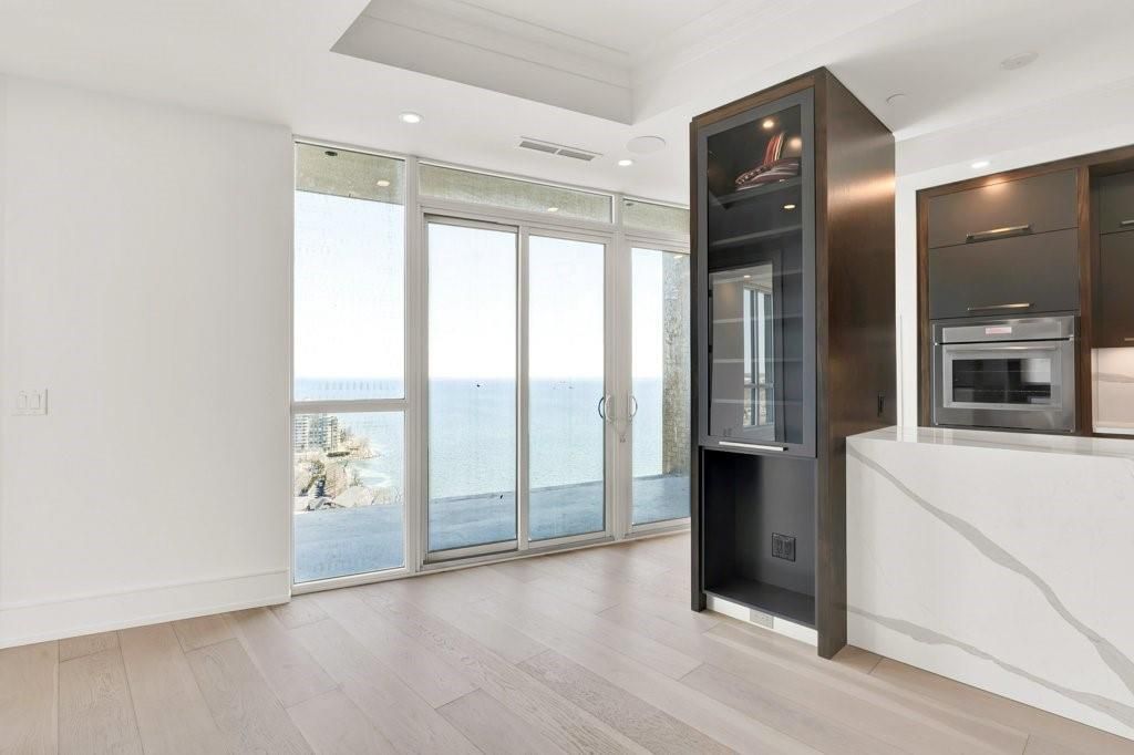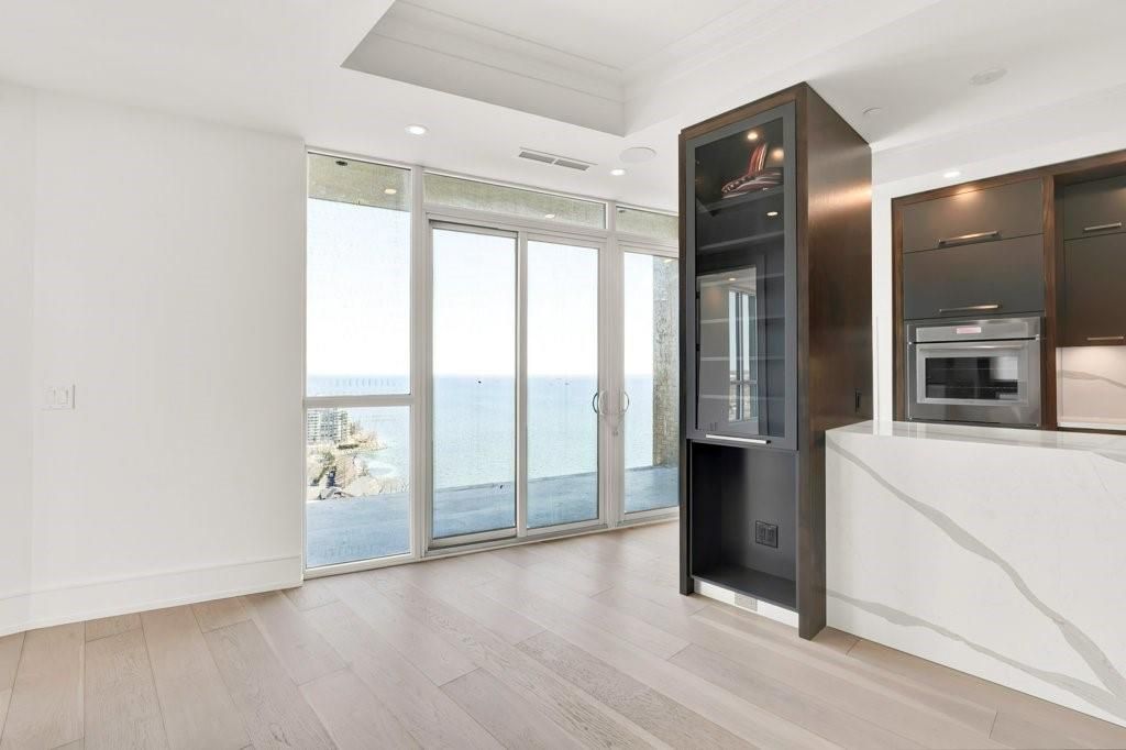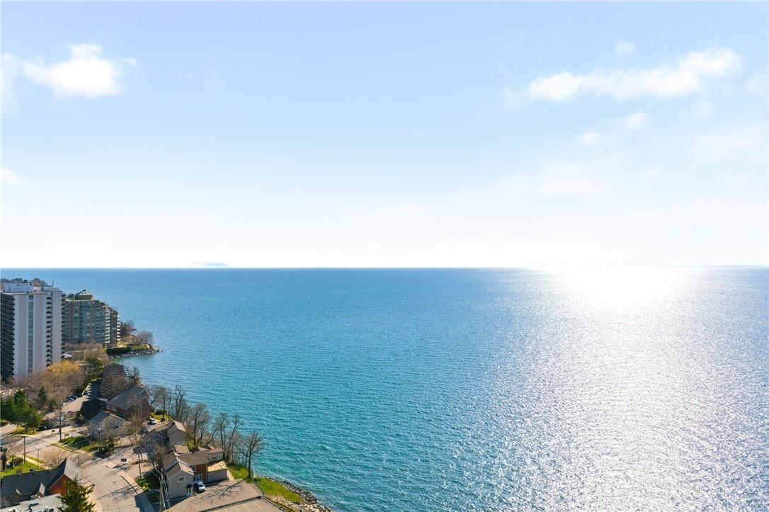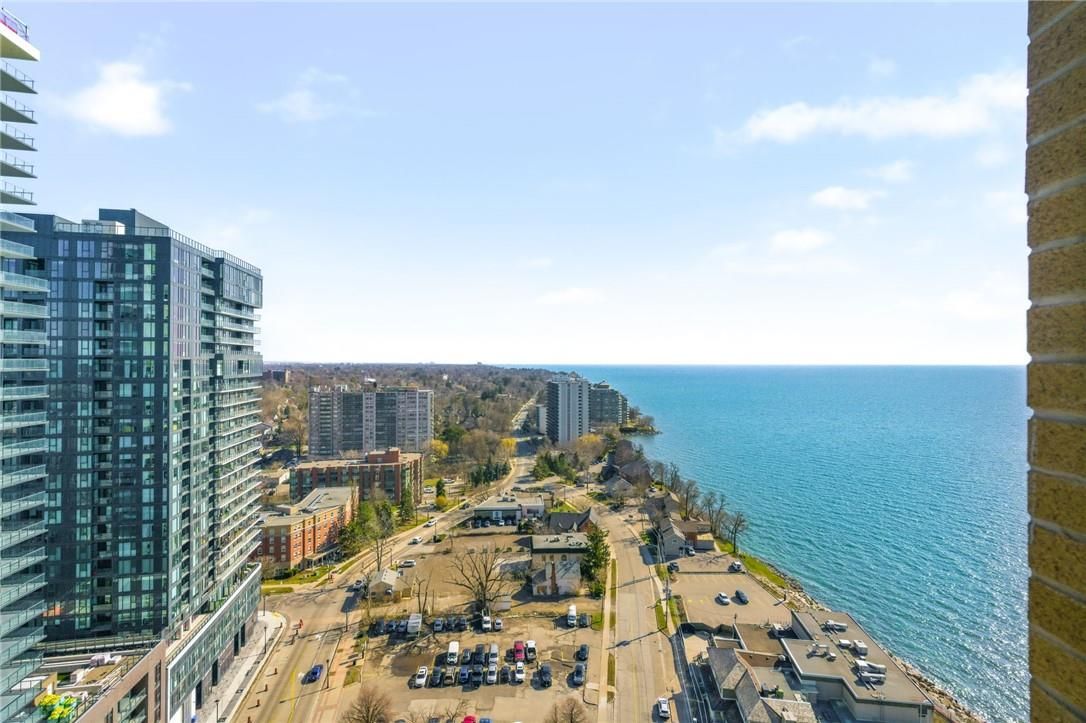 Stunning Luxury Sub-Penthouse Suite at the exclusive Bridgewater Residences offering stylish resort style living on the Burlington waterfront. This elegantly appointed 2 Bed+Den, 2 Bath suite will take your breath away with spectacular Lake views & over $200K in upgrades; every room is sheer luxury. Chic engineered white oak floors, 7' doors, 9' tray ceilings, LED potlights, Designer Ciot Tile, b-i surround sound, auto. blinds & closet lights & more! Private Primary suite w/luxe ensuite, double closets w/custom organizers & w-o to large balcony. The bathrooms are pure opulence with heated marble floors, oversized w-i glass showers, quartz vanities & Kohler fixtures. 2nd Bedroom with Ensuite Privilege to stunning 4 pc bath w/heated floor. Chef's Kitchen w/Thermador panel appliances, gas cooktop w/Grohe pot filler, microwave drawer, custom walnut accent cabinetry to ceiling, s/s kick plates, pantry & quartz island w/waterfall. Living Room features stunning Lake views through floor to ceiling windows, gorgeous quartz feature wall w/b-i media & sleek horizontal fireplace. Ideal South-East exposure & views from every room w/floor to ceiling windows that capture panoramic lake & city views. The flexible floor plan offers Den with beautiful floor to ceiling views of the water; easily convertible to an Office for those working from home. Two large balconies offer stunning panoramic views of the Lake and Toronto skyline & escarpment Sunsets. 2 Parking (1 with Charger), 24 hr concierge, valet visitor parking, rooftop lounge, gym, party room, Pearle Hotel & Indoor Pool access. Easy hwy & transit access. Enjoy an easy Lakefront Lifestyle, steps to everything downtown Burlington has to offer; unique shops, fine restaurants, art gallery, theatre & the award winning waterfront.