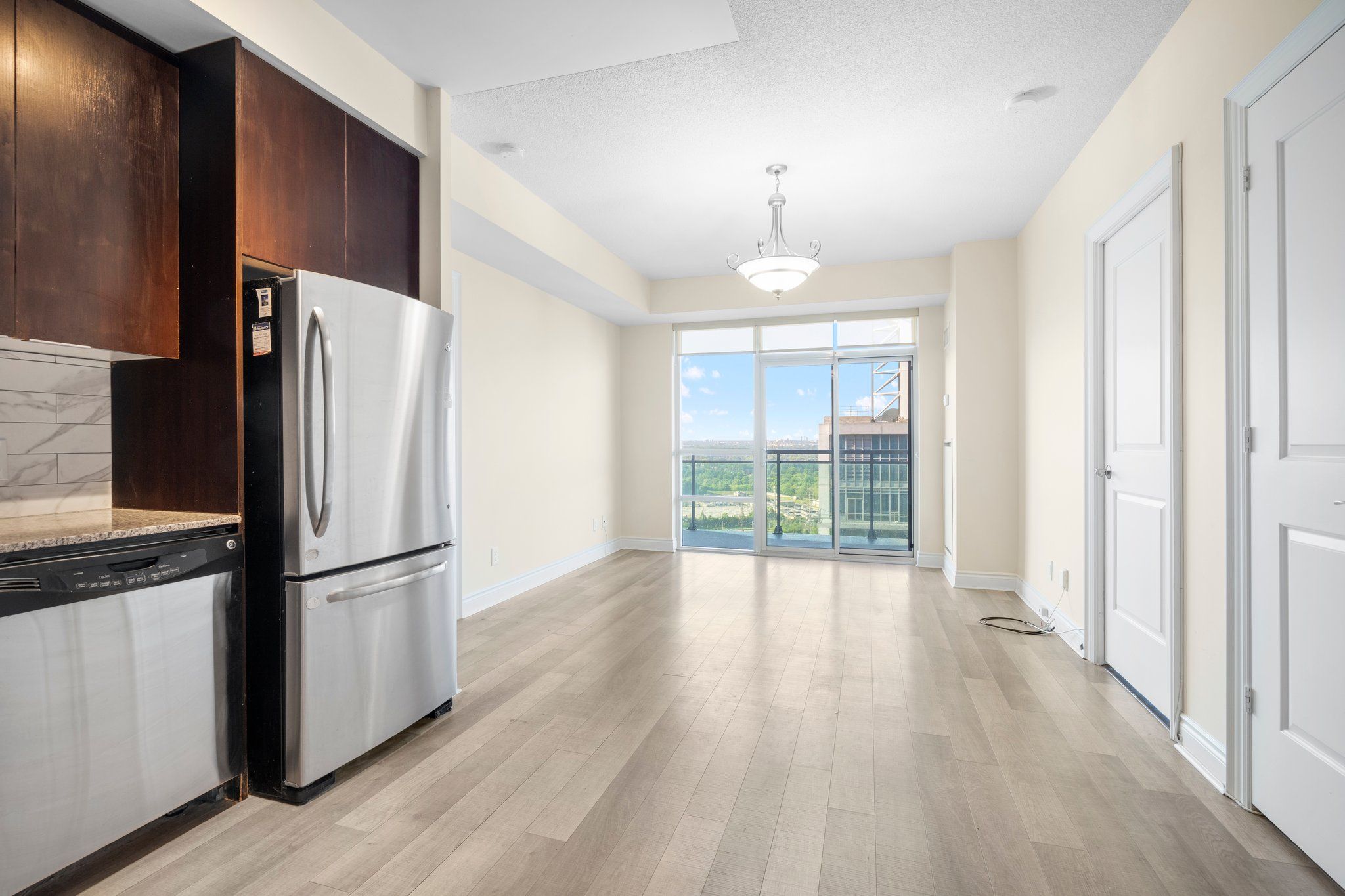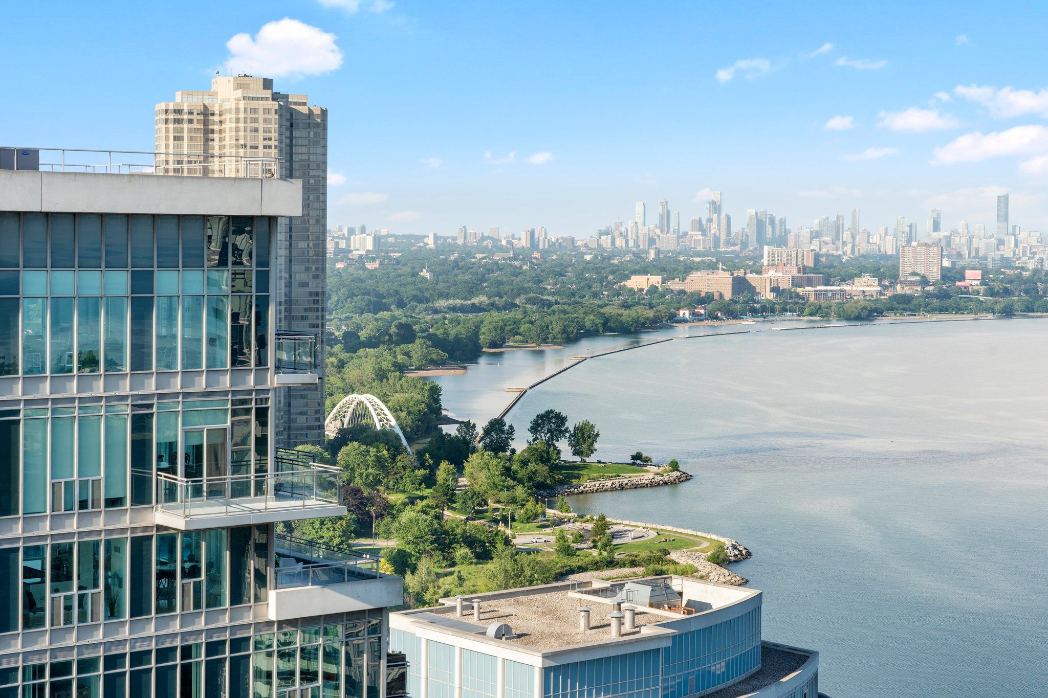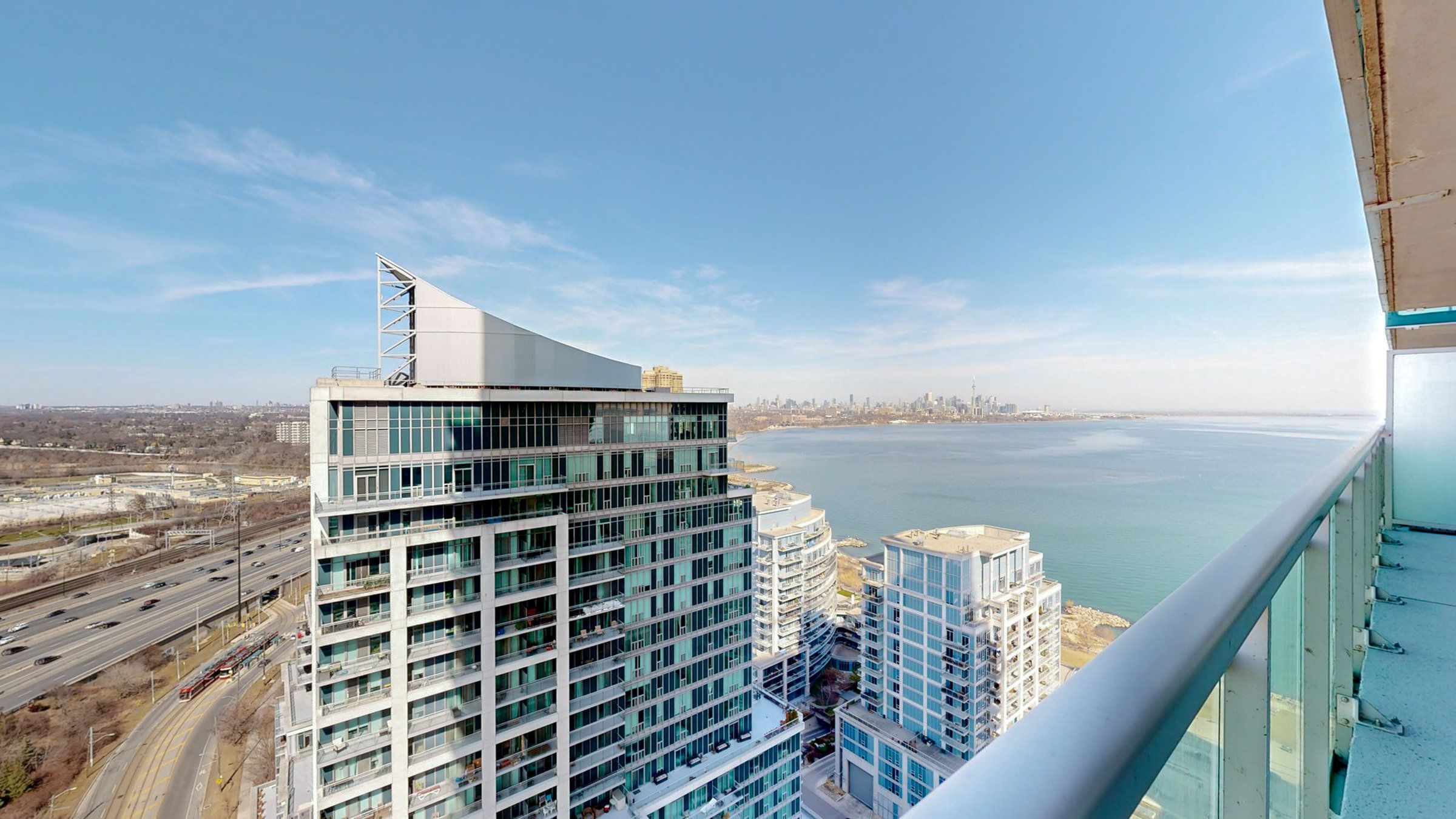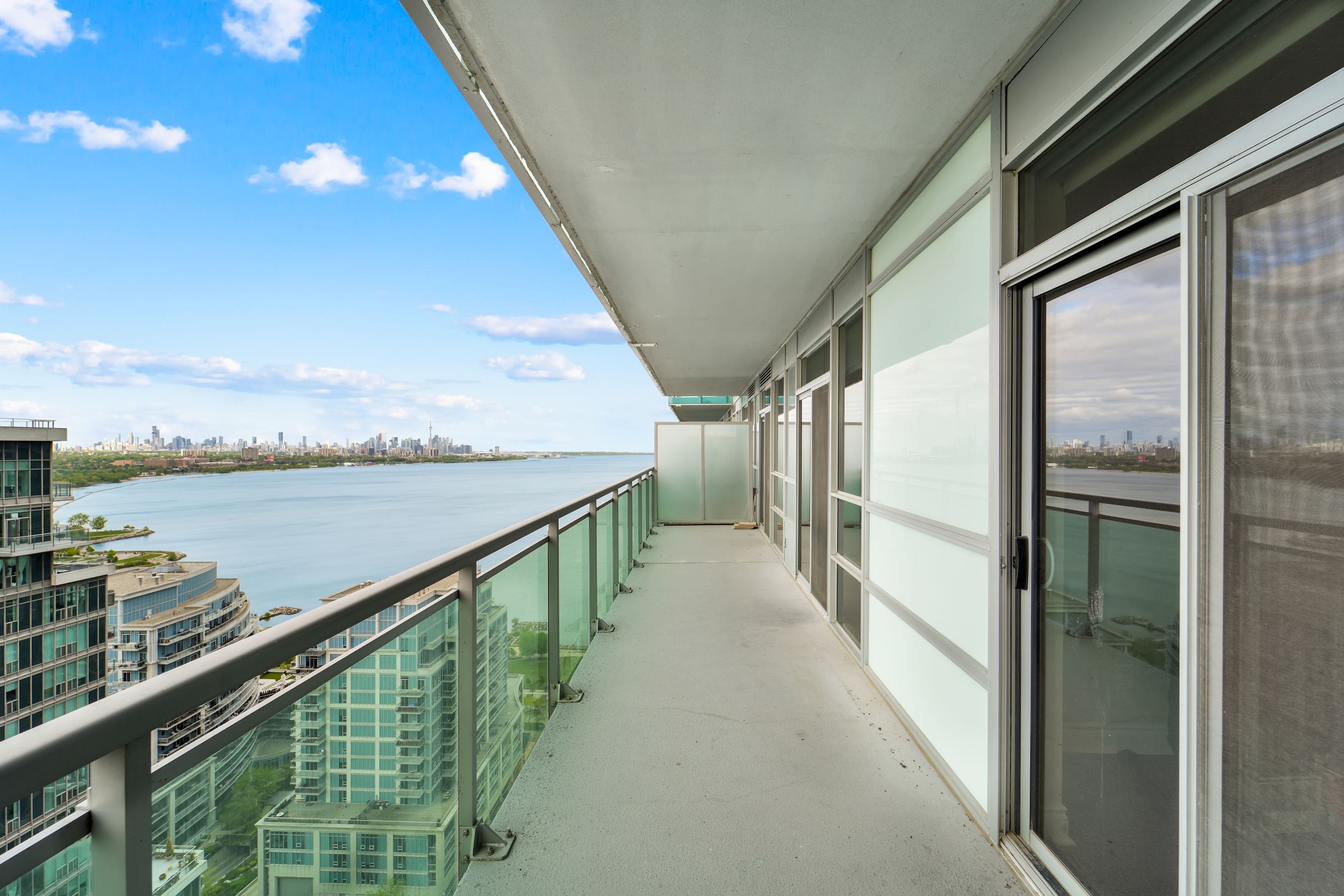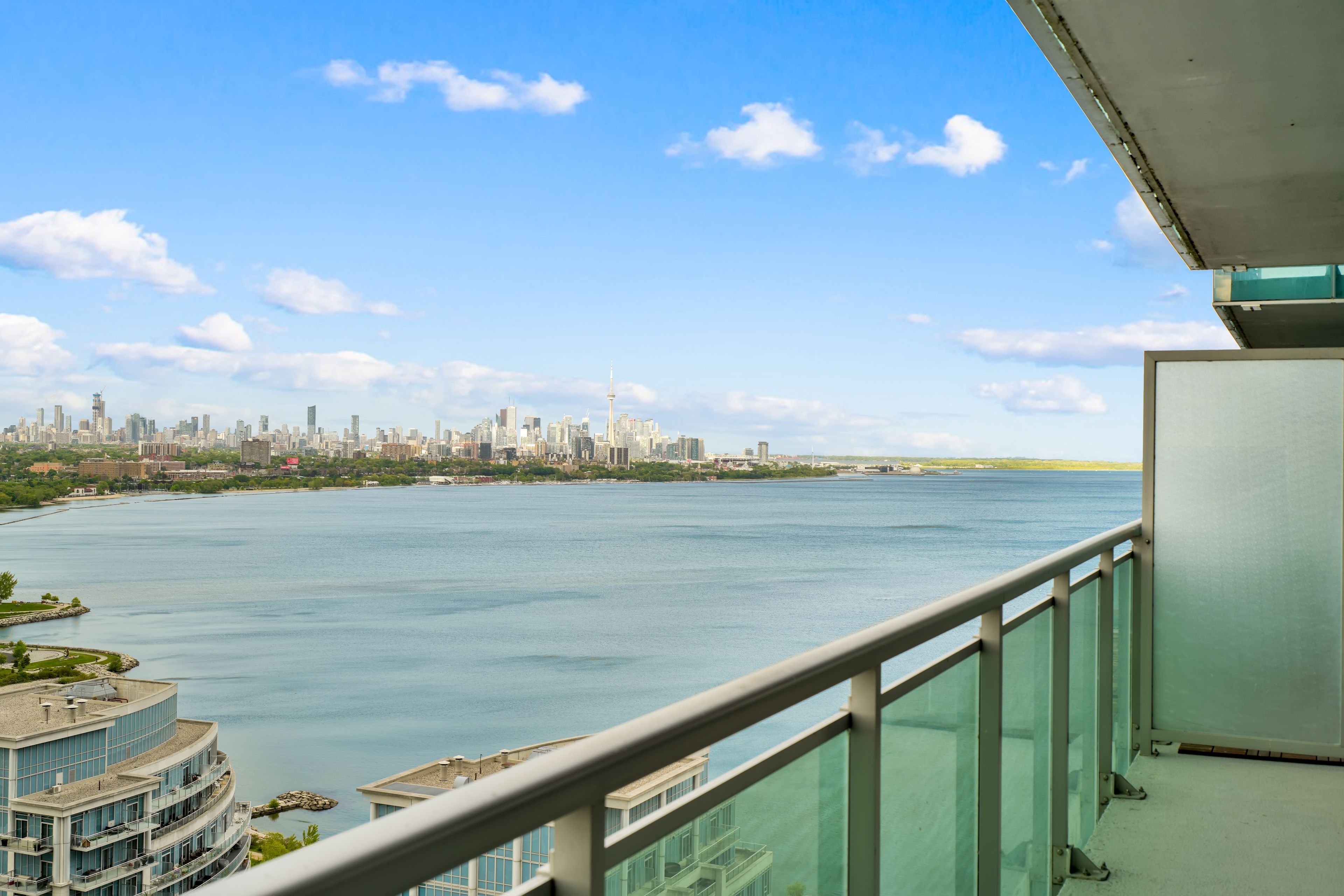 Experience elevated waterfront living in this exceptional 2-bedroom, 2-bathroom residence at Nautilus at Waterview, perfectly positioned in Toronto's vibrant Mimico community. Perched on the 26th floor, this beautifully designed 802 sq. ft. suite delivers a rare combination of style, comfort, and truly breathtaking southeast views stretching across Lake Ontario and the iconic CN Tower. From the moment you step inside, you're welcomed by a bright, open-concept layout with soaring 9-foot ceilings and dramatic floor-to-ceiling windows that flood the space with natural light. The contemporary kitchen is thoughtfully upgraded with sleek stone countertops, s/s appliances, and ample cabinetry-perfectly flowing into the living and dining area, making it ideal for both relaxed everyday living and effortless entertaining. The spacious primary bedroom offers a private retreat, complete with a walk-in closet and a modern 3-piece ensuite. The second bedroom stands out with direct balcony access-perfect for morning coffee or evening unwinding with skyline views. Step outside to your large private balcony and take in uninterrupted lake and city vistas that truly set this home apart from anything else on the market. Includes 1 parking & locker, adding practicality to its luxurious appeal. Residents enjoy resort-style amenities including a 24-hr concierge, fitness center, indoor pool, hot tub, sauna, yoga studio, party and media rooms, rooftop terrace with BBQs, guest suites, and more-everything designed to enhance your lifestyle. Located just steps from the waterfront, scenic trails, parks, and transit, with seamless access to the Gardiner Expressway, this condo offers unmatched connectivity. Whether commuting downtown or enjoying lakeside leisure, everything is at your doorstep.