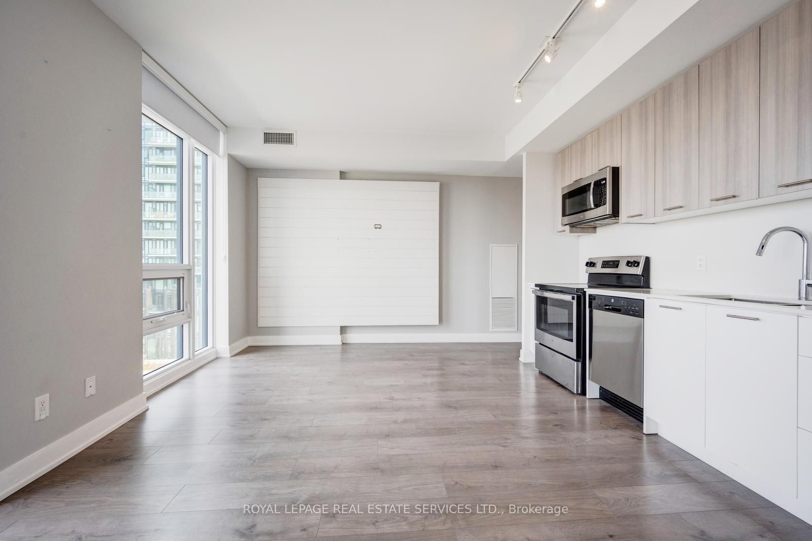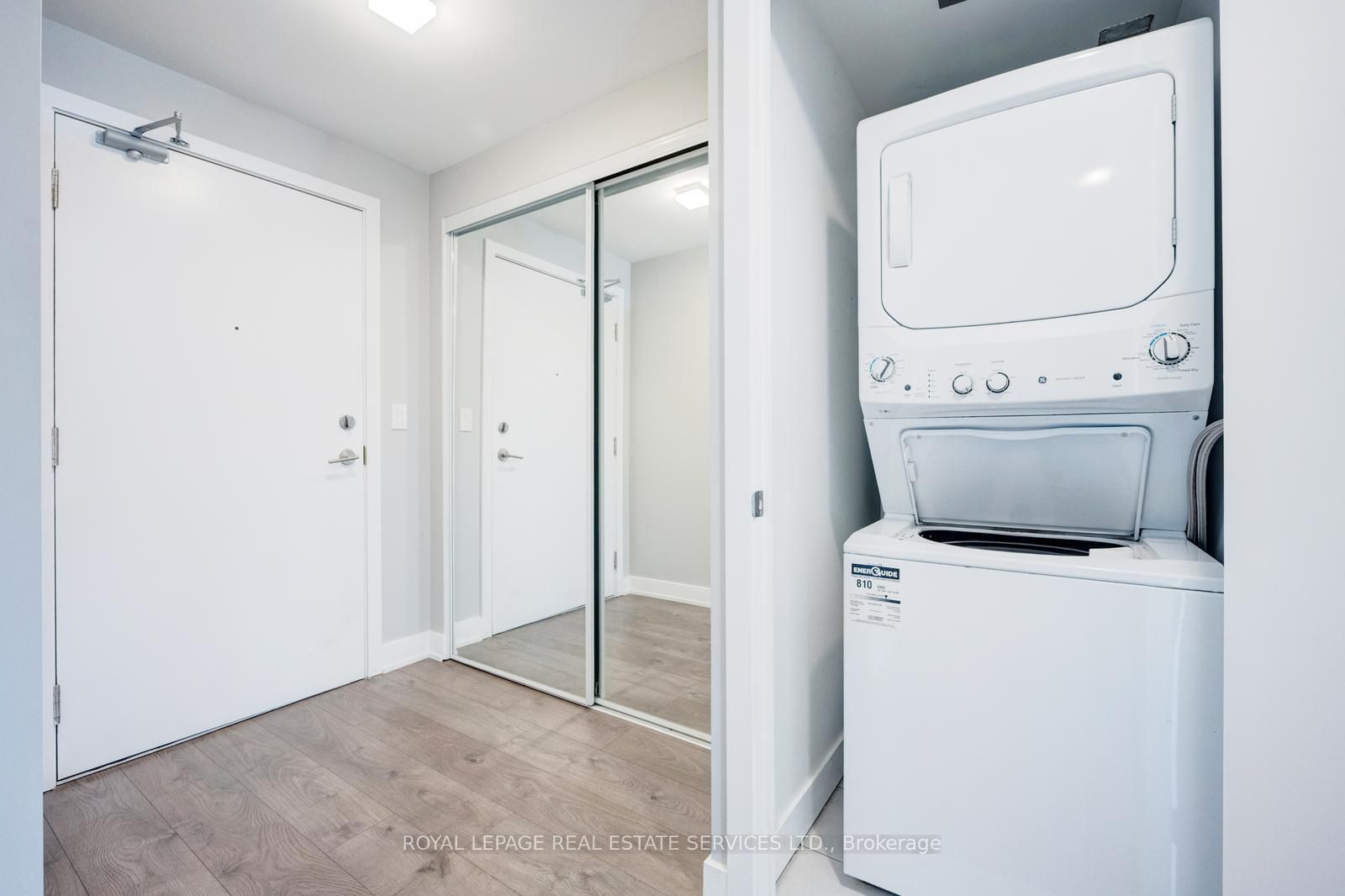 Sold under POWER OF SALE. "sold" as is - where is. Stunning 1-Bedroom + Den Unit Offering 664 Sq Ft (Builder Plans). Relax on a generous 38 Sq Ft walk-out balcony accessible from the kitchen/dining area. Bright and airy with expansive floor-to-ceiling windows and an open-concept design. Features include an accent wall in the living room, quartz countertops, and stainless steel appliances. Comes with an underground parking spot and a storage locker. Conveniently located near Mount Pleasant GO Station, schools, parks, and shopping.
