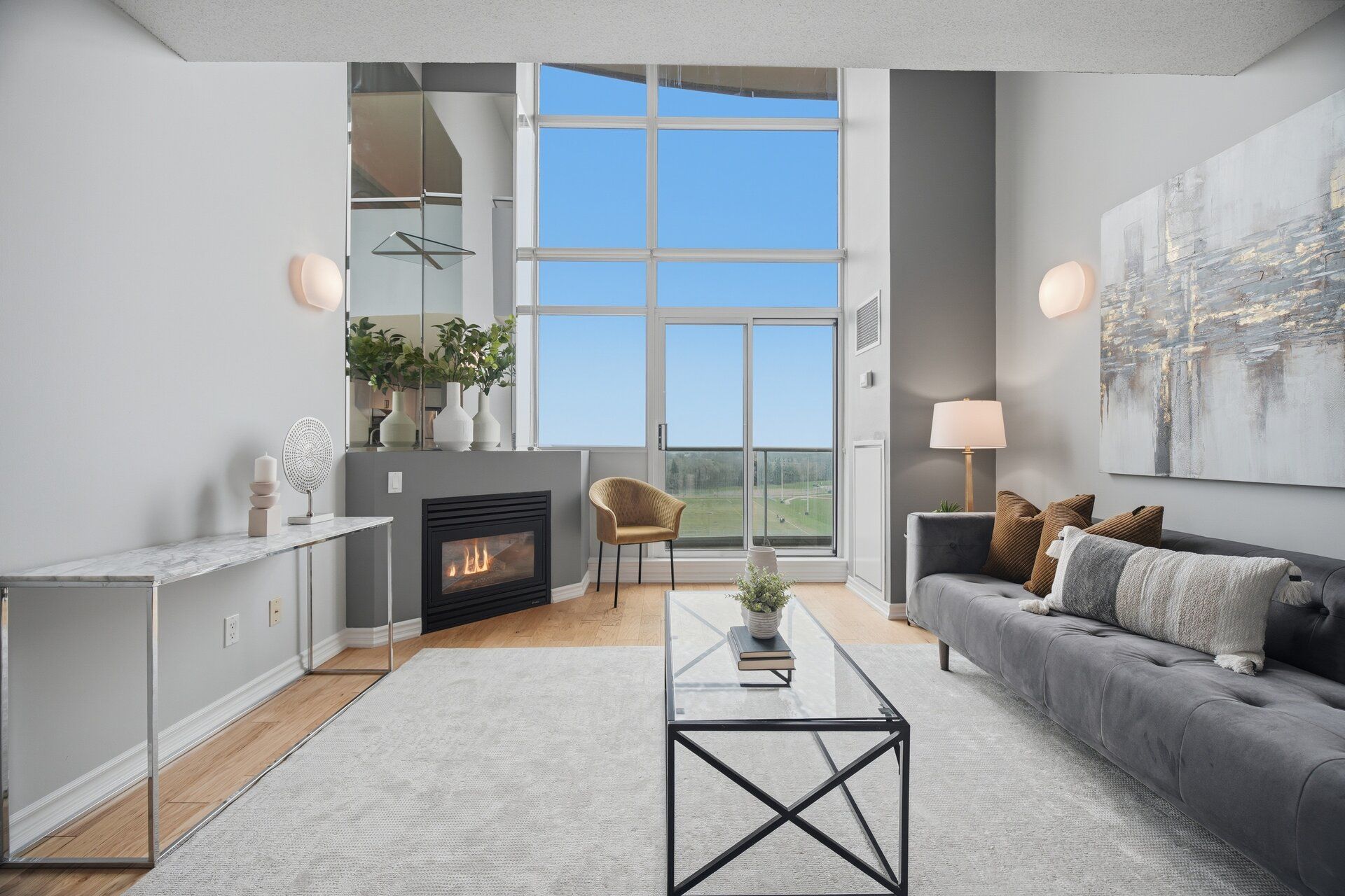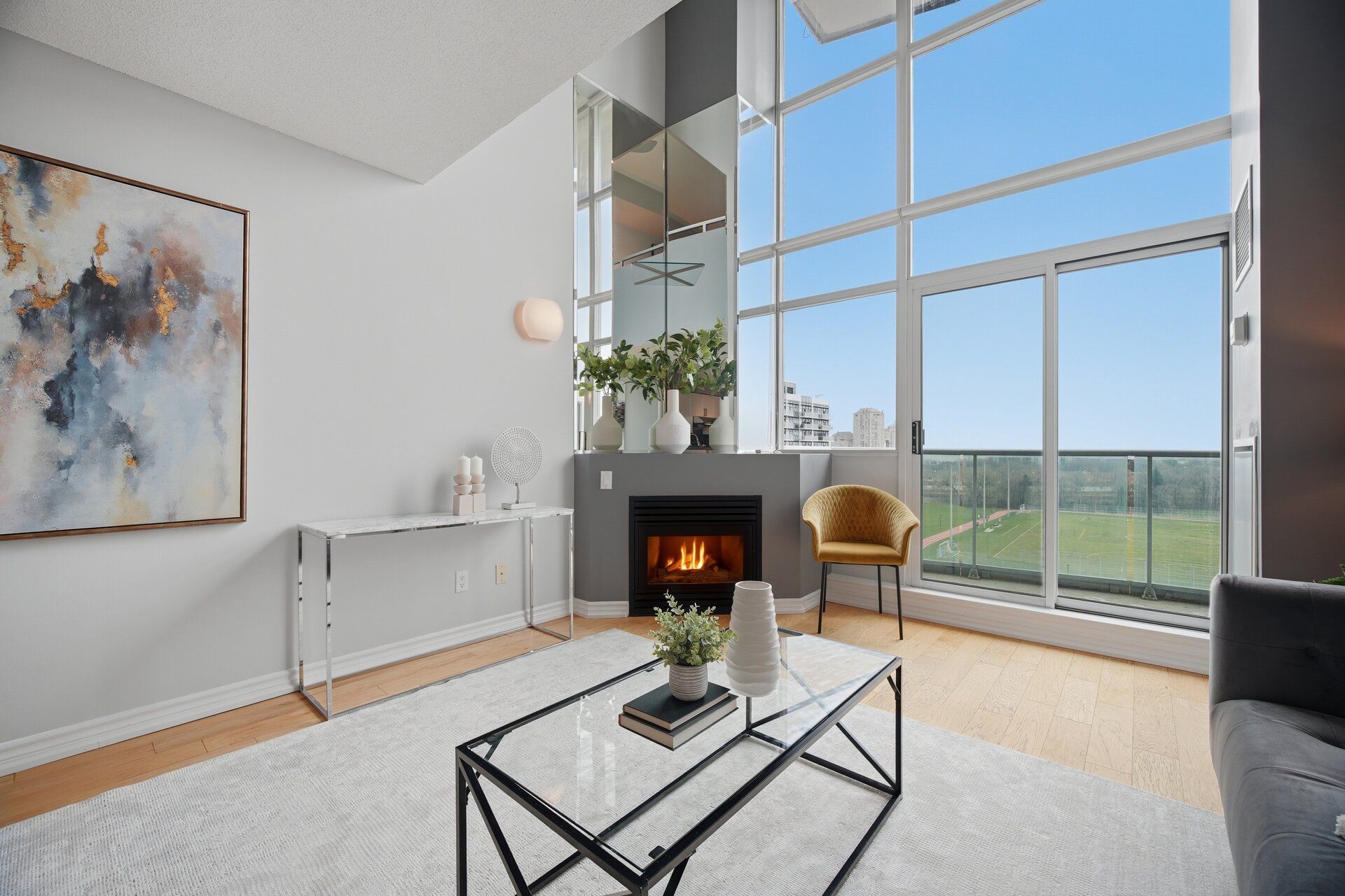 Welcome to this rare loft-style condo in the heart of Mimico's sought-after Park Lawn community- where space, light, and lifestyle come together beautifully. Offering nearly 1,000 sqft (995 sqft to be exact), this bright, open concept suite showcases stunning south-facing views and dramatic floor-to-ceiling windows under 17ft tall ceilings, filling the space with natural light. The modern loft design feels both stylish and inviting. The spacious primary bedroom is complemented by a large den- perfect as a second bedroom, home office, or guest space. Enjoy the convenience of one full bathroom plus an additional powder room for guests. The Kitchen features a dine-in breakfast bar, ideal for casual meals and entertaining, along with cozy fireplace and full sized laundry. A true standout feature: two parking spaces- an incredible find- plus a convenient storage locker. Ideally located just minutes from the waterfront, parks, trails, shopping, and major highways, this vibrant community offers the perfect blend of urban convenience and relaxed lakeside living. A rare opportunity you don't want to miss!