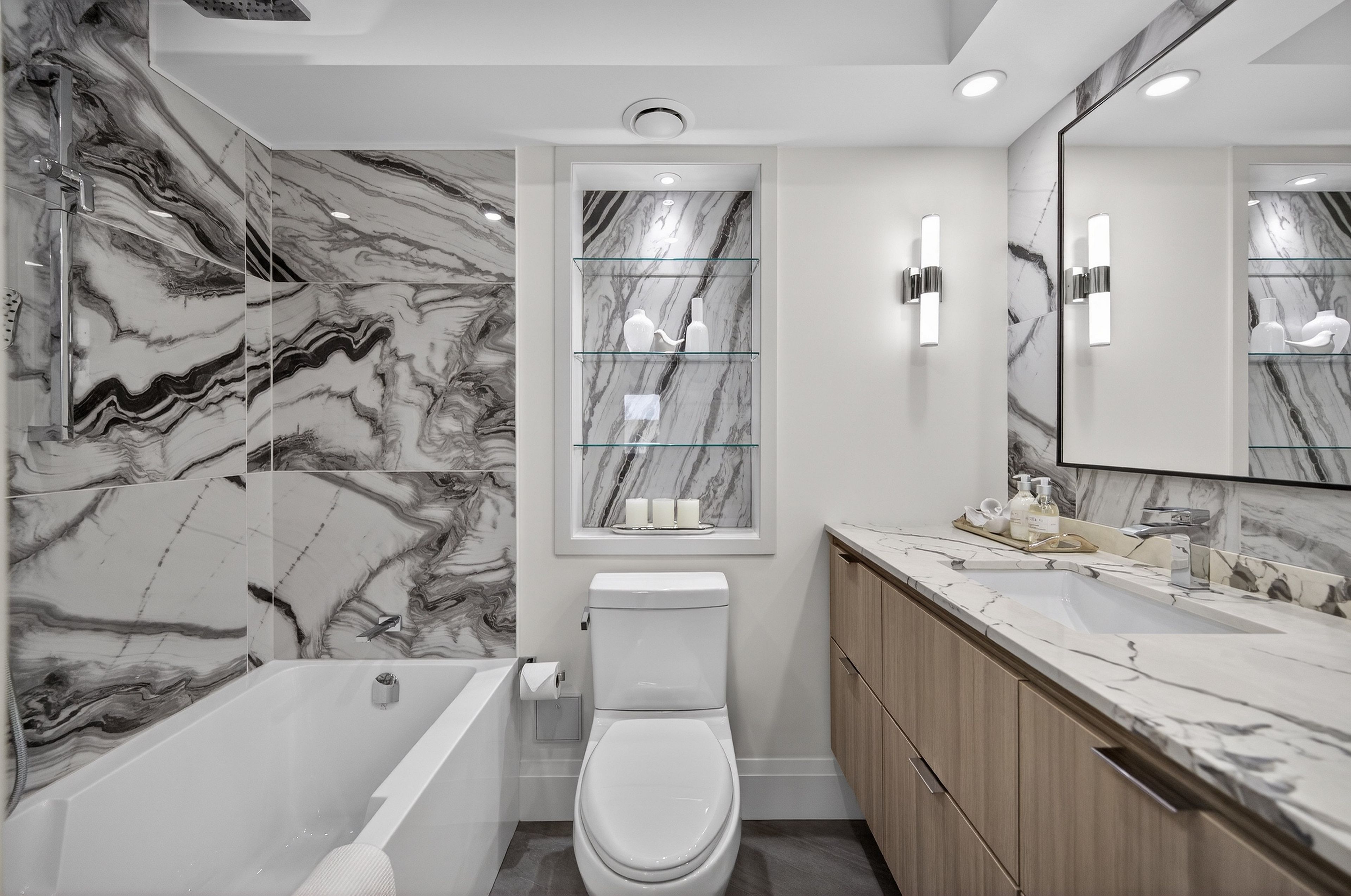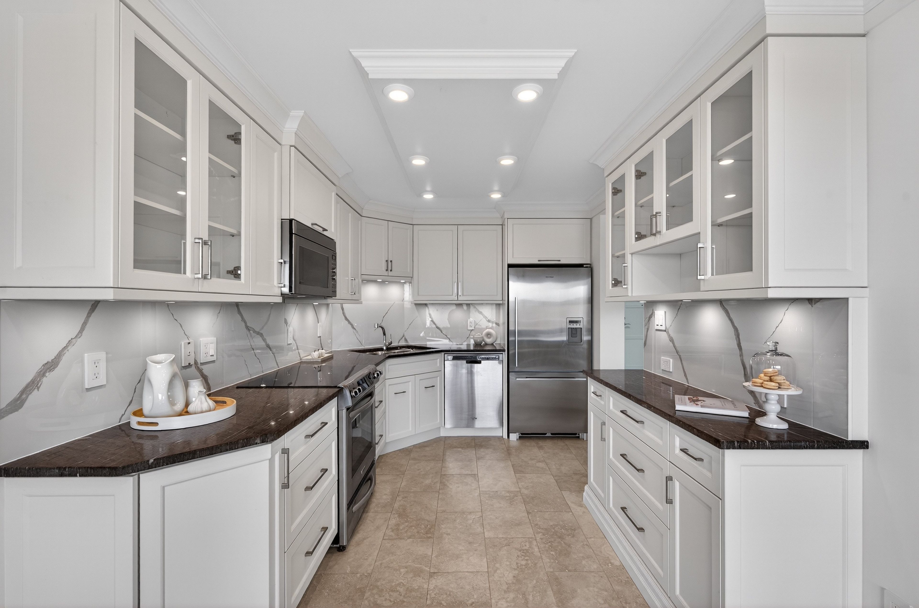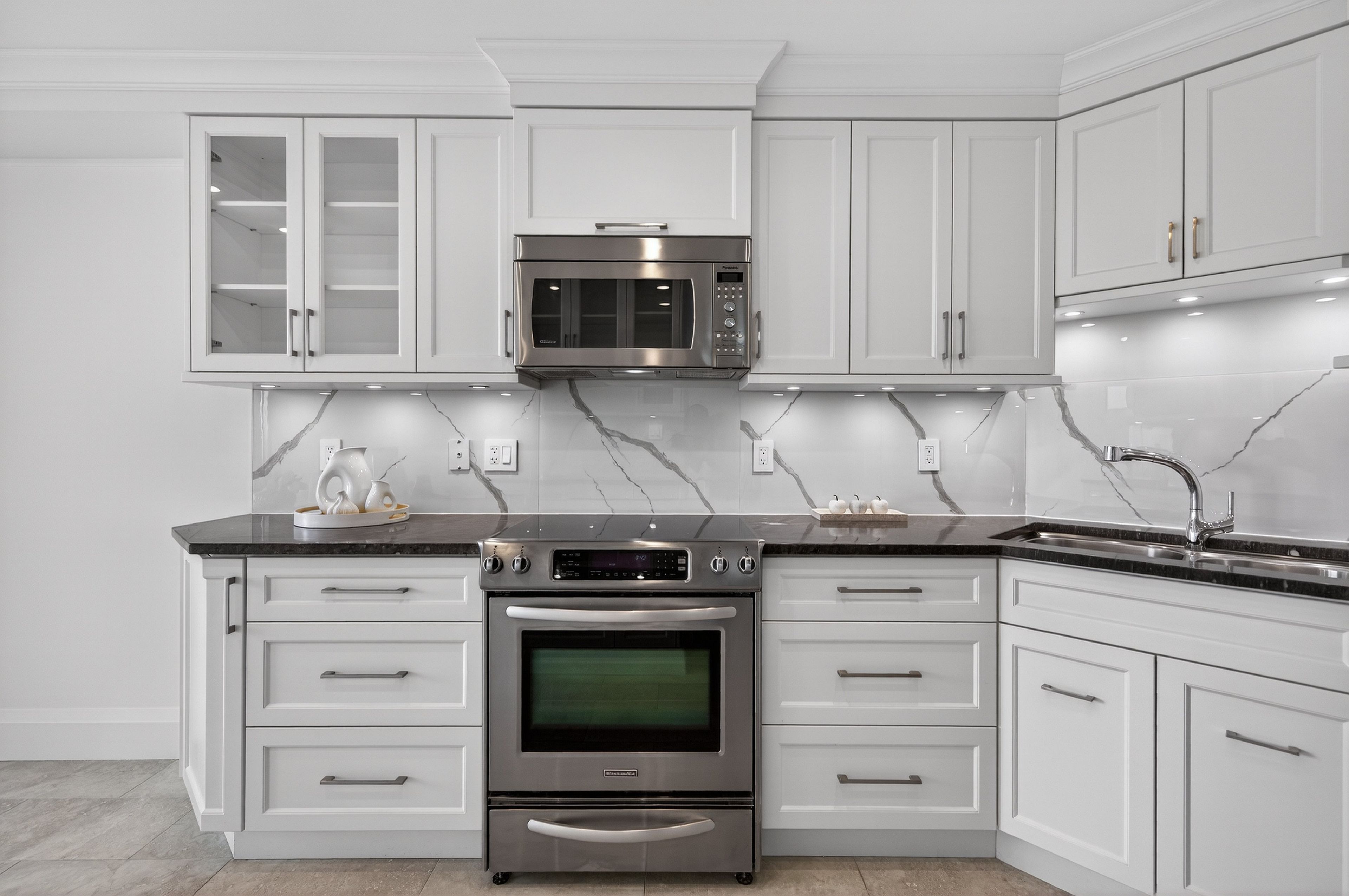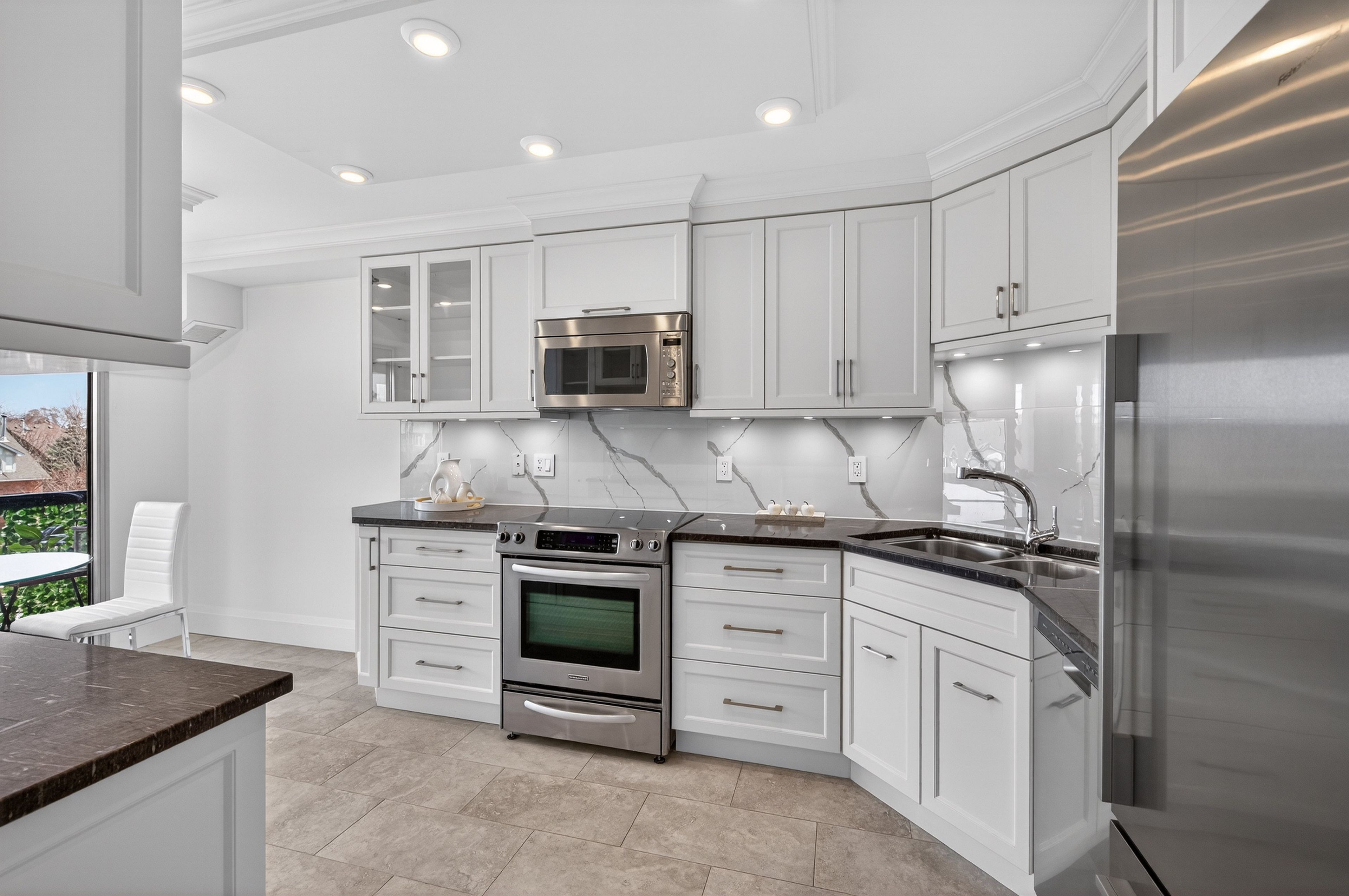 Experience the best of living at #403 - 2170 Marine Drive. Completely reimagined through a comprehensive renovation, this luxury suite boasts a redesigned layout to enhance flow & functionality, with impeccable attention to detail. Ceilings have been raised to maximize height in key areas, creating a bright, open & airy feel rarely found in similar units. Significant upgrades include built-in storage solutions complemented by high-end quality finishes, custom millwork & designer fixtures throughout. Finished with 7.5" Canadian ash hardwood flooring, smooth ceilings, crown moulding, custom 84" doors & pot lighting. Both bathrooms have been reconfigured with upgraded plumbing & electrical, quartz counters, porcelain tile floors & sleek pocket doors. The foyer offers a large closet, walk-in storage room with custom shelving & stylish niche. The living room showcases a custom entertainment unit with TV niche & Dimplex electric fireplace, floor-to-ceiling windows & walk-out to the balcony. The kitchen is equipped with white shaker cabinetry, granite counters, porcelain backsplash & stainless steel appliances. The primary suite features a customized walkin closet & raised sitting area. The second bedroom offers a custom builtin wardrobe & balcony walk-out. Additional highlights include a laundry room with custom cabinetry, sink, quartz counter, new washer/dryer & upgraded quiet ceiling fan. Ennisclare II on the Lake offers exceptional amenities: gated with 24-hour security, indoor pool, exercise rooms, clubhouse, party rooms, billiards, tennis, workshop, outdoor seating, visitor parking & so much more. Situated on 5 acres of waterfront in Bronte Village, steps to Bronte Harbour, waterfront parks, trails, dining & shopping. Smoke-free community & dogs not permitted. Includes 1 parking space & exclusive locker. A thoughtfully crafted one-of-a-kind residence! VIEW THE PROPERTY FEATURES PAGE FOR MORE DETAILS & 3D IGUIDE HOME TOUR FOR MORE PHOTOS, FLOOR PLAN, VIDEO & BROCHURE