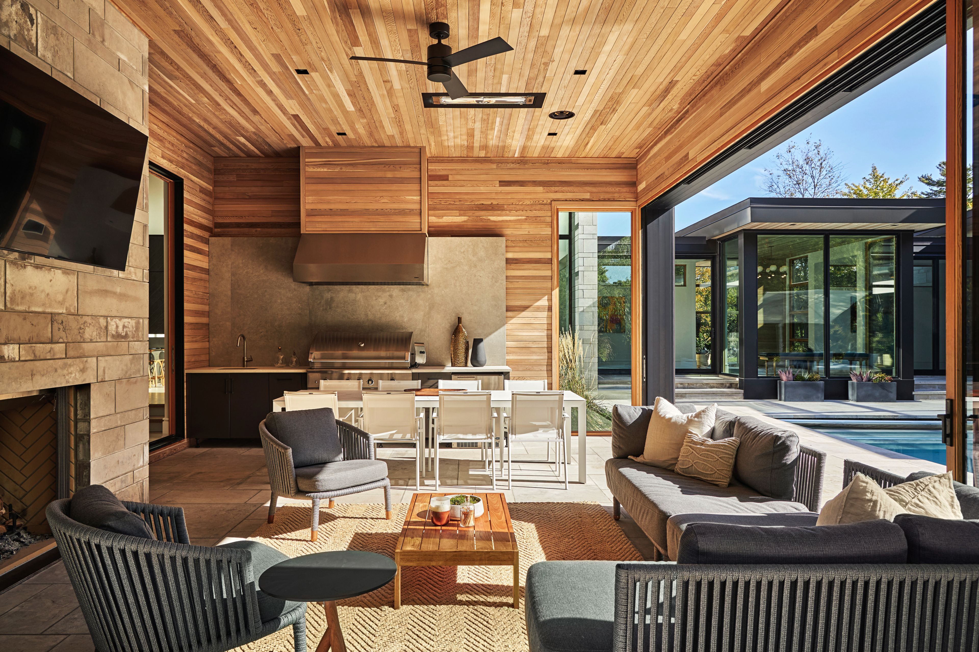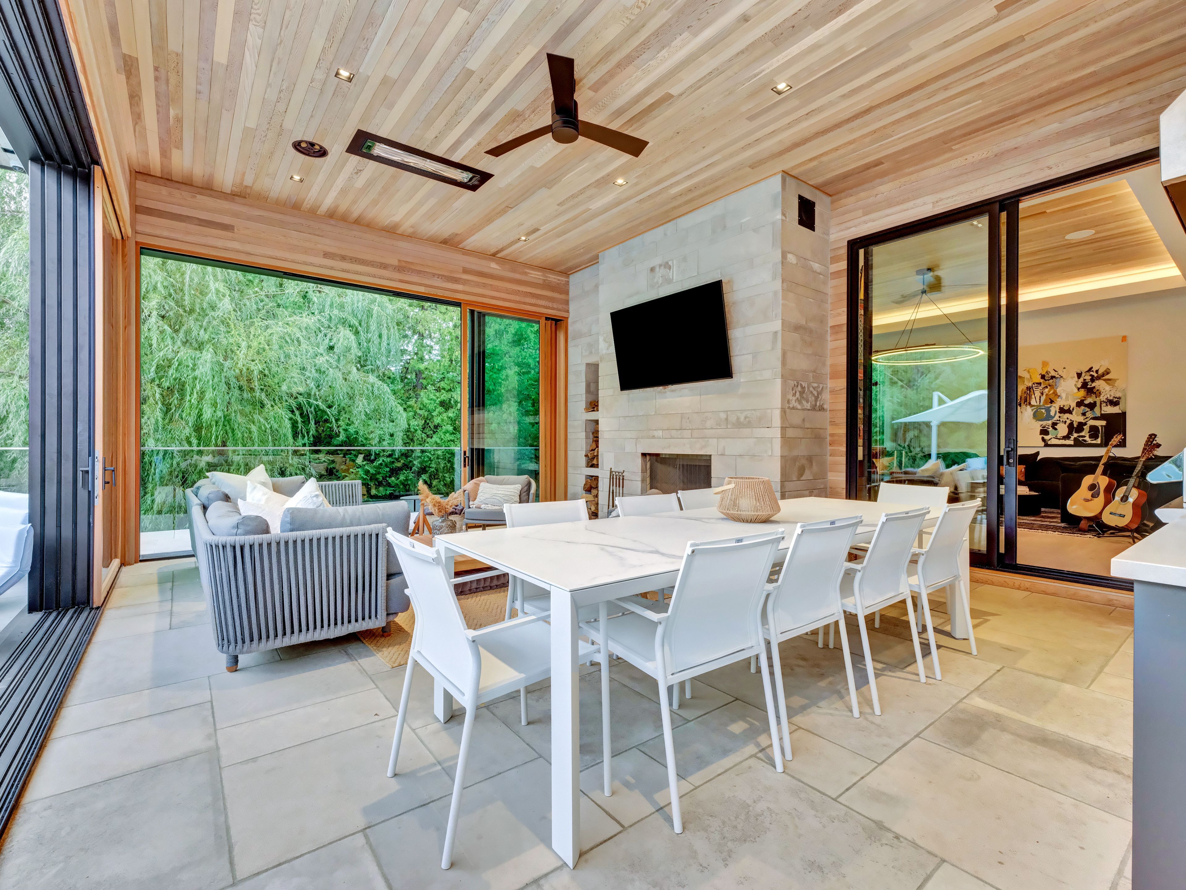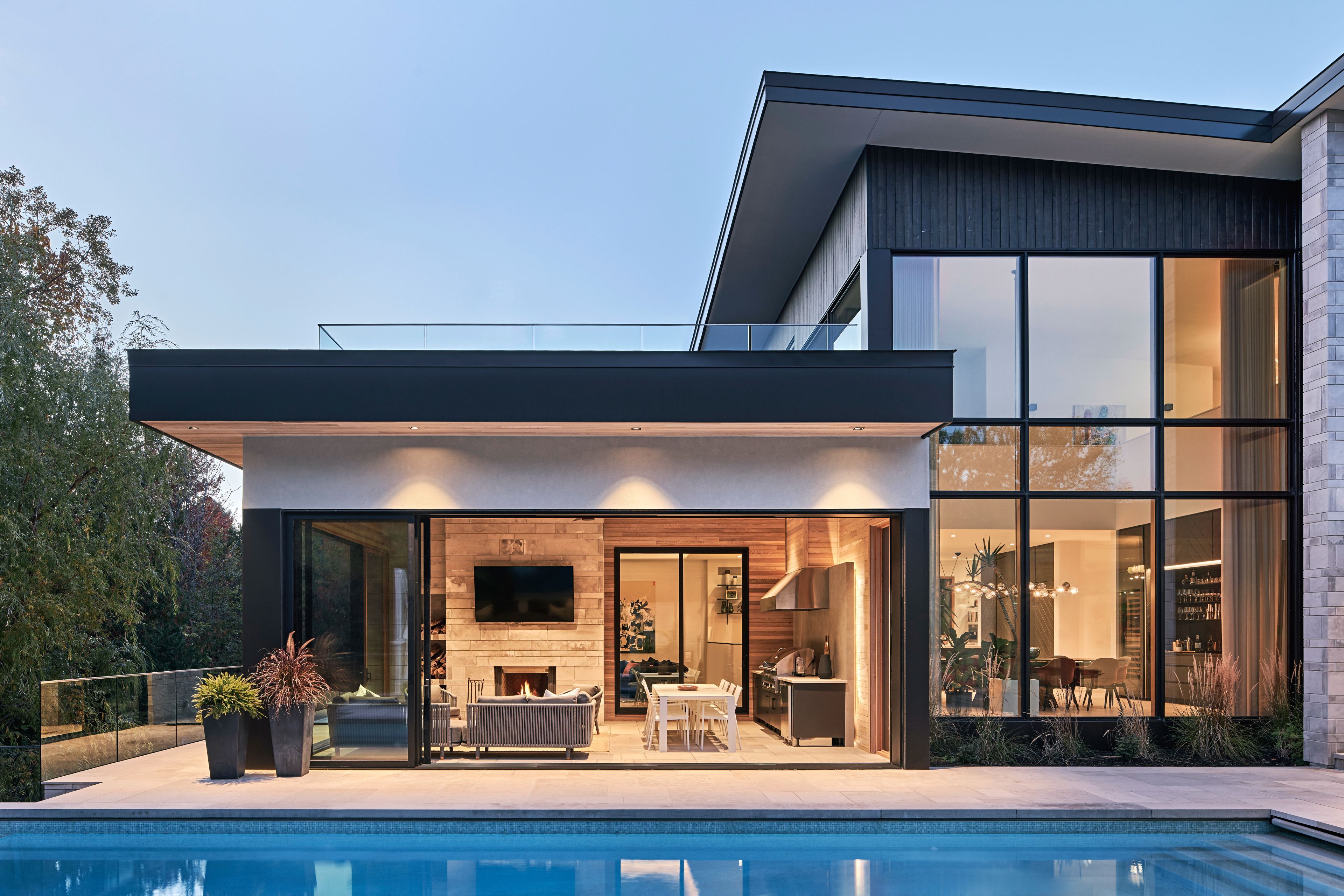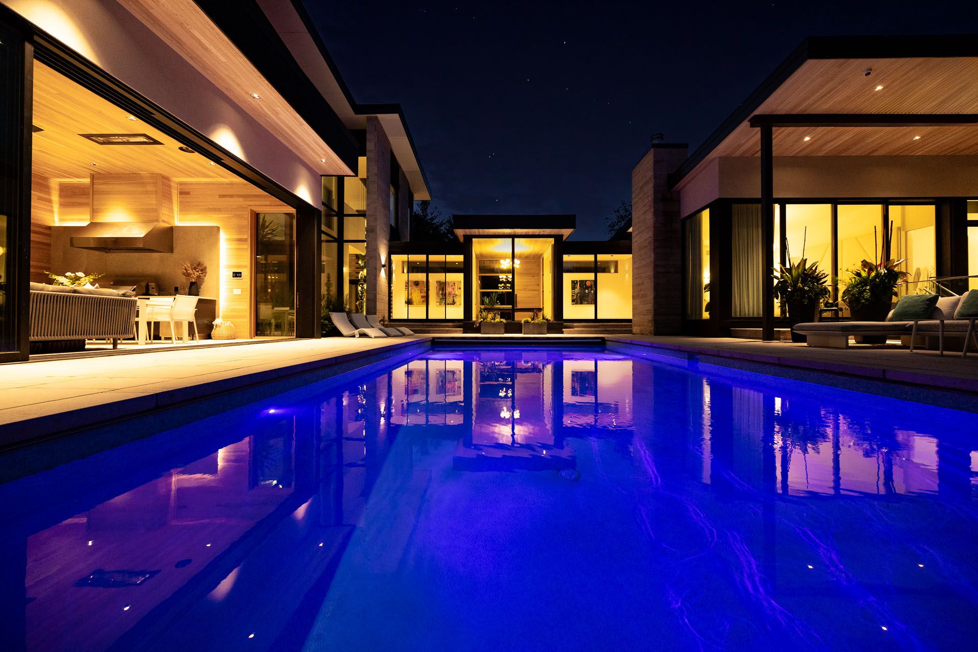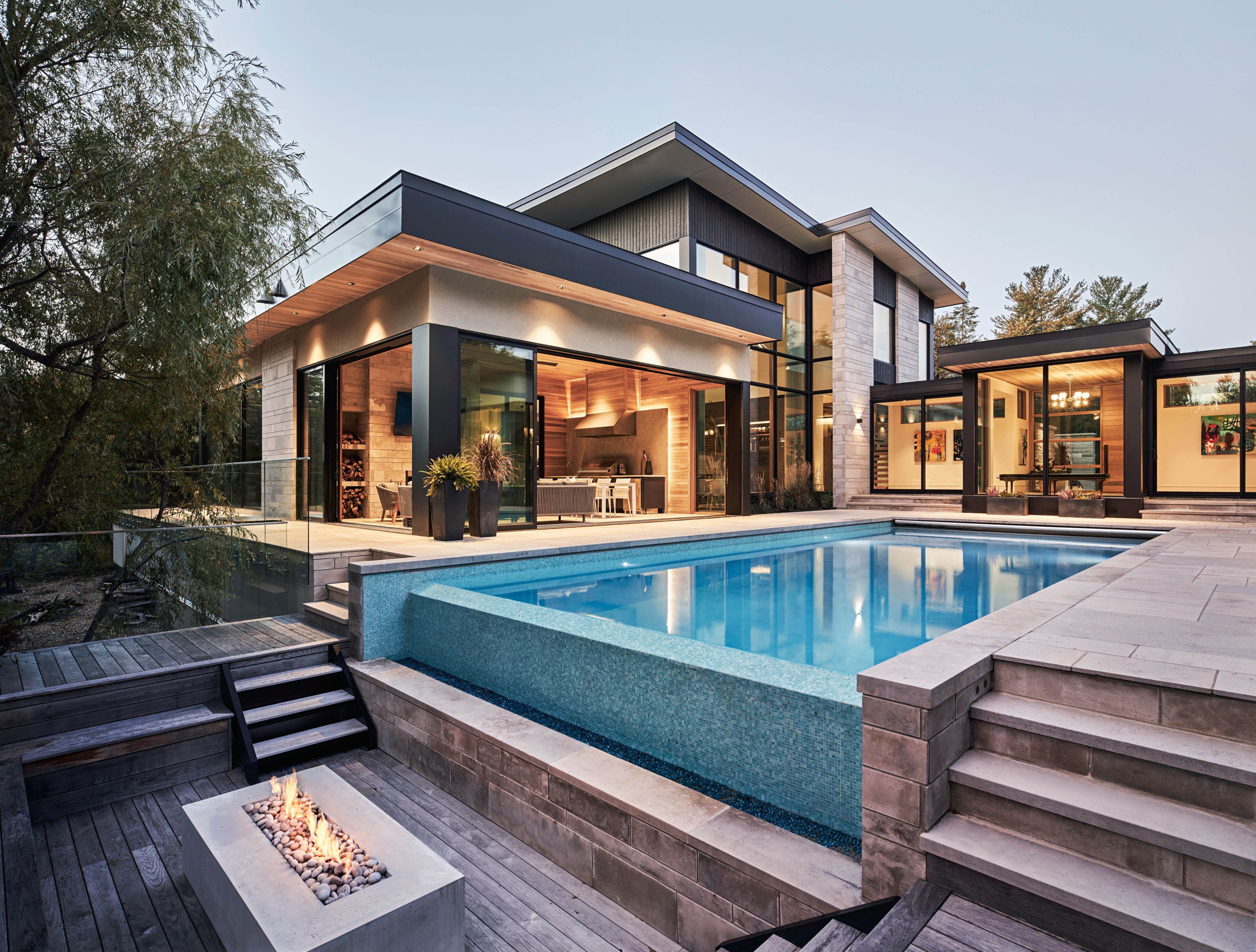 Discover a rare opportunity to own an architectural dream in the Kanata Rockeries. This ultra-private residence seamlessly blends elegance, innovative design, and the tranquility of nature in every space, offering a lifestyle of unparalleled luxury & a spa-like atmosphere right at home. Relax & unwind in the saltwater infnity pool overlooking the serene pond, soak in the hot tub, rejuvenate in the sauna & steam room, or cozy up by one of the 5 fre features. For ftness enthusiasts, the massive home gym is a haven, & nature lovers will appreciate the 6km nature hike accessible directly from your backyard. With over 9,000sf of meticulously curated living space, this home is designed for both intimate family living and grand-scale entertaining, indoors and out. The main foor is bathed in natural light, with panoramic views of the surrounding landscape. The primary retreat exudes elegance, wrapped in a warm, inviting ambiance & adorned with a lavish marble ensuite featuring heated foors, along with a dedicated makeup desk, a chic spacious walk-in closet, private laundry, & breathtaking foor-to-ceiling sliding glass wall to private deck & hot tub. The Chef's kitchen is a culinary masterpiece, featuring two 9ft islands & custom 15t banquet. Behind seamless custom cabinetry lies a hidden prep kitchen & pantry, featuring storage & secondary fridge & freezer. The dining room, complete with a bar & built-in wine fridges, fows effortlessly into the inviting living room. A heated 3-season room is designed for year-round enjoyment with sliding glass walls opening to the pool, a wood freplace & designer outdoor kitchen. The heated front walkway is a dream in the winter plus the 4 car heated garage offers direct access to the mudroom & separate entry to the basement-level sports room which is fully ventilated; perfect for active families. Nestled in the heart of the city, you can walk to shopping, dining, top-rated schools, rec facilities!
