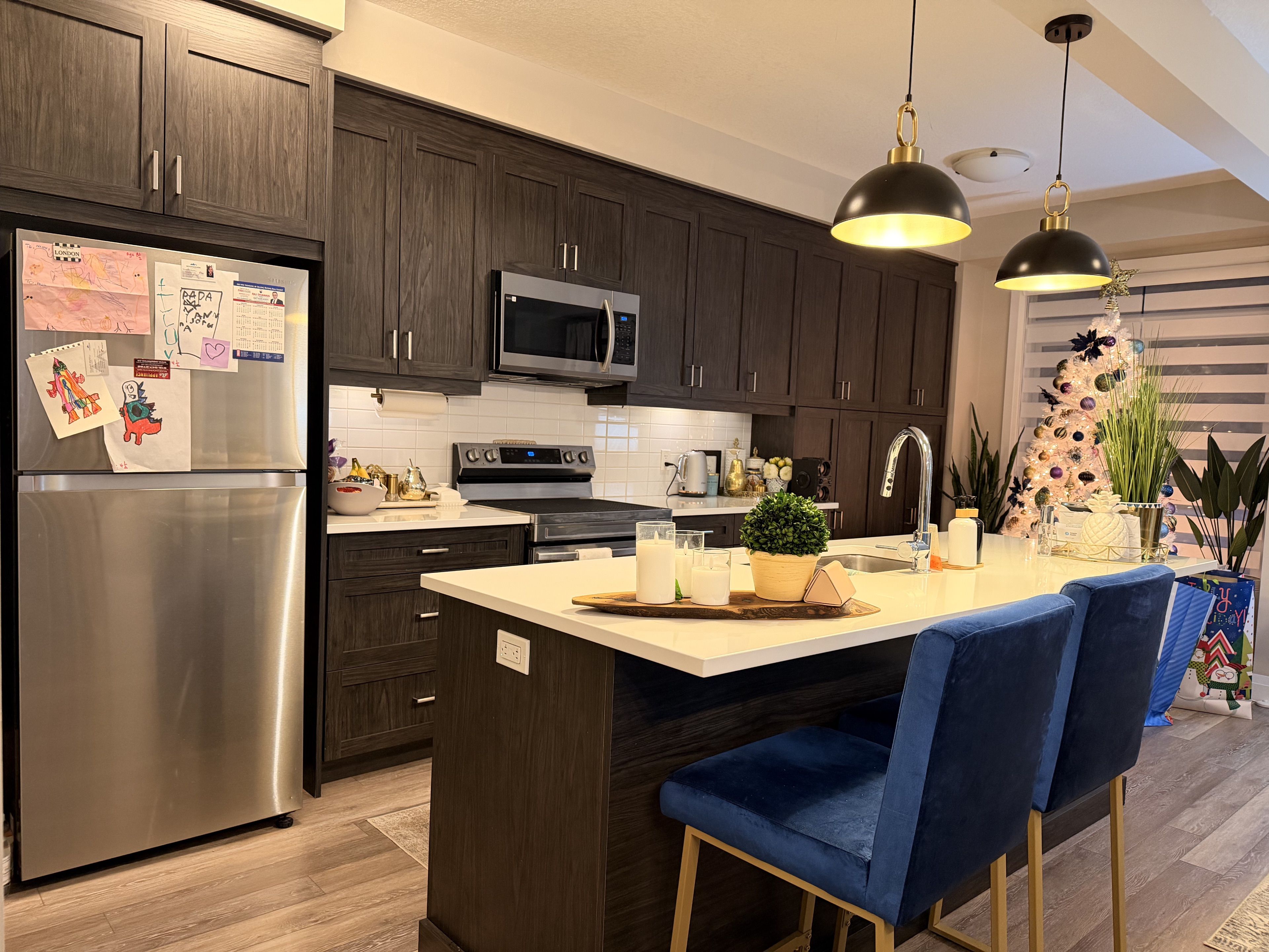Discover this newly built private enclave of townhomes, set in the historic Cambridge vineyard area and backing onto stunning forest views with your own ravine backyard. Perfectly located just minutes from schools, parks, streams, and all essential amenities-including Highway 401-this home offers exceptional convenience in a serene natural setting.The bright, open-concept main floor features hardwood throughout and a smart, highly efficient layout with no wasted space. The upgraded kitchen showcases four brand-new stainless steel Samsung appliances and modern finishes.Enjoy 2.5 beautifully upgraded bathrooms complete with granite countertops and soft-close cabinetry. The second floor includes three spacious bedrooms designed to accommodate a growing family, each fitted with premium zebra blinds. A private second-floor laundry room adds convenience with full-size Samsung washer and dryer units.Additional highlights include two parking spaces, a single-car garage with remote access, and thoughtfully selected upgrades throughout.