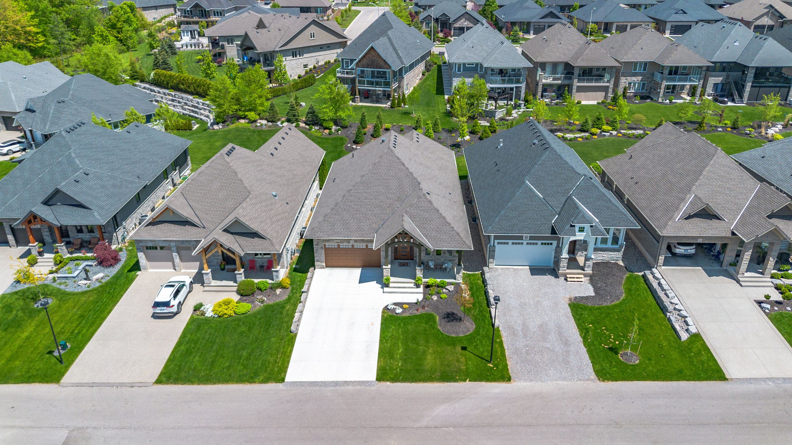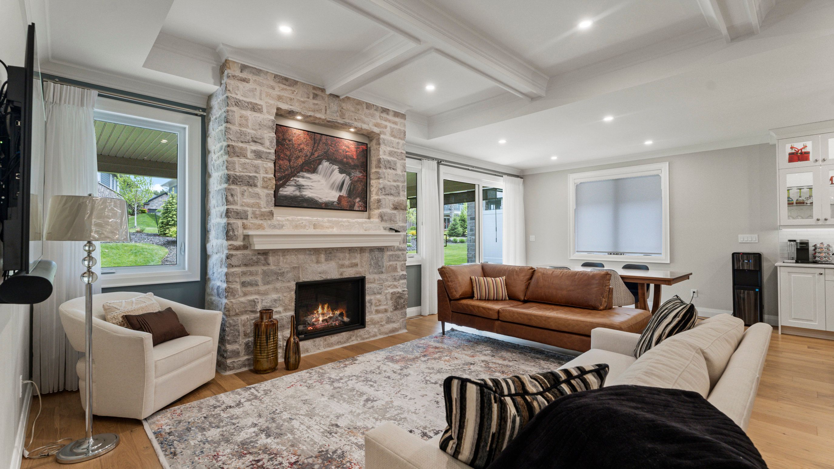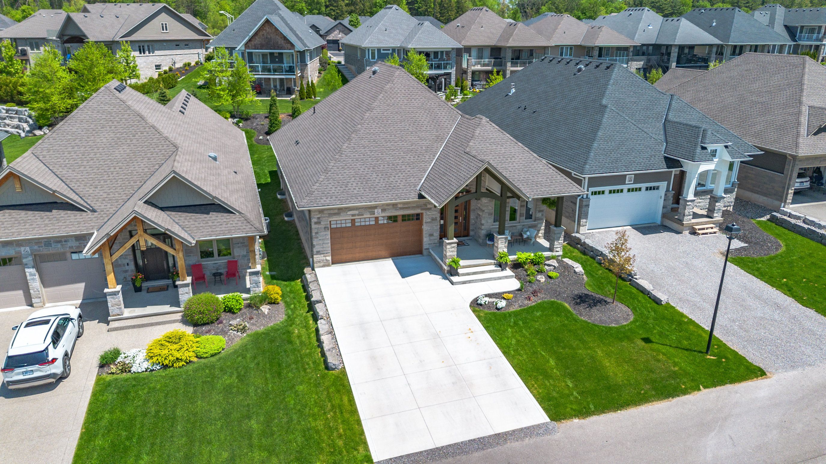Welcome to 52 Beechnut Lane situated in the exclusive community of The Flats at Black Creek. This stunning bungalow offers an exceptional blend of luxury, comfort, & natural beauty. Surrounded by 14 acres of private parkland, residents enjoy access to scenic hiking trails & over 2,000 feet of private waterfront - complete with boat slips, kayak launch, & a fishing platform reserved exclusively for homeowners. Offering 2,971 sqft of total living space, this home has 2+2 bedrooms, 3 full bathrooms, and double attached garage. As you approach the home, you'll be welcomed by a landscaped yard & charming covered front porch. Inside you'll find modern, high-end finishes, from the hardwood flooring to the crown moulding flowing throughout the main floor. The spacious front bedroom can easily serve as a home office, and has direct access to the main 3-piece bath. Continue to the heart of the home, where the living, dining, & kitchen areas are bathed in natural light and flow together. The kitchen is a chef's dream, w/ample cabinetry, quartz countertops, centre island, and walk-in pantry. The dining area overlooks the beautiful backyard, offering the perfect backdrop for everyday meals or special gatherings. Anchoring the living room is a striking gas fireplace, framed by a coffered ceiling. Just steps away, the primary bedroom features a luxurious 5-piece ensuite & a generously sized walk-in closet for all your storage needs. Head down to the fully finished lower level, where you'll find 2 additional spacious bedrooms, a full bathroom, and a large rec room complete with a gas fireplace. Step into the backyard oasis, where a spacious covered porch awaits-complete with a cozy gas fireplace. Whether you're exploring the surrounding trails, launching your kayak at the private dock, or simply relaxing in the comfort of your beautifully crafted home, this home offers a rare lifestyle opportunity in a truly special setting.