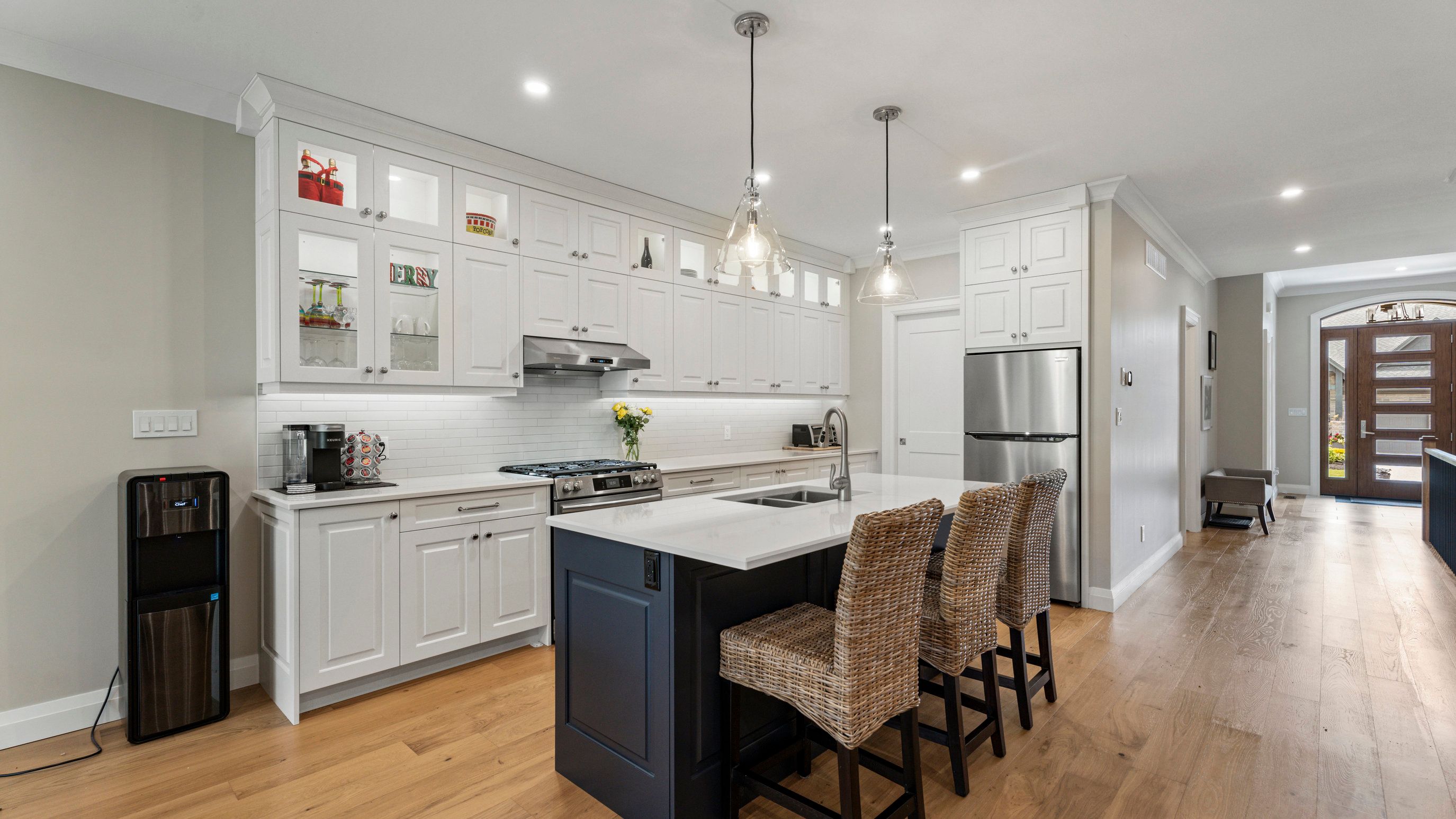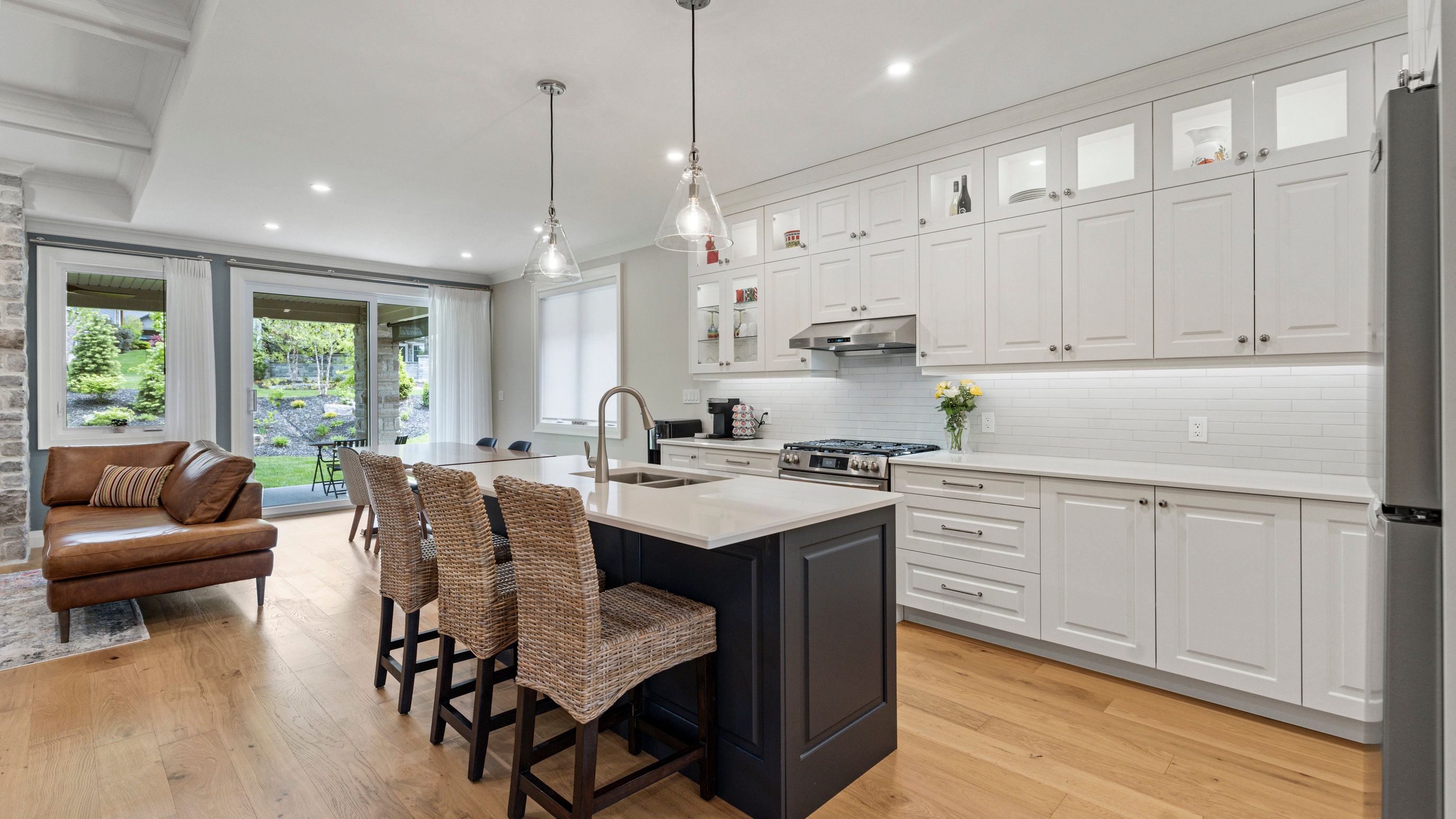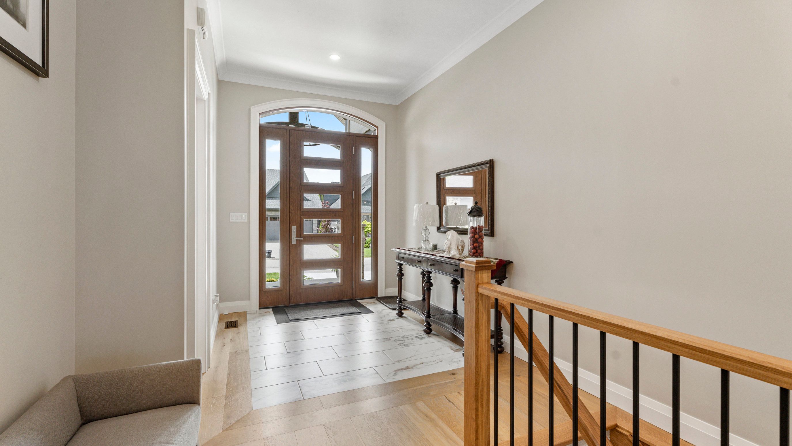 Welcome to 52 Beechnut Lane situated in the exclusive community of The Flats at Black Creek. This stunning bungalow offers an exceptional blend of luxury, comfort, & natural beauty. Surrounded by 14 acres of private parkland, residents enjoy access to scenic hiking trails & over 2,000 feet of private waterfront - complete with boat slips, kayak launch, & a fishing platform reserved exclusively for homeowners. Offering 2,971 sqft of total living space, this home has 2+2 bedrooms, 3 full bathrooms, and double attached garage. As you approach the home, you'll be welcomed by a landscaped yard & charming covered front porch. Inside you'll find modern, high-end finishes, from the hardwood flooring to the crown moulding flowing throughout the main floor. The spacious front bedroom can easily serve as a home office, and has direct access to the main 3-piece bath. Continue to the heart of the home, where the living, dining, & kitchen areas are bathed in natural light and flow together. The kitchen is a chef's dream, w/ample cabinetry, quartz countertops, centre island, and walk-in pantry. The dining area overlooks the beautiful backyard, offering the perfect backdrop for everyday meals or special gatherings. Anchoring the living room is a striking gas fireplace, framed by a coffered ceiling. Just steps away, the primary bedroom features a luxurious 5-piece ensuite & a generously sized walk-in closet for all your storage needs. Head down to the fully finished lower level, where you'll find 2 additional spacious bedrooms, a full bathroom, and a large rec room complete with a gas fireplace. Step into the backyard oasis, where a spacious covered porch awaits-complete with a cozy gas fireplace. Whether you're exploring the surrounding trails, launching your kayak at the private dock, or simply relaxing in the comfort of your beautifully crafted home, this home offers a rare lifestyle opportunity in a truly special setting.