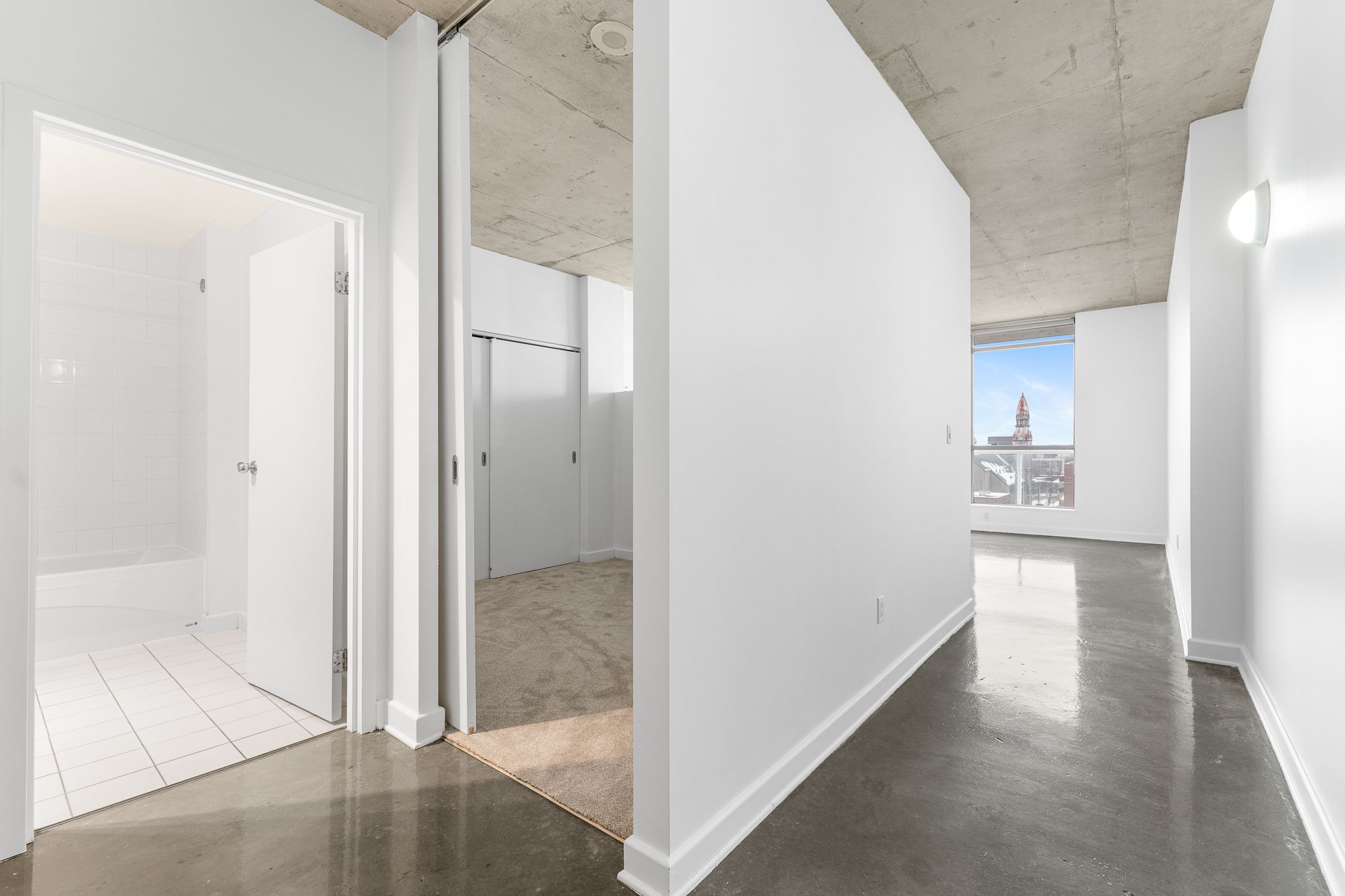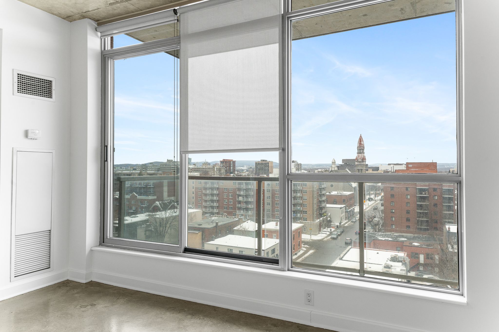 Come experience urban living at its best in the heart of downtown Ottawa! Welcome home to this stylish one bedroom loft style condo at 180 York Street, in the popular East Market building. Perched high on the 9th floor, this open-concept condo offers breathtaking, panoramic views of the Ottawa River and the Gatineau Hills through floor-to-ceiling windows - perfect for soaking in our City's stunning sunsets and letting the natural light pour in all day long. Designed with an industrial-chic aesthetic, the space features sealed concrete floors, 9 foot ceilings, trendy sliding barn-style doors, and a sleek, modern layout that maximizes both style and function. The unit includes all appliances and an expansive balcony, ideal for relaxing or entertaining above the city! Step outside and enjoy one of Ottawa's most walkable and vibrant neighbourhoods. Located just steps from the ByWard Market, you're surrounded by top restaurants, cafés, shops, nightlife, Parliament Hill, and the University of Ottawa - making this an unbeatable location for first-time Buyers, students, young professionals, down sizers or investors. The East Market building offers its residents excellent amenities including a gym, party/meeting room, and a large outdoor patio with BBQs, providing a low-maintenance lifestyle in a truly iconic downtown setting. Plus, storage locker included! What else could you need! Whether you're looking to live or invest, this condo delivers location, lifestyle, and views in one exceptional package. Come fall in love today! Some photos virtually staged to show the homes potential.