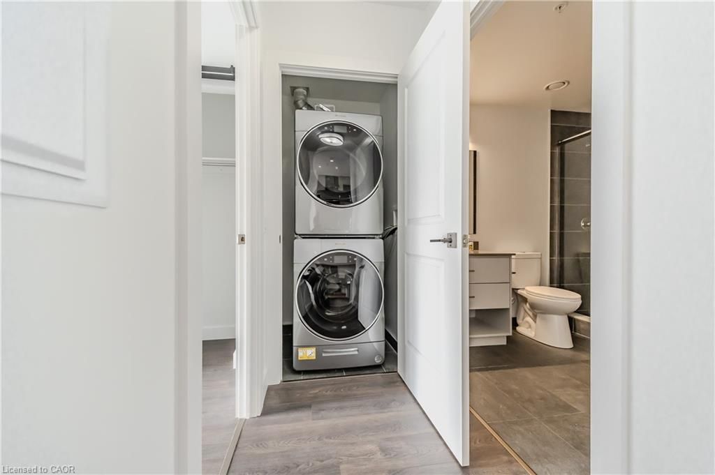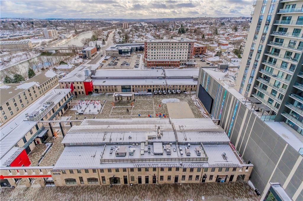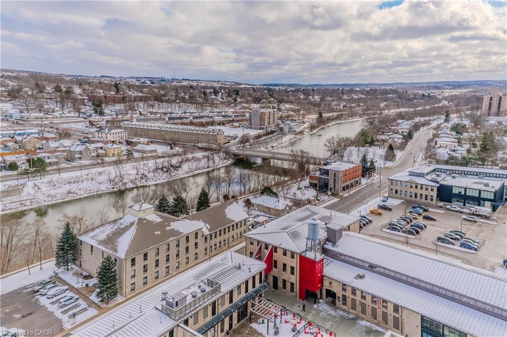 Located in the heart of the highly sought after Gaslight District, this stylish Dickson Model offers 715 sq. ft. of thoughtfully designed living space with premium upgrades throughout. The modern kitchen features an upgraded island and upgraded appliances, seamlessly flowing into the open concept living area - ideal for both everyday living and entertaining. This suite includes one spacious bedroom, one bathroom, and the convenience of an upgraded EV parking spot. Residents enjoy an exceptional collection of amenities, including guest suites, a library, fully equipped gym, yoga studio, and a stunning rooftop terrace with community BBQs. Additional highlights include beautifully appointed private event spaces, which are complete with kitchens, bathrooms, lounges, and fireplace - available for exclusive resident use. Overlooking the vibrant one-acre public square at the centre of the Gaslight District, you're steps from a dynamic mix of historic limestone architecture and modern cultural energy. Enjoy nearby dining at Foundry Tavern and The French, along with boutique shops, offices, public art installations, and large video screens hosting community events. A rare opportunity to own in one of Cambridge's most distinctive urban communities - where history, culture, and contemporary living come together.