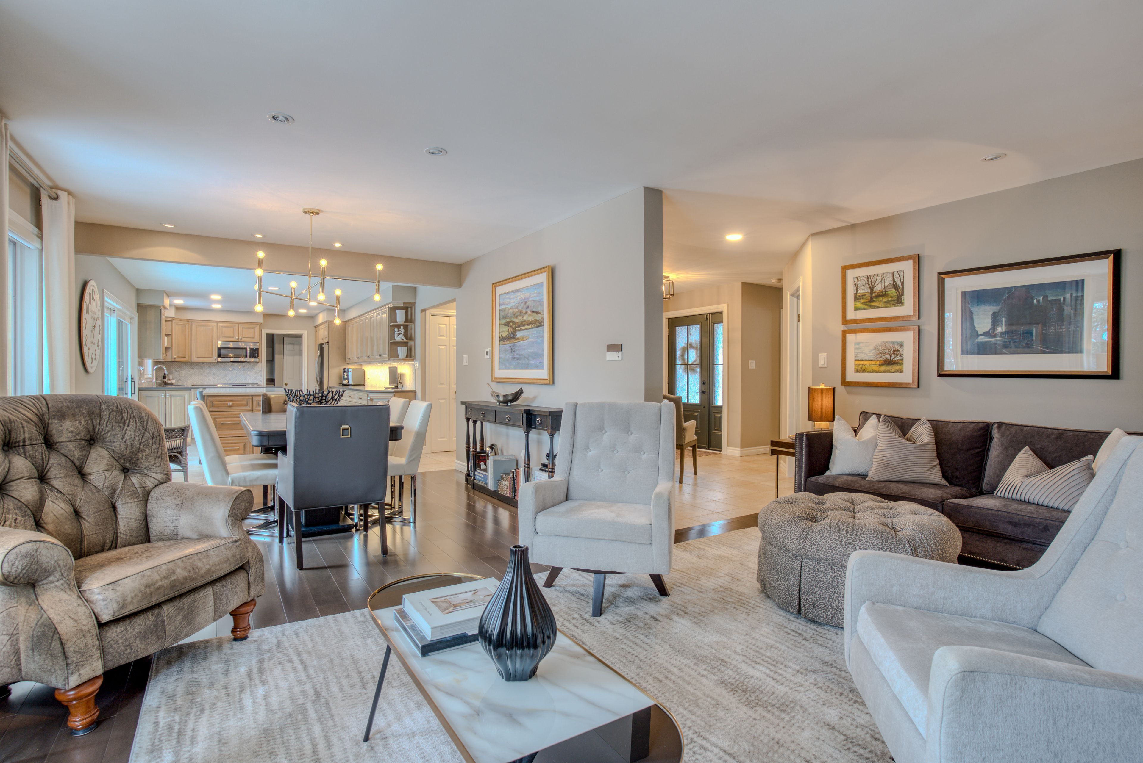 Have it all! Nestled in the exclusive Upper Beechwood enclave of just 16 homes, this exceptional fully finished bungalow offers outstanding quality and luxurious finishes throughout. Enjoy truly low-maintenance living with lawn care, landscaping, and snow removal all taken care of. The family room and dining area feature beautiful maple flooring and a cozy gas fireplace, flowing seamlessly into the bright, modern kitchen with high-end cabinetry, quartz countertops, and a large conversation-worthy island. New 9-foot sliders open to a spacious 14' x 24' deck-perfect for relaxing or entertaining. The main level offers flexible living with either two bedrooms or a generous primary suite plus a den, complete with a stunning 4-piece ensuite. Downstairs, the bright and spacious lower level includes a large rec room, an additional oversized bedroom, a gym or den, a 4-piece bathroom, and abundant storage. Ideally located close to local universities, the upcoming state-of-the-art hospital, scenic trails, and excellent shopping. Be proud to call 184 Roxton home.