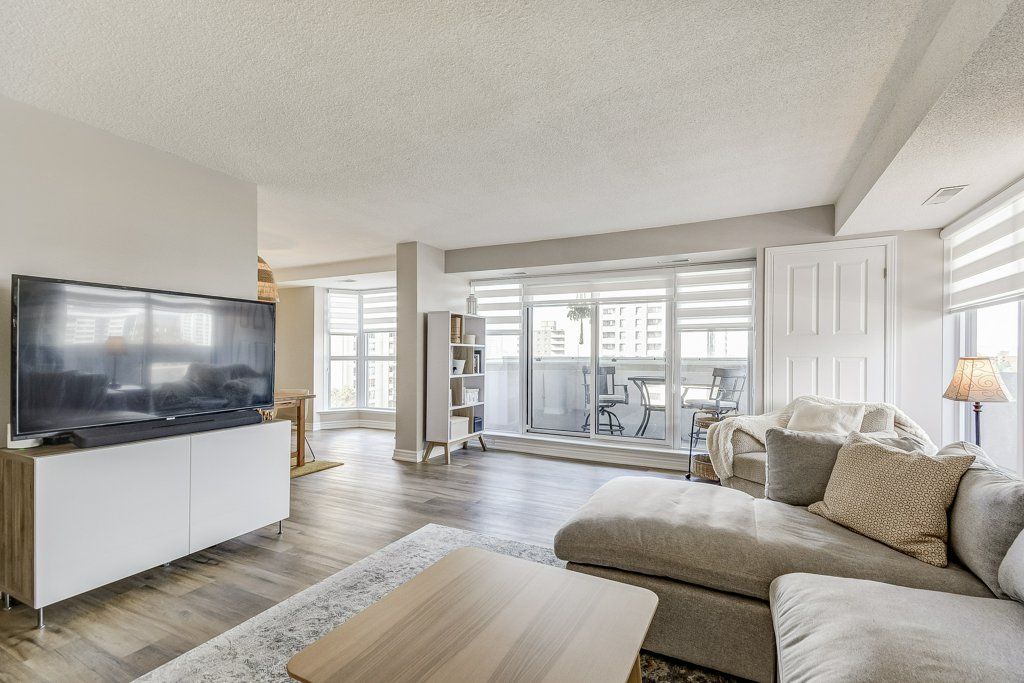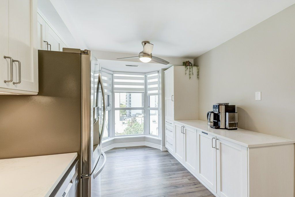 Luxury living meets modern style in this beautifully updated 2-bedroom, 2-bath suite at Bentley Place in the heart of the Durand neighbourhood. This expansive 1500+ sqft corner unit offers a bright, open-concept layout filled with natural light and city views through newly installed windows (2025). The modern white kitchen is a standout feature, showcasing gorgeous Statuario quartz countertops, stainless steel appliances and plenty of cabinetry for the aspiring chef. The spacious dining and living areas have amazing appeal whether it be for entertaining or relaxing. Two large enclosed balconies extend the living space - one off the living room (open and closed) and one private to the primary bedroom - offering an option to enjoy the skyline views year-round, rain or shine. The primary suite includes a spa-inspired 5-piece ensuite with a jetted tub and a generous walk-in closet with closet organizers. The second bedroom is equally spacious, also featuring a walk-in closet and custom storage solutions. Thoughtfully updated throughout with modern flooring, fresh paint and fashionable zebra blinds, every detail reflects care and contemporary taste. Residents of Bentley Place enjoy exclusive amenities including an exercise room, media room and underground parking. Highly walkable location! This wonderful spot will appeal to you if you enjoy walking, cycling or utilize public transit. Convenient proximity to McMaster Hospital/University. Surrounded by the arts, culture, recreation of downtown Hamilton. You will be within walking distance to James Street North, Hess Village, the Farmer's Market, First Ontario Concert Hall, the Art Gallery of Hamilton, Locke Street, parks, a wide variety of cuisine, fine dining, shopping, West Harbour GO and scenic escarpment trails. One of the building's larger units, this move-in-ready suite delivers the sophistication, space, and lifestyle you've been waiting for.