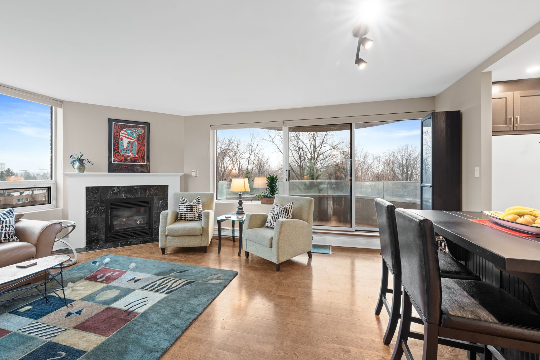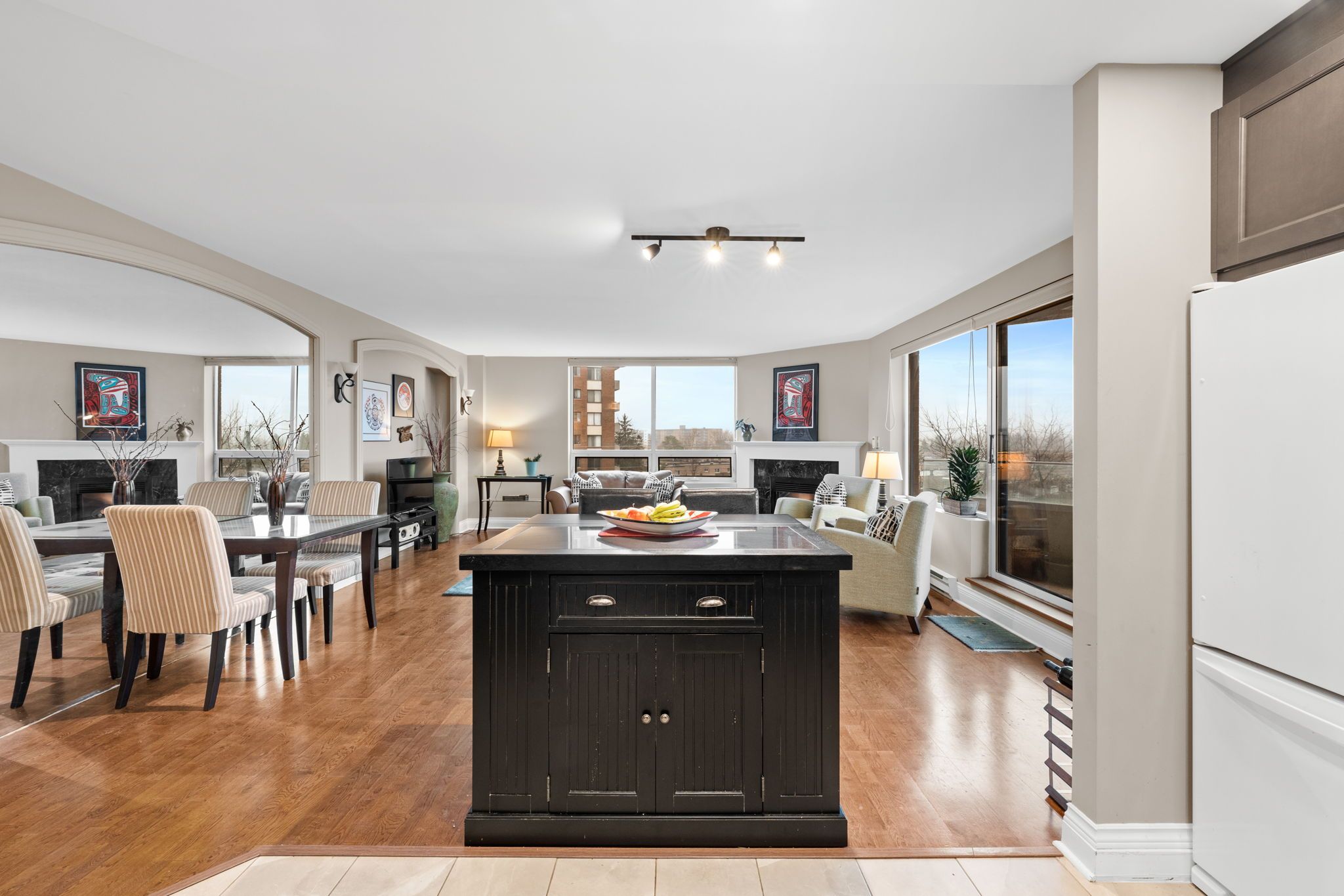 Welcome to 3105 Carling Avenue #504, a bright and spacious two-bedroom condo offering approximately 1,147 square feet in the sought-after Bayshore community. This well-maintained corner unit features an open-concept living and dining area, a functional kitchen with a large island, in-suite laundry, and a cozy gas fireplace. The generous primary bedroom includes a walk-in closet and a beautifully renovated ensuite bathroom completed in 2024, while the second bedroom is ideal for guests or a home office. Enjoy southwest exposure and a private balcony with views, plus the convenience of underground parking and an exclusive locker. Building amenities include an indoor pool, fitness centre, party room, car wash, and bike storage. Condo fees cover water, building insurance, and common elements. Located steps from transit, parks, the Ottawa River, and minutes to Bayshore Shopping Centre and Highway 417, this condo offers comfort, convenience, and an exceptional lifestyle.