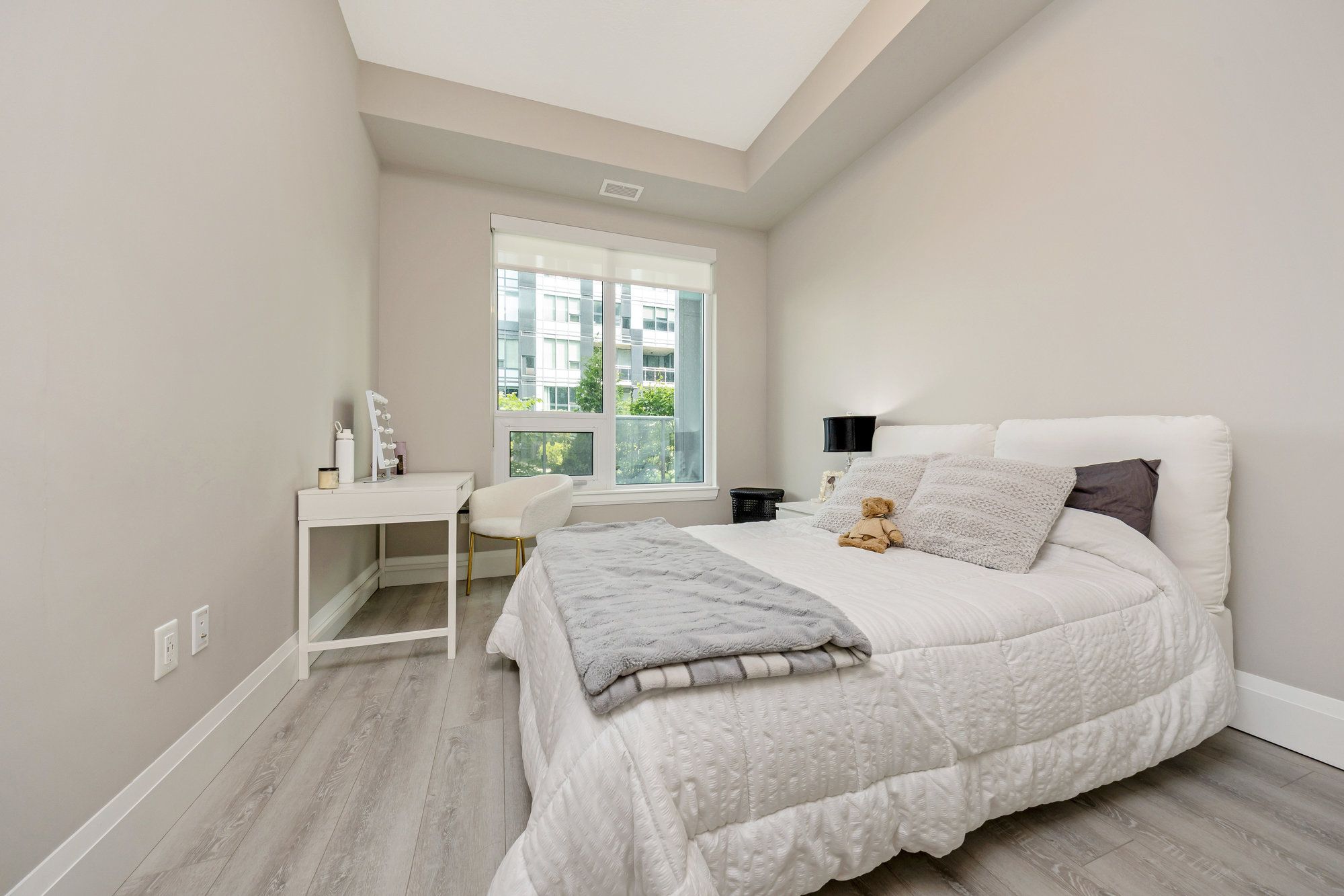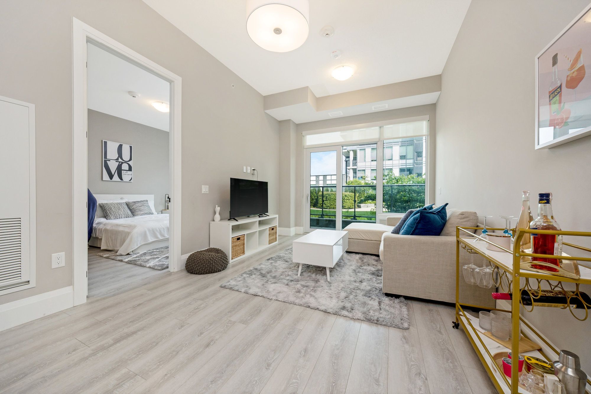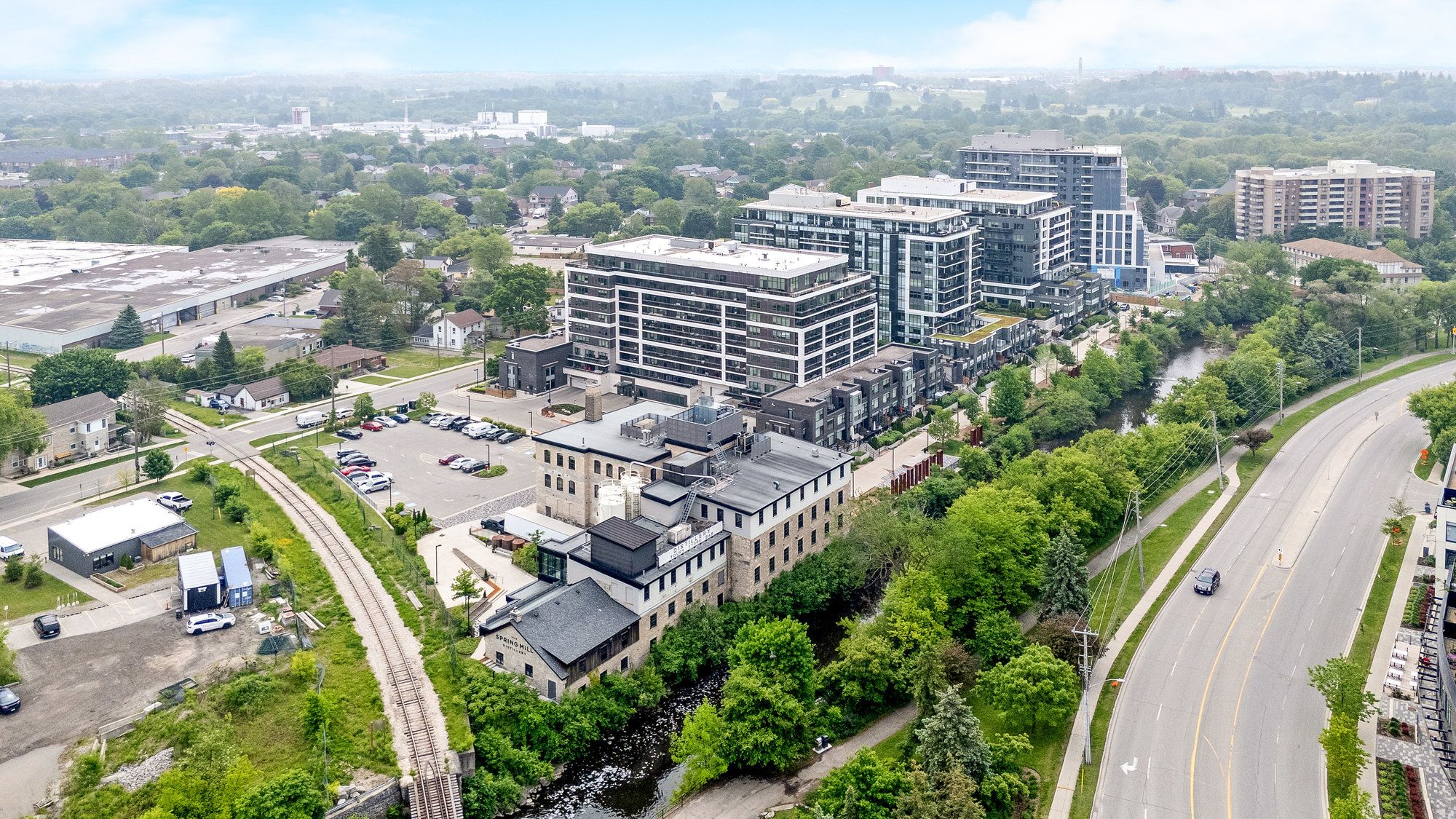 Stunning 2 bdrm & 2 bth, 1040sf condo w a massive balcony adding 195sf of outdoor pleasure. Located on the Mezzanine level (2nd floor) this unit has expansive views of the thoughtfully designed Metalworks-Copper Club ext common space. BBQ stations, outdoor lounge & dining areas, artificial grass games area for Bocce or other games & an outdoor gas fire pit, complete w Adirondack chairs! The expansive foyer graciously welcomes you into this breathtaking unit! A rarely offered super functional layout with soaring 9.5-10.5 foot ceilings, oversized int doors, custom blinds, upgd cabinetry, upgd fixtures, upgd baseboard and trim work, quartz countertops, textured oversized subway tile bksplsh, 12"X24"flr tiles& luxury vinyl laminate floors. Int was professionally designed to elevate your living experience! The Primary bedroom has both a generous sized walk-in & dbl closet which leads to the spa-inspired 3 pc ensuite. A sliding door leads you from the Primary to the apprx 30' long balcony where you can enjoy 3 season entertaining. The balcony is surrounded by shrubbery & plantings to provide you with ultimate privacy. The 2nd bdrm (orden) on the opposite side of the condo affords you or your guests privacy & is adjacent to the main 4 pc bath. This bdrm/den has an oversized window, custom blinds & dbl closet. The Copper Club has exec townhouse units that face the Speed River & this unit abuts these high-end, multileveled towns offering a view to the river, the downtown core and a more peaceful location within the complex! This unit has an owned parking space & an owned storage locker. There is bldg bike storage in the garage level. The amenities in the Metalworks Copper Club are second to none...Library, Games Area, the Speakeasy concealed beyond an unmarked door, WIFI Lounge, Fireside Lounge, Dog Wash, Guest Suite! All of this & only a short walk to parks, restaurants, downtown Guelph the Sleeman's Centre & more. A standout residence not to be missed!