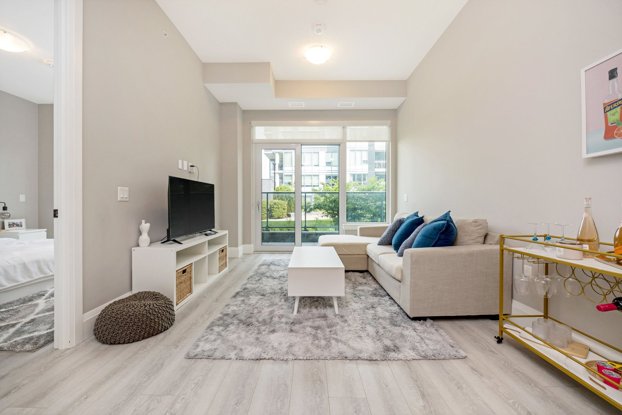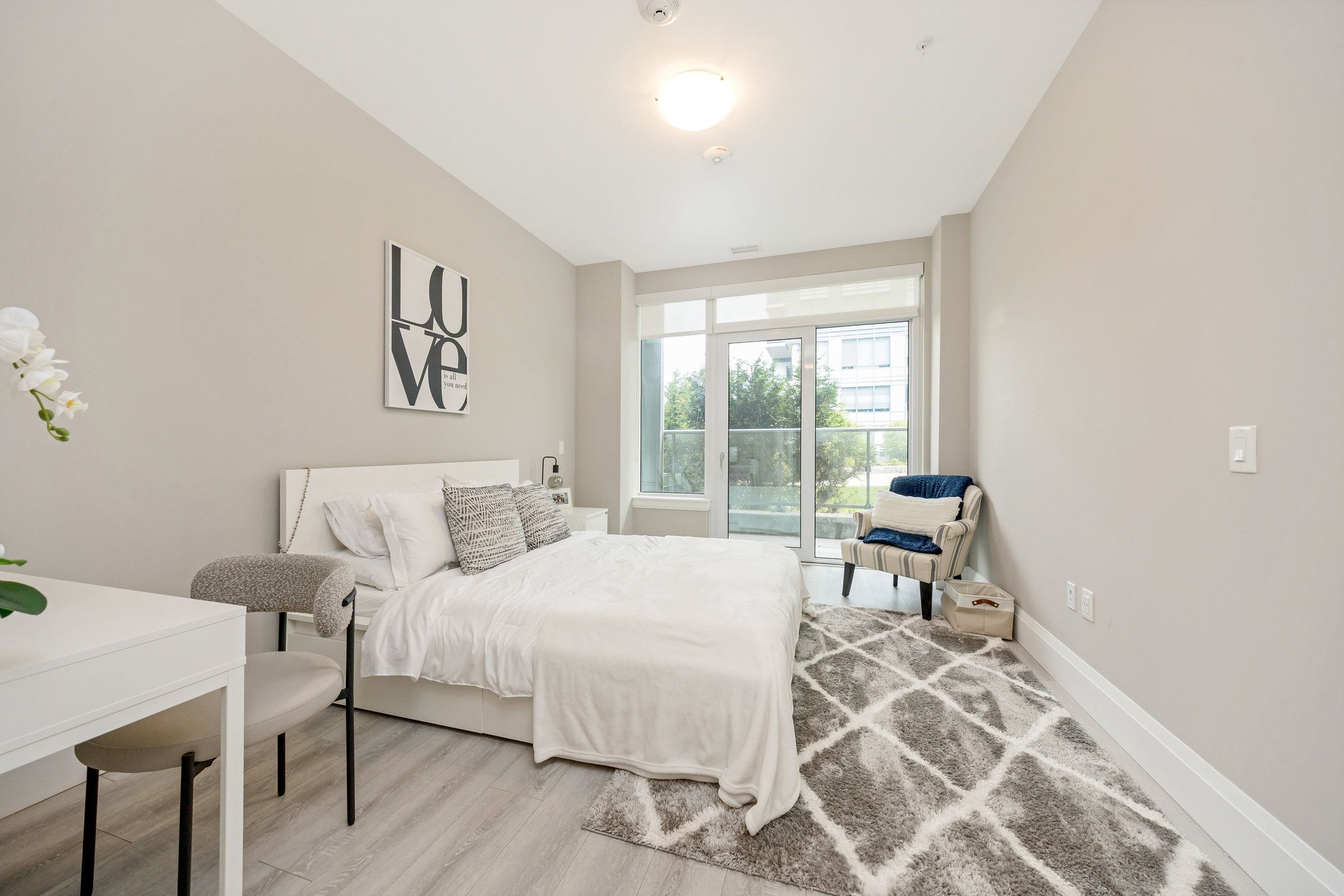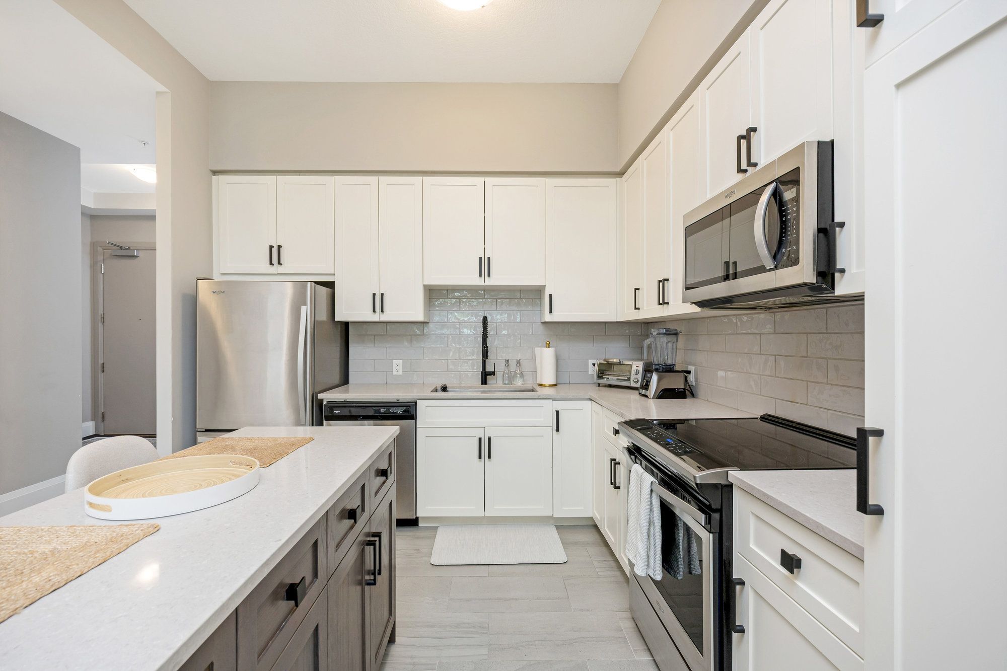 Stunning 2 bdrm & 2 bth, 1040sf condo w a massive balcony adding 195sf of outdoor pleasure. Located on the Mezzanine level (2nd floor) this unit has expansive views of the thoughtfully designed Metalworks-Copper Club ext common space. BBQ stations, outdoor lounge & dining areas, artificial grass games area for Bocce or other games & an outdoor gas fire pit, complete w Adirondack chairs! The expansive foyer graciously welcomes you into this breathtaking unit! A rarely offered super functional layout with soaring 9.5-10.5 foot ceilings, oversized int doors, custom blinds, upgd cabinetry, upgd fixtures, upgd baseboard and trim work, quartz countertops, textured oversized subway tile bksplsh, 12"X24"flr tiles& luxury vinyl laminate floors. Int was professionally designed to elevate your living experience! The Primary bedroom has both a generous sized walk-in & dbl closet which leads to the spa-inspired 3 pc ensuite. A sliding door leads you from the Primary to the apprx 30' long balcony where you can enjoy 3 season entertaining. The balcony is surrounded by shrubbery & plantings to provide you with ultimate privacy. The 2nd bdrm (orden) on the opposite side of the condo affords you or your guests privacy & is adjacent to the main 4 pc bath. This bdrm/den has an oversized window, custom blinds & dbl closet. The Copper Club has exec townhouse units that face the Speed River & this unit abuts these high-end, multileveled towns offering a view to the river, the downtown core and a more peaceful location within the complex! This unit has an owned parking space & an owned storage locker. There is bldg bike storage in the garage level. The amenities in the Metalworks Copper Club are second to none...Library, Games Area, the Speakeasy concealed beyond an unmarked door, WIFI Lounge, Fireside Lounge, Dog Wash, Guest Suite! All of this & only a short walk to parks, restaurants, downtown Guelph the Sleeman's Centre & more. A standout residence not to be missed!