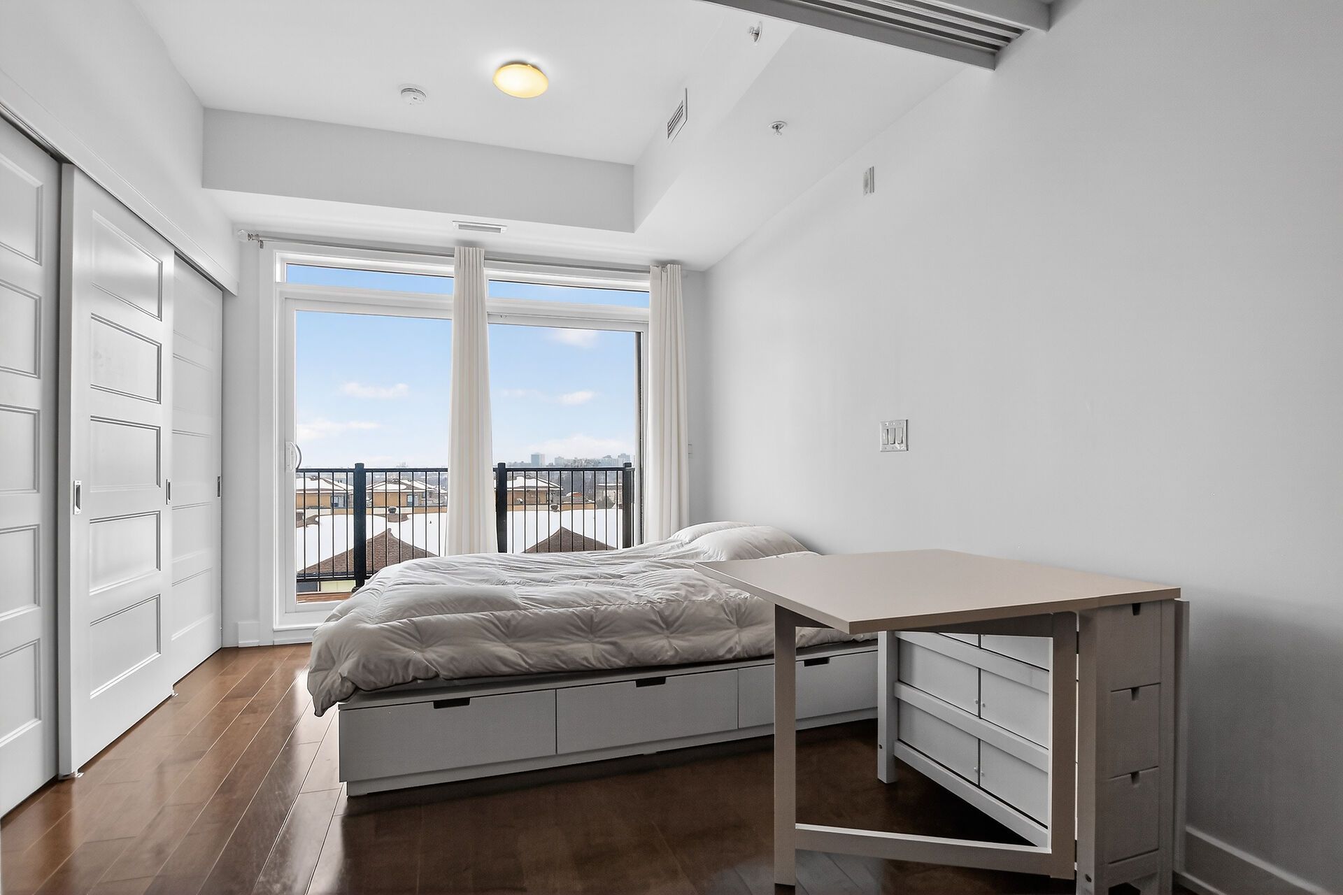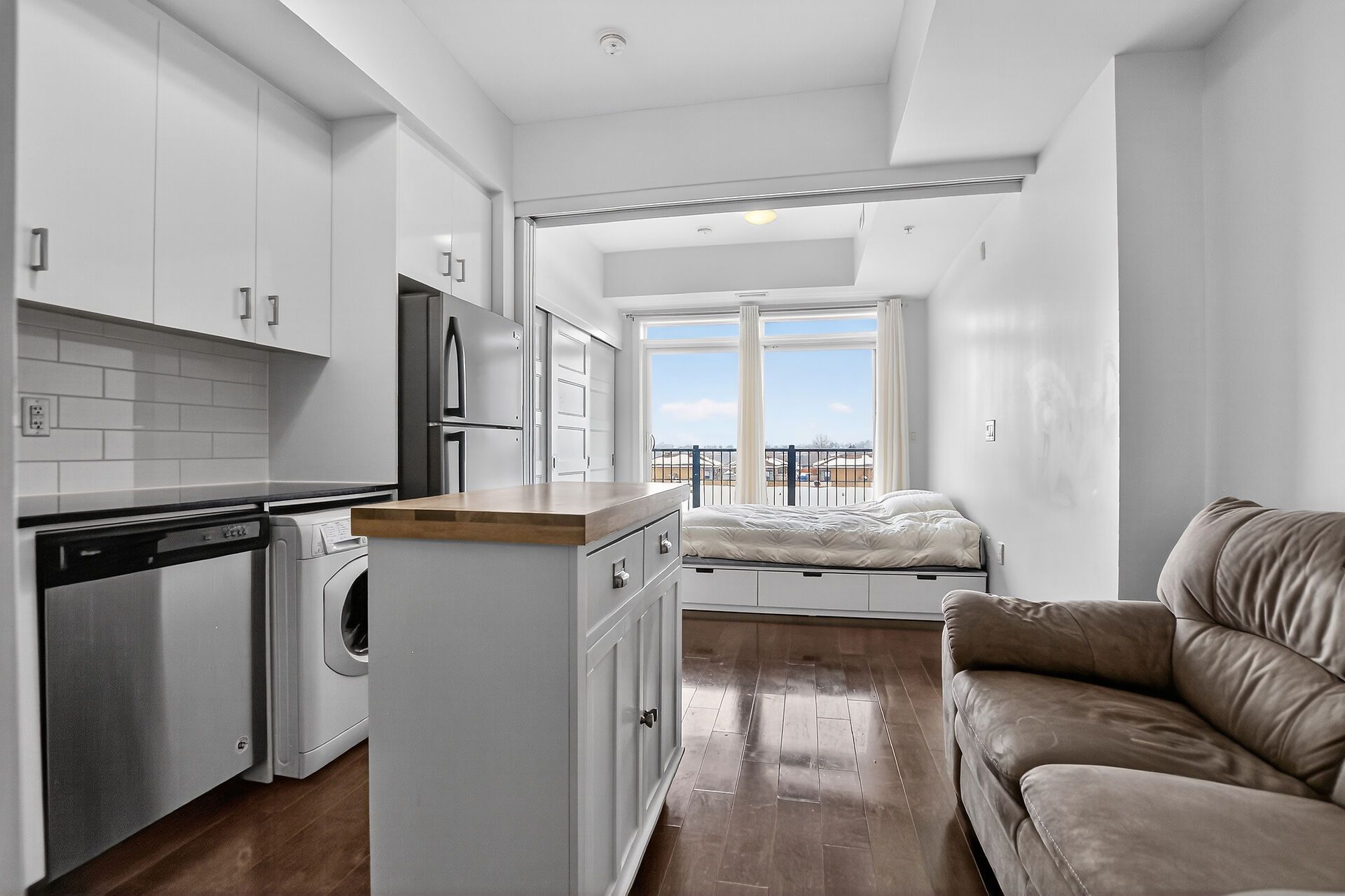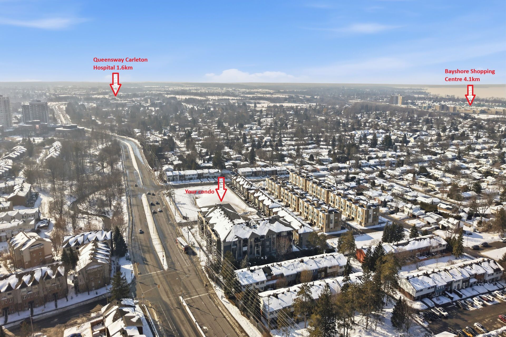 Welcome to this move-in ready condo in the centrally located and amenities-filled Redwood Park & Qualicum area. Located on the top floor of this low-rise 4 level building, this bright & modern condo features hardwood floors, high ceilings and views of the city & the Gatineau Hills. The open concept living space offers a kitchen with Granite countertops, undermount sink, plenty of cabinetry, stainless steel appliances and flexible side living/dining area. Sliding panels separate the living space from the bedroom for on-demand privacy. This condo also hosts a stylish full bathroom, North facing balcony and convenient in-suite laundry. Your underground parking space means you never have to shovel snow off your car and you have easy access to your indoor storage locker via the garage. This secure & quiet pet-friendly building is located close to the Queensway Carleton Hospital, Algonquin College, multiple parks, walking/biking trails, public transit, Bayshore Mall, IKEA & College Square. Your guests will find visitor parking at the front of the building and can use the elevators to come visit you on the top floor. Bonus: condo can be sold fully furnished, just bring your suitcase and move in!