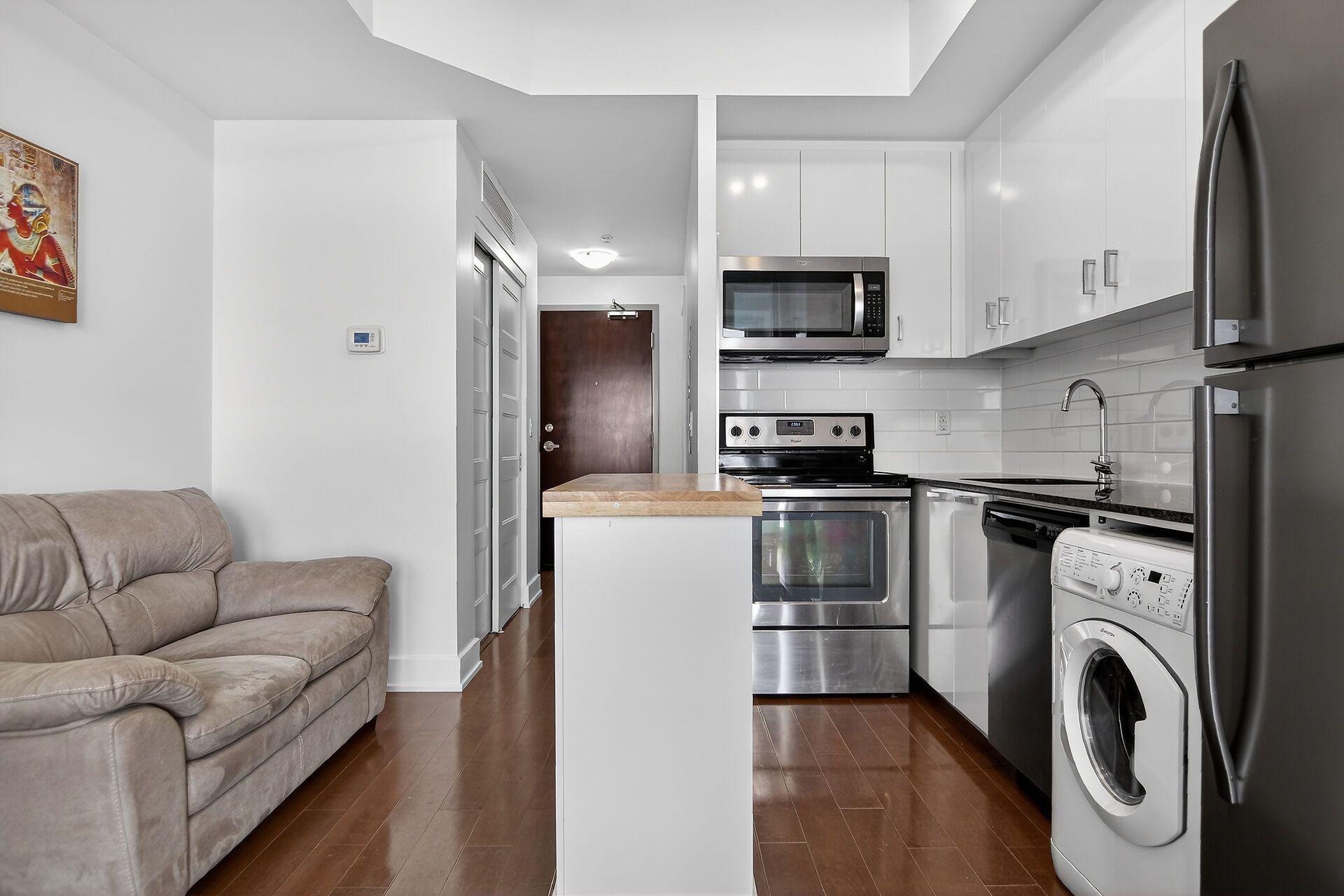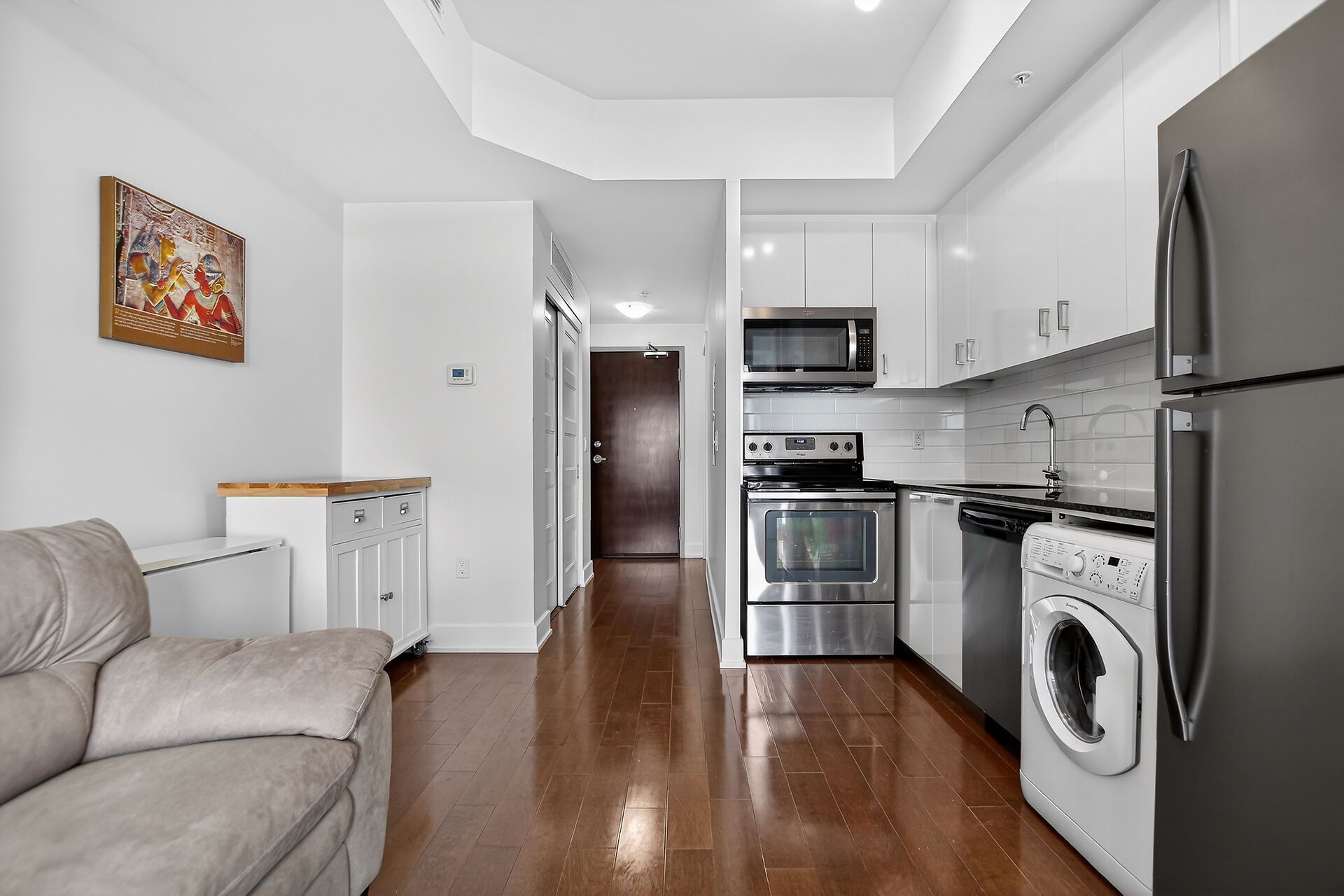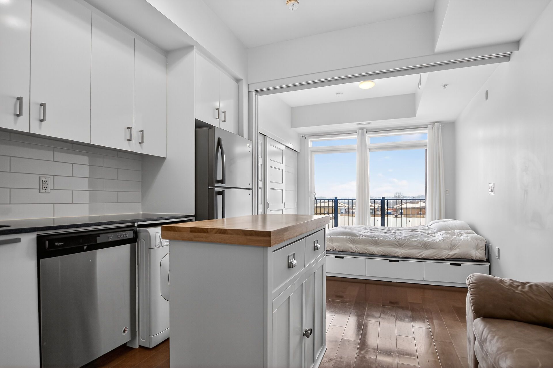 Welcome to this move-in ready condo in the centrally located and amenities-filled Redwood Park & Qualicum area. Located on the top floor of this low-rise 4 level building, this bright & modern condo features hardwood floors, high ceilings and views of the city & the Gatineau Hills. The open concept living space offers a kitchen with Granite countertops, undermount sink, plenty of cabinetry, stainless steel appliances and flexible side living/dining area. Sliding panels separate the living space from the bedroom for on-demand privacy. This condo also hosts a stylish full bathroom, North facing balcony and convenient in-suite laundry. Your underground parking space means you never have to shovel snow off your car and you have easy access to your indoor storage locker via the garage. This secure & quiet pet-friendly building is located close to the Queensway Carleton Hospital, Algonquin College, multiple parks, walking/biking trails, public transit, Bayshore Mall, IKEA & College Square. Your guests will find visitor parking at the front of the building and can use the elevators to come visit you on the top floor. Bonus: condo can be sold fully furnished, just bring your suitcase and move in!
