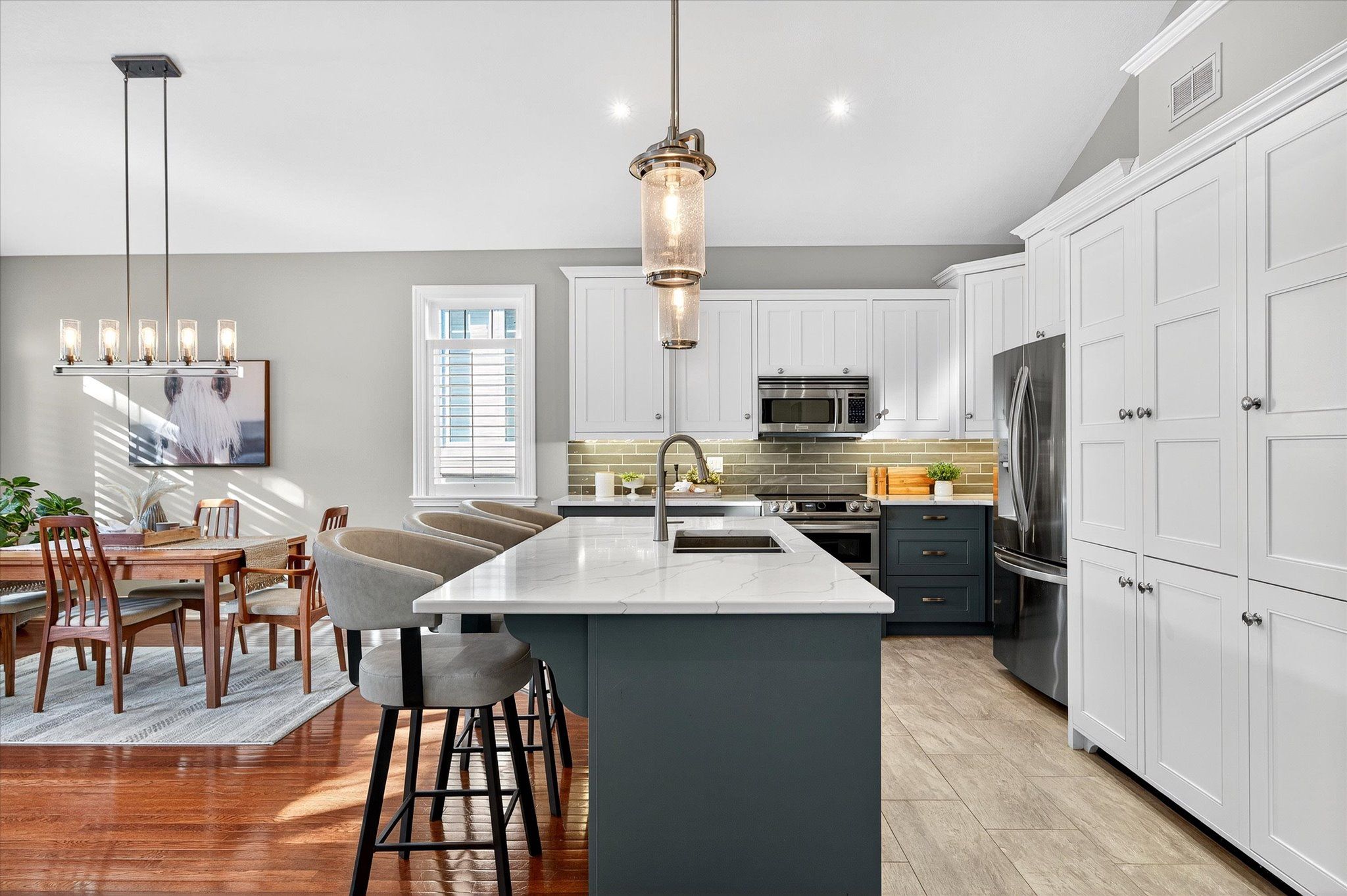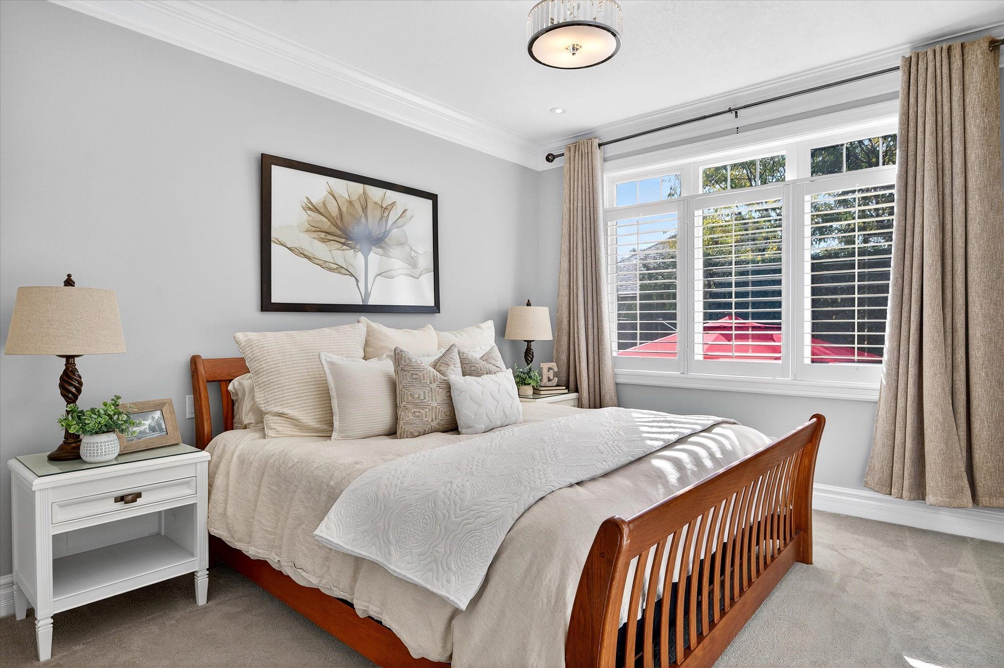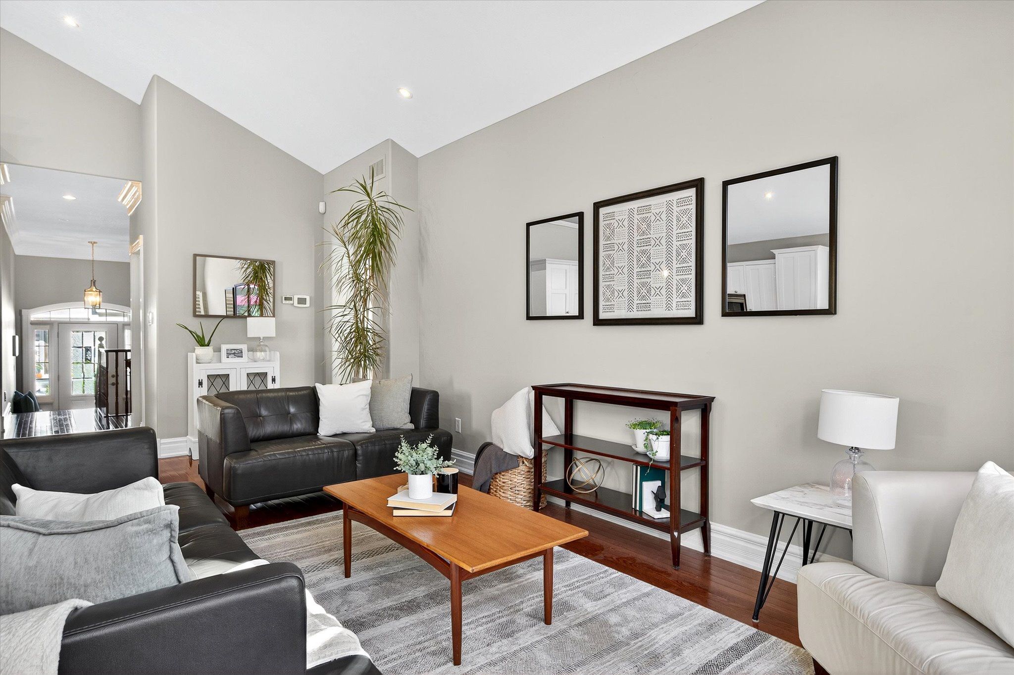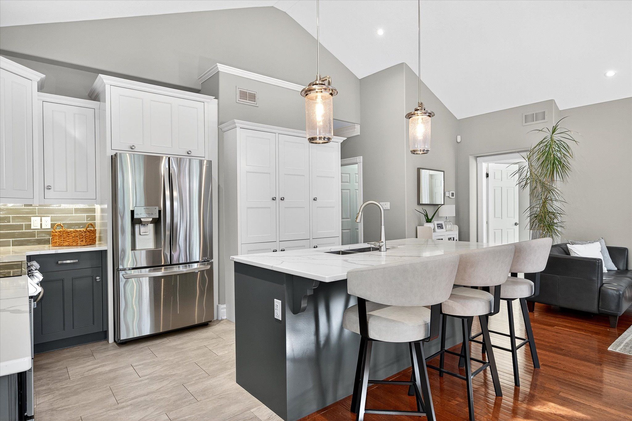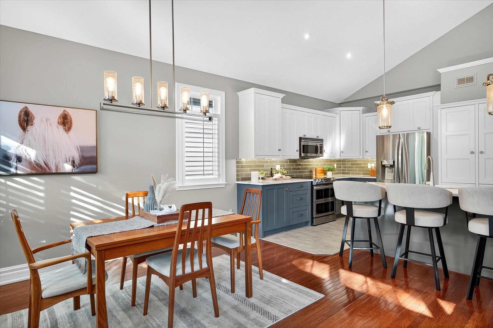 This beautifully appointed 2+2-bedroom, 3 bath raised bungalow exudes elegance. The main living area features hard surfaces throughout with a bright, open concept living space, with vaulted ceiling, that combines the living room, dining room and kitchen with natural separations provided by the three-sided gas fireplace and serviced kitchen island with room for seating. Spacious kitchen with SS appliances including double oven and pantry nearby. The living room exits onto the back patio for convenient hosting or outdoor cooking in a very private backyard. The laundry is located on the main floor, and all four bedrooms are generously sized with a primary that features a 4-piece ensuite and walk in closet. The lower level has ample storage room, a third 4-piece bathroom, a second gas fireplace in the rec room and nine-foot ceilings providing lots of air space. Extra bonus is an installed Generlink with generator/cable. Pre-inspected for your convenience. Don't miss your chance to make this gem your own!