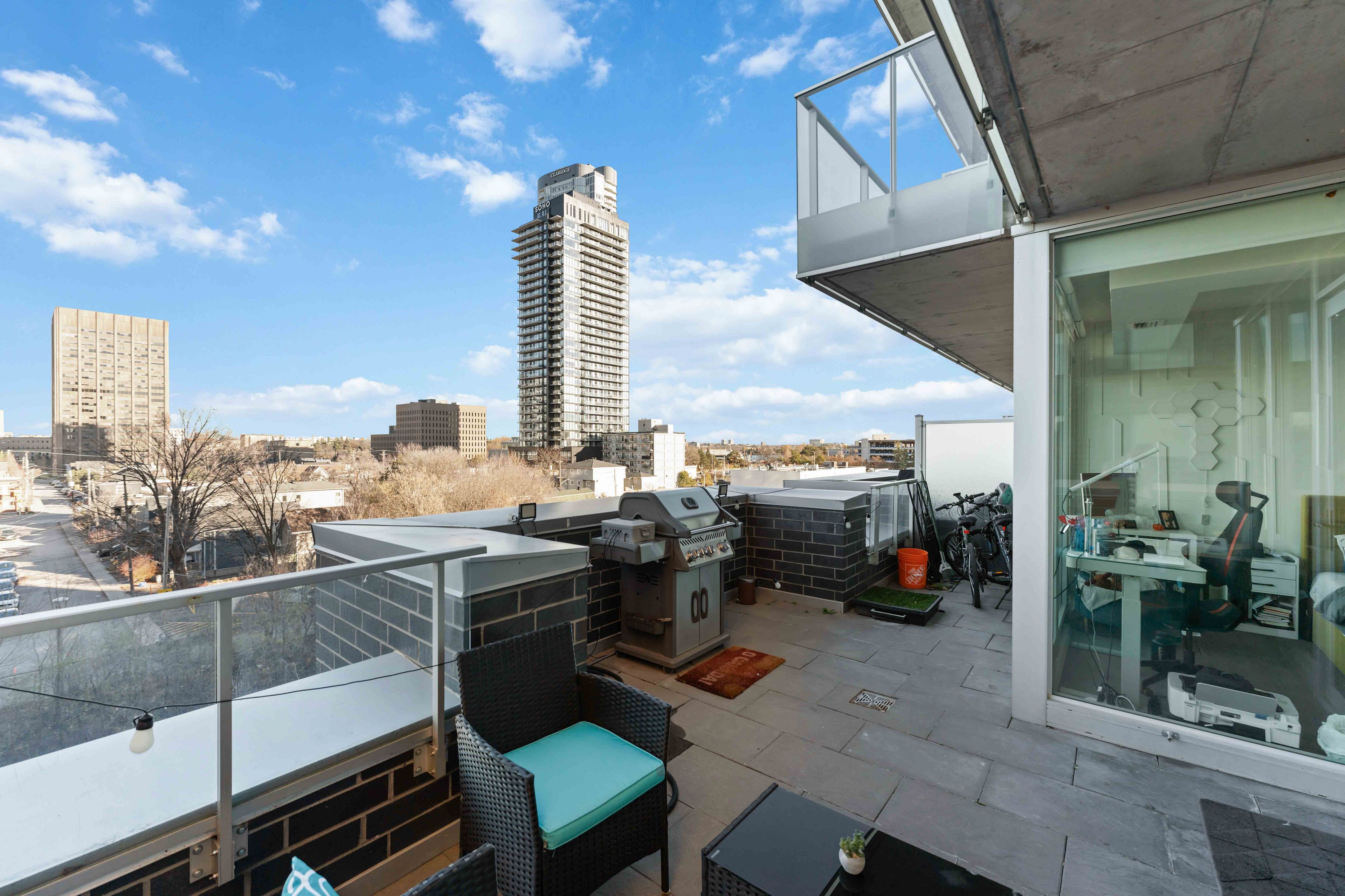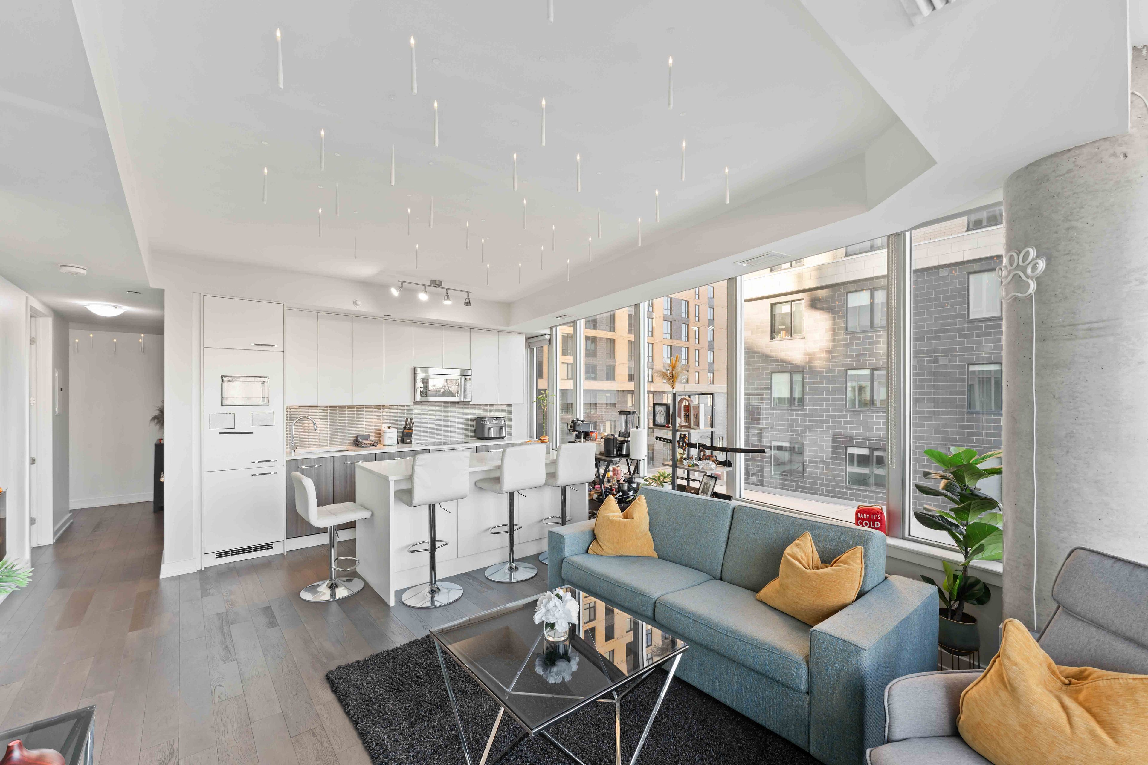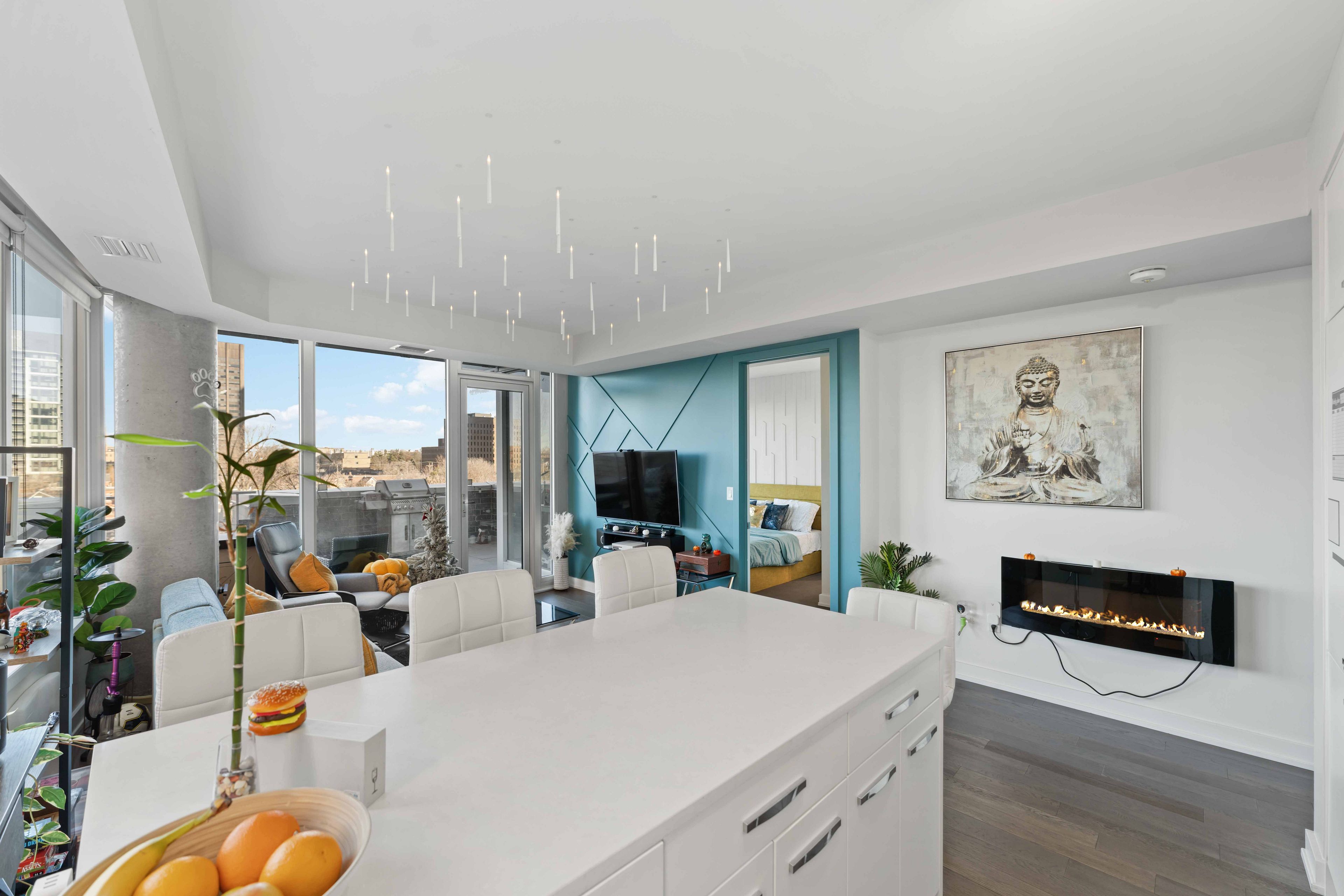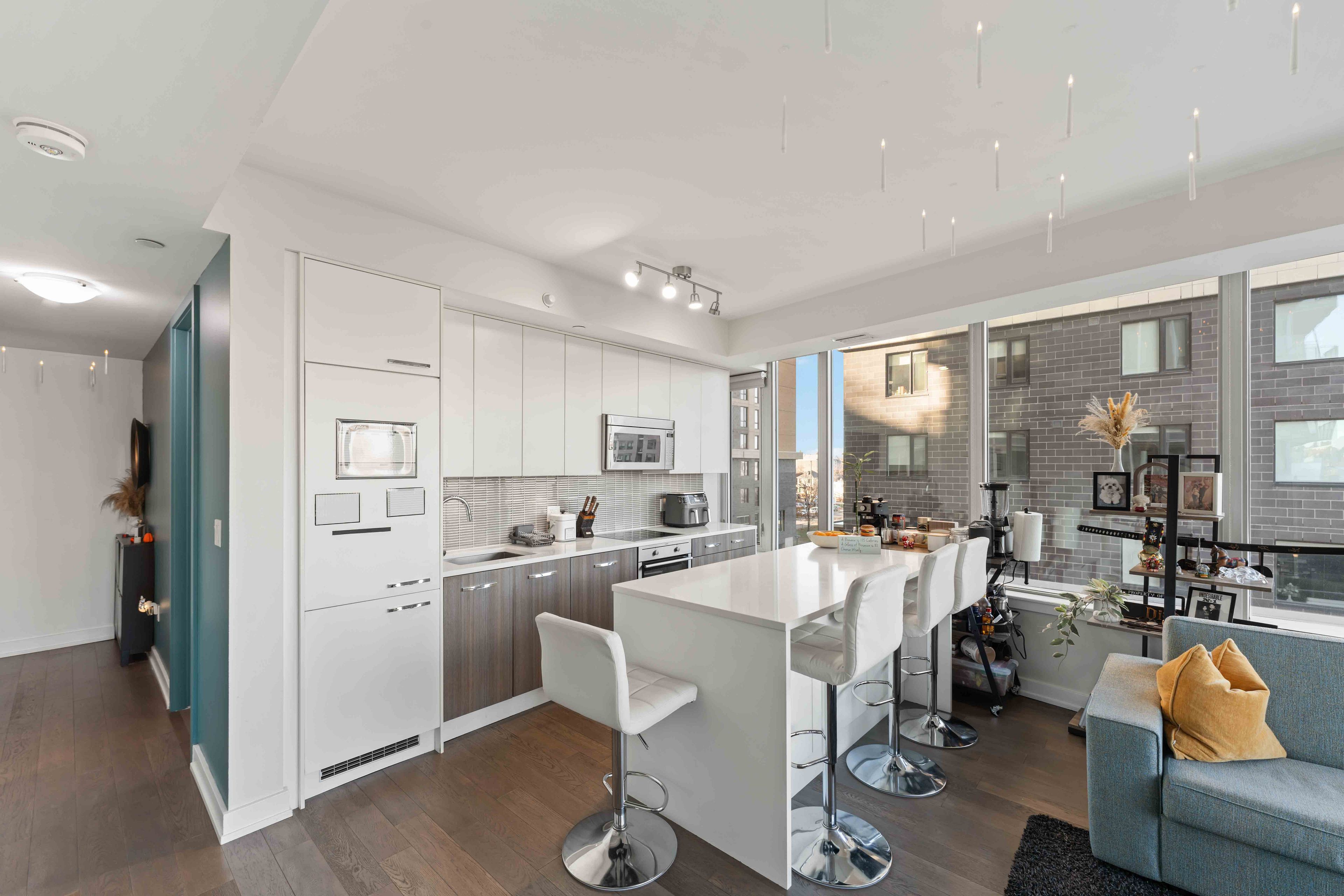 Perfectly positioned for seamless indoor-outdoor living, this exceptional residence showcases breathtaking panoramic views of Dows Lake, Preston Street, and the Ottawa skyline. Located just steps away, literally one minute, from the Dows Lake LRT Station, this home offers unmatched convenience in the heart of the city, moments from the future Civic Hospital. Enjoy a true walkable lifestyle with everyday essentials and local favourites right outside your door, including a 24/7 convenience store, coffee shop, pharmacy, women's hair salon, and an upcoming dental clinic. You are also just a short stroll to Starbucks, scenic biking trails, and the vibrant Dows Lake waterfront and courts. Inside, the suite is meticulously maintained and thoughtfully upgraded. Expansive wall-to-wall windows flood the space with natural light, complemented by custom blinds and premium finishes throughout. The designer kitchen features quartz countertops, Euro-style appliances, and clean modern lines, flowing effortlessly into the living space where a sleek electric fireplace adds warmth and ambiance. The spacious primary bedroom offers direct access to a rare and stunning private terrace, creating a true indoor-outdoor retreat. It also includes a generous walk-in closet and a spa-inspired ensuite with an oversized glass shower. A second full bathroom, equally well-appointed with a walk-in shower, is ideal for guests or family. Additional highlights include upgraded flooring, pot lighting, and full in-suite laundry. Step outside your unit to enjoy convenient access to the building's BBQ terrace and hot tub, located just steps away on the same floor. Residents also enjoy access to premium building amenities, including a swimming pool, theatre room, and party room, all within a secure, concierge-serviced building with a full fitness centre. This suite also includes a parking space with EV charging, ideally situated near the secure entrance, completing a truly elevated urban living experience.