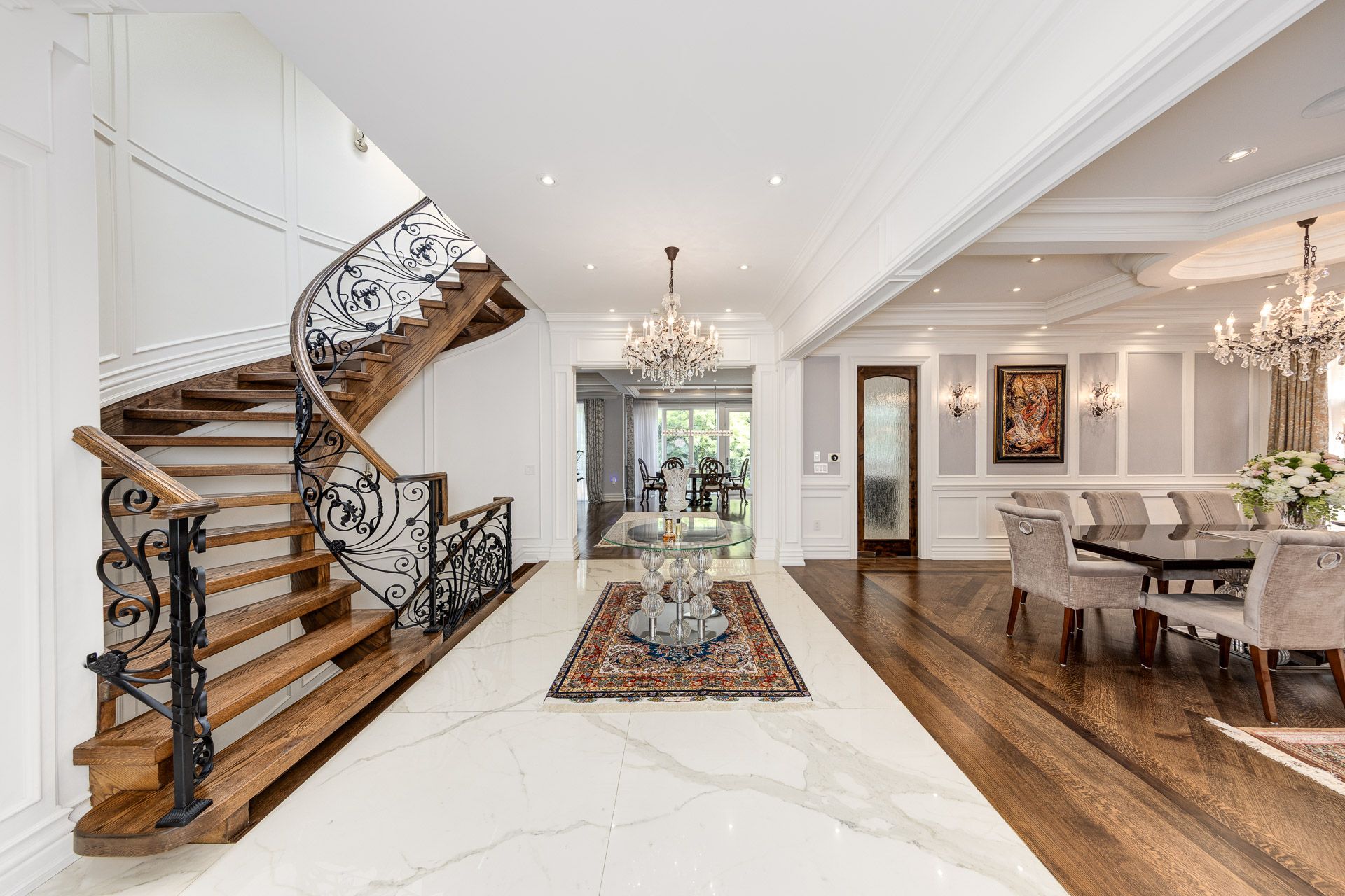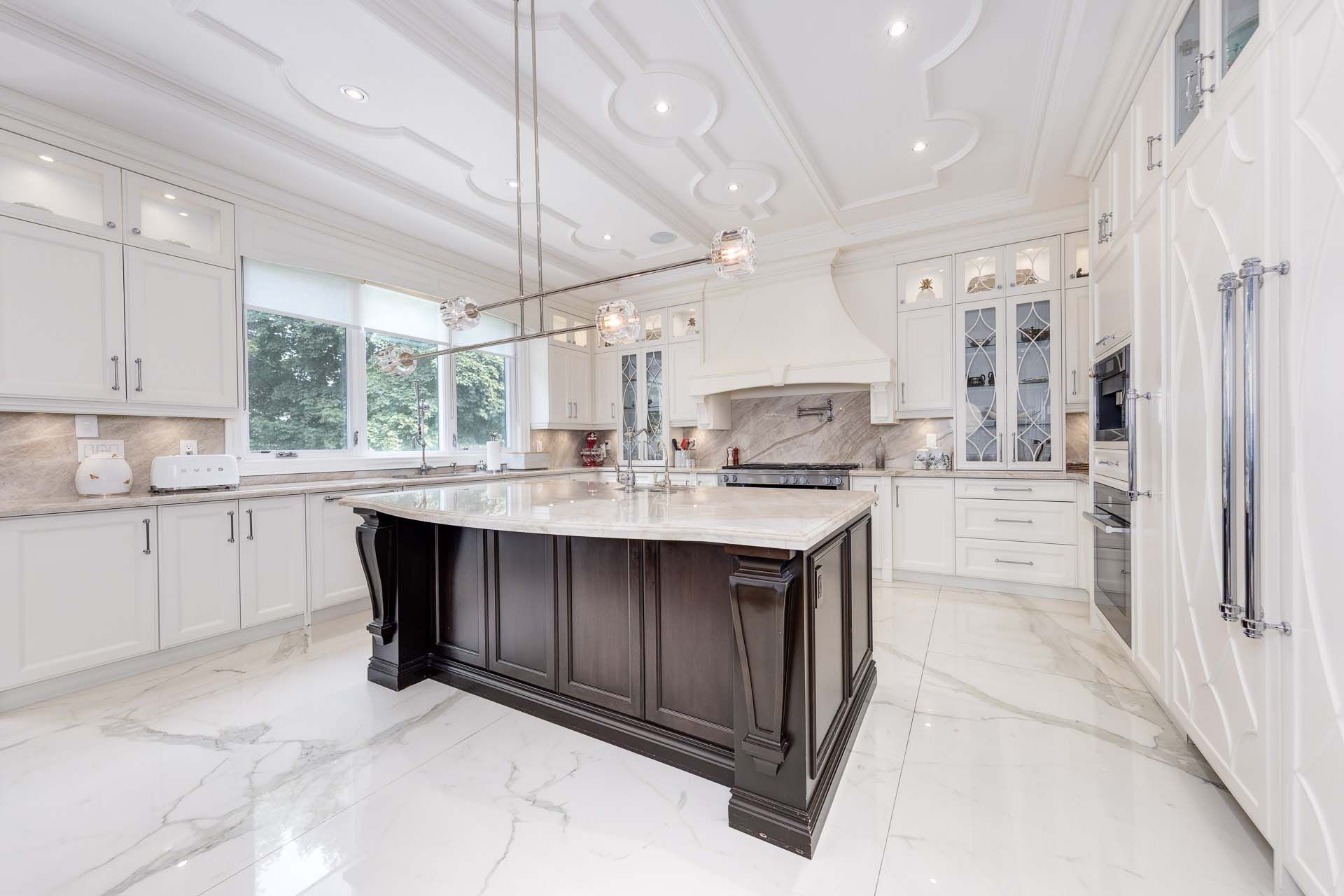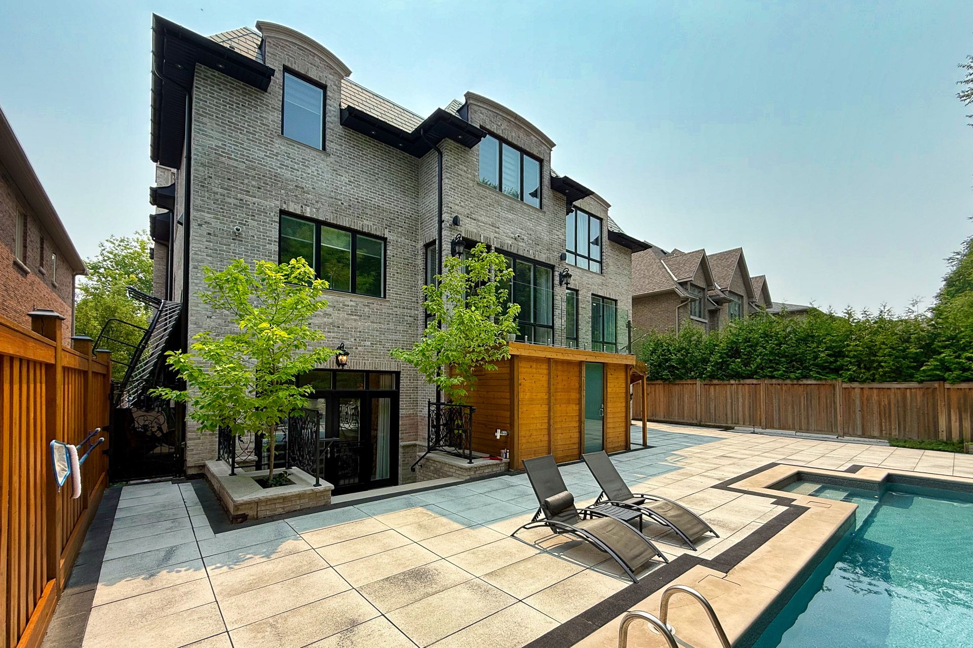 Exquisite & Luxurious Custom Residence with Timeless Craftsmanship. This extraordinary custom-built residence showcases an impressive fusion of refined design, timeless elegance, and contemporary luxury. Spanning approximately 5,500 sq.ft of impeccably finished living space, the home is a true architectural gem, offering both sophisticated curb appeal and masterful interior design. Its stunning transitional-style façade is in rich natural limestone and crowned with a premium Inspire roof, ensuring lasting beauty and durability. Step through the grand entryway into a spacious foyer adorned with oversized ceramic tiles that set the tone for the exceptional craftsmanship found throughout. The interior boasts exquisite millwork, soaring ceilings ,and a thoughtfully designed open-concept layout that flows seamlessly from one luxurious space to the next. Every detail has been carefully curated to create a harmonious blend of form and function. At the heart of the home lies the elaborate gourmet kitchen, designed to impress. Featuring an expansive centre island, custom cabinetry, and top-of-the-line Miele appliances ,its a culinary dream for both casual family meals and elegant entertaining. The adjoining living and dining areas are perfectly proportioned for gatherings, enhanced by refined finishes and an abundance of natural light. Adding to the homes appeal are premium lifestyle features such as a private elevator, a wine cellar, a wet bar, and a separate nanny or in-law suite each thoughtfully integrated to enhance everyday comfort and versatility. Step outside to your own private oasis, where resort-style living awaits. A pristine rectangular pool, illuminated with LED lighting and highlighted by a tranquil waterfall feature, is the centerpiece of the exquisitely landscaped backyard. Lush greenery, manicured gardens, and a heated driveway contribute to year-round luxury and convenience, reflecting a substantial investment in outdoor living and design.