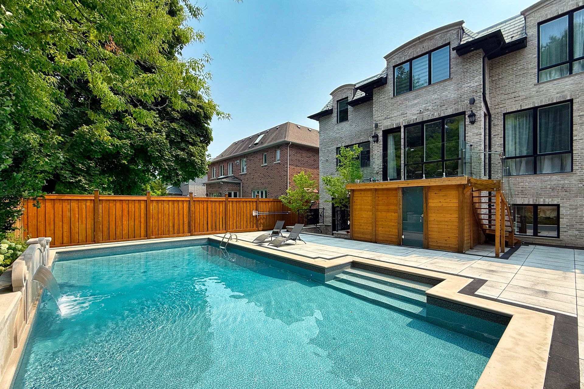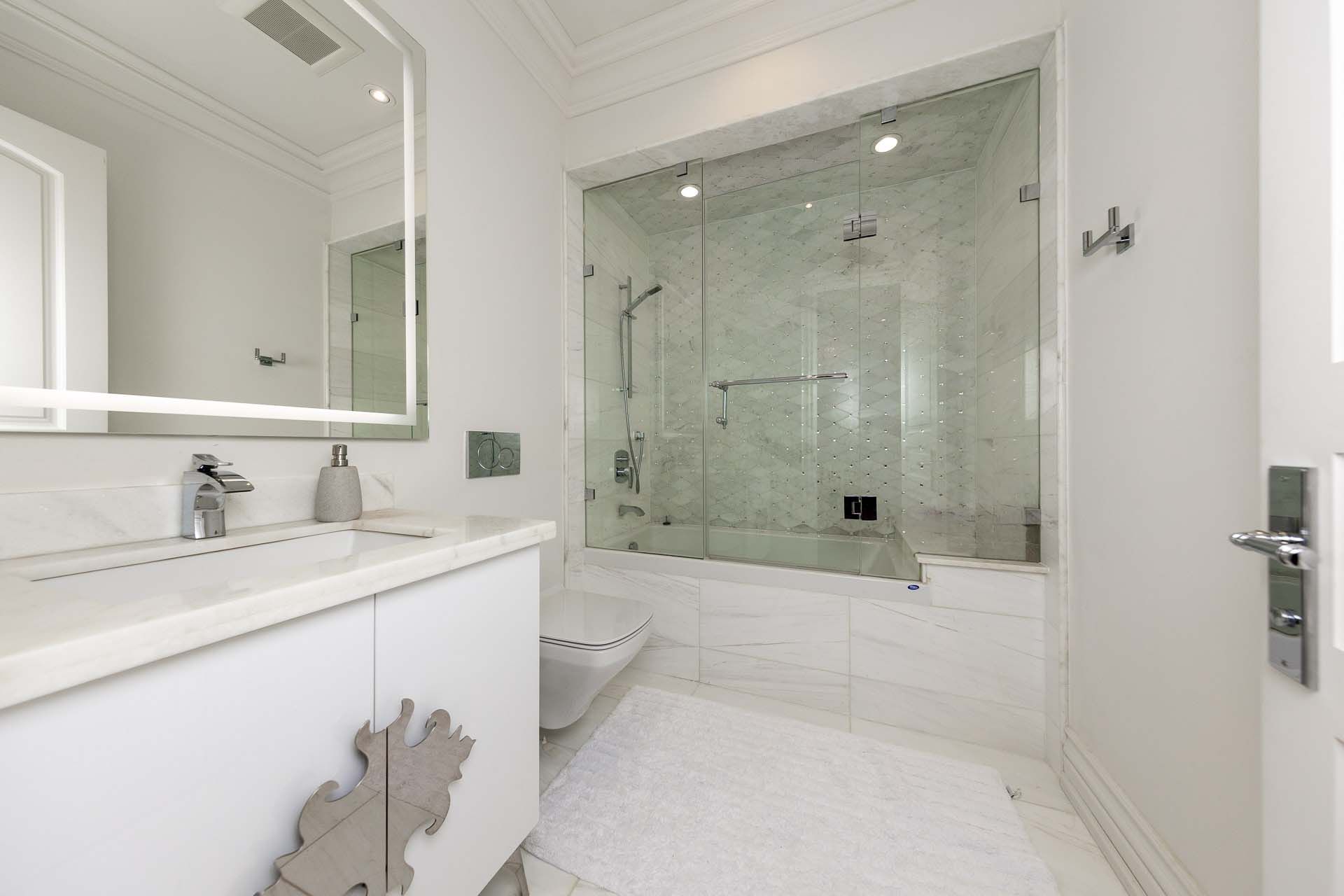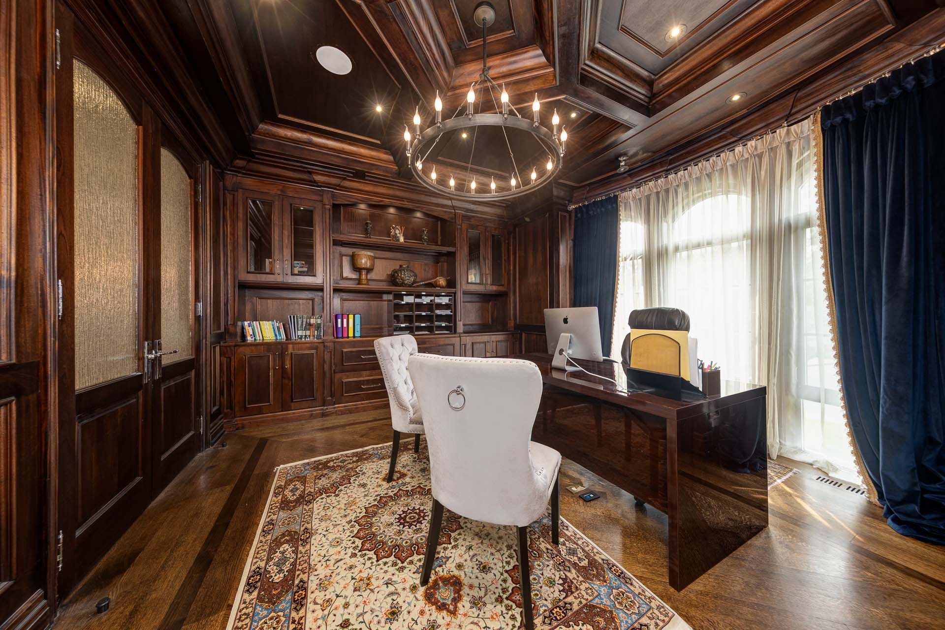 Exquisite & Luxurious Custom Residence with Timeless Craftsmanship. This extraordinary custom-built residence showcases an impressive fusion of refined design, timeless elegance, and contemporary luxury. Spanning approximately 5,500 sq.ft of impeccably finished living space, the home is a true architectural gem, offering both sophisticated curb appeal and masterful interior design. Its stunning transitional-style façade is in rich natural limestone and crowned with a premium Inspire roof, ensuring lasting beauty and durability. Step through the grand entryway into a spacious foyer adorned with oversized ceramic tiles that set the tone for the exceptional craftsmanship found throughout. The interior boasts exquisite millwork, soaring ceilings ,and a thoughtfully designed open-concept layout that flows seamlessly from one luxurious space to the next. Every detail has been carefully curated to create a harmonious blend of form and function. At the heart of the home lies the elaborate gourmet kitchen, designed to impress. Featuring an expansive centre island, custom cabinetry, and top-of-the-line Miele appliances ,its a culinary dream for both casual family meals and elegant entertaining. The adjoining living and dining areas are perfectly proportioned for gatherings, enhanced by refined finishes and an abundance of natural light. Adding to the homes appeal are premium lifestyle features such as a private elevator, a wine cellar, a wet bar, and a separate nanny or in-law suite each thoughtfully integrated to enhance everyday comfort and versatility. Step outside to your own private oasis, where resort-style living awaits. A pristine rectangular pool, illuminated with LED lighting and highlighted by a tranquil waterfall feature, is the centerpiece of the exquisitely landscaped backyard. Lush greenery, manicured gardens, and a heated driveway contribute to year-round luxury and convenience, reflecting a substantial investment in outdoor living and design.