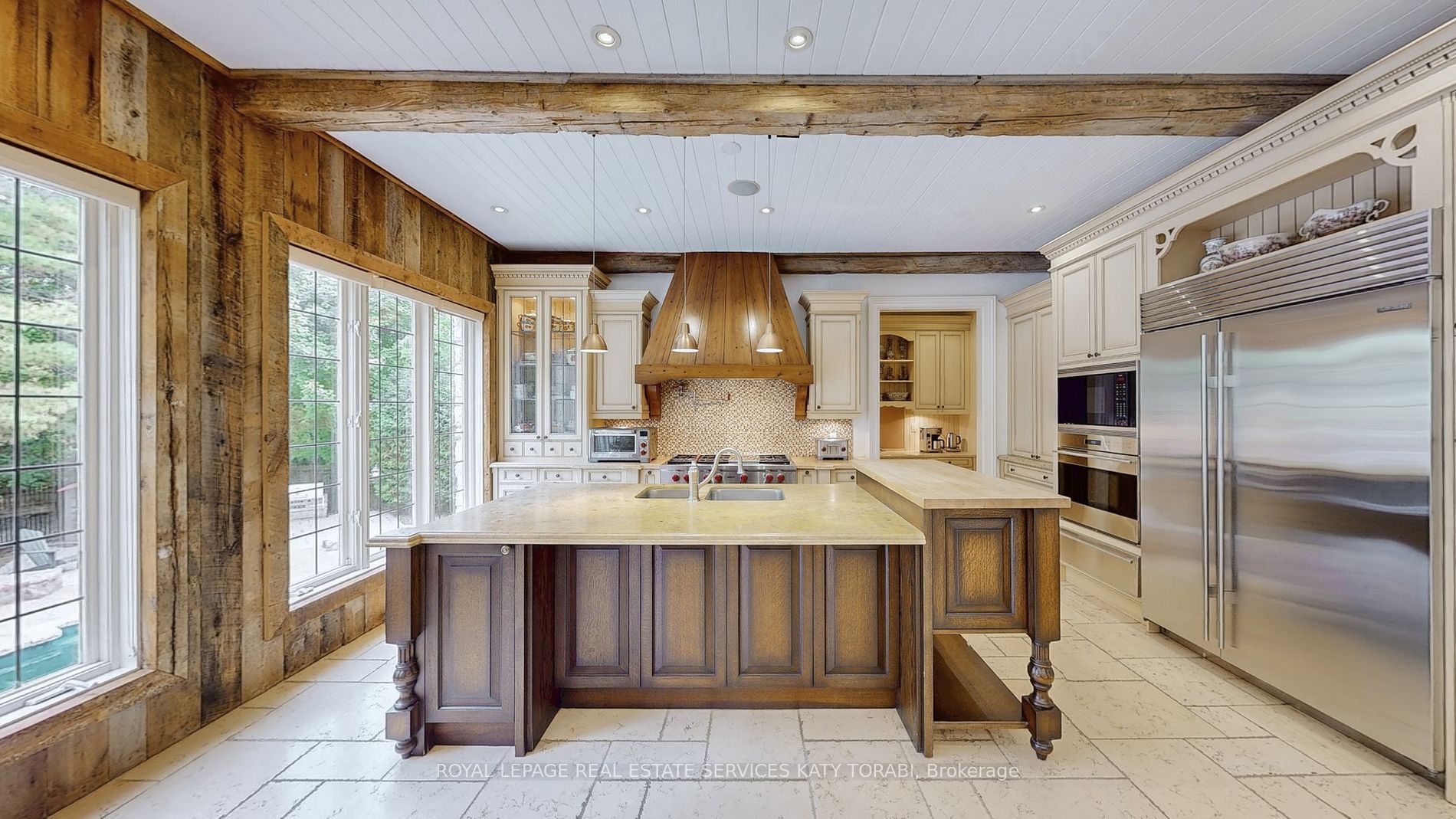 Welcome To 14 Saint Margarets Drive, A European-Inspired Limestone And Tyndall Stone Masterpiece Nestled On One Of The Most Picturesque And Prestigious Streets In Hoggs Hollow. This Estate Showcases A Rare Tyndall Stone Exterior Prized For Its Distinctive Rich Patterns Combining Architectural Prestige With Natural Elegance. Its Unique Textures Lend An Air Of Exclusivity And Sophistication Rarely Found In A Private Residence, Complemented By A Cedar Shake Roof. Majestically Sited On A Premium 90 By 150 Ft Lot Backing Onto The River, This Residence Offers Over 9,000 Sq.Ft. Of Luxurious Living Space Where Timeless Craftsmanship Meets Modern Comfort. A Grand Foyer With Stained Glass And Domed Ceiling Introduces Interiors Of Remarkable Scale And Craftsmanship. The Vaulted Great Room, With Vintage Beams, Soaring Windows, And A Stone Fireplace, Serves As A Dramatic Centerpiece. A Formal Dining Room With Serving Area, A Richly Panelled Office With Patio Walkout, And A Chefs Kitchen With Walk-In Pantry, Oversized Island, Butlers Pantry, And Adjoining Breakfast Area Complete The Main Level. From The Kitchen, Great Room, And Office, Walk Out To Three Patios Overlooking The River, Manicured Grounds, And Pool. The Upper Level Hosts Six Bedrooms, Each With Its Own Newly Renovated Bathroom. The Serene Primary Suite Offers A Private Balcony, Fireplace, Walk-In Closet, And Spa-Inspired Ensuite With Soaker Tub, Double Vanities, And Oversized Shower. Most Rooms Capture Sweeping River Views, While A Bright Study Nook Enhances Family Comfort. The Fully Finished Lower Level Extends The Living Space With A Recreation Lounge Featuring Fireplace And Bar, Glass-Walled Gym, Custom Wine Cellar, Nanny Suite, Walk-In Cedar Room, Media Room, And A Second Kitchen Ideal For Entertaining Or Extended Family Living. Outdoors, Enjoy A Resort-Style Retreat With Heated Pool, Outdoor Fireplace, Built-In Bbq, And Wood-Fired Pizza Oven, All Set Among Stone Terraces, Mature Trees, & Professional Landscaping.