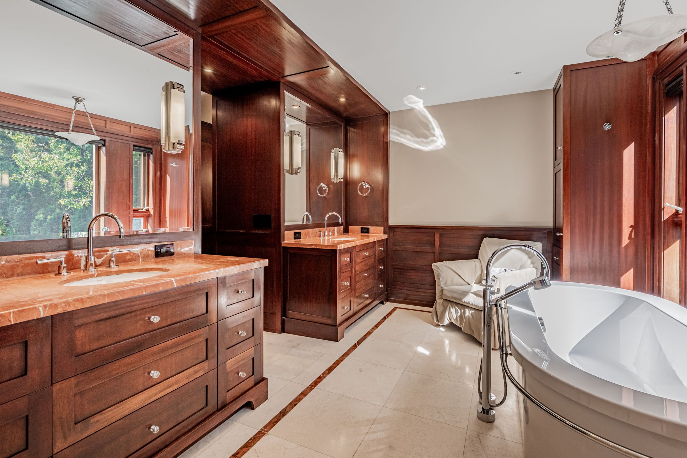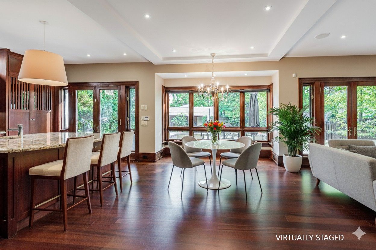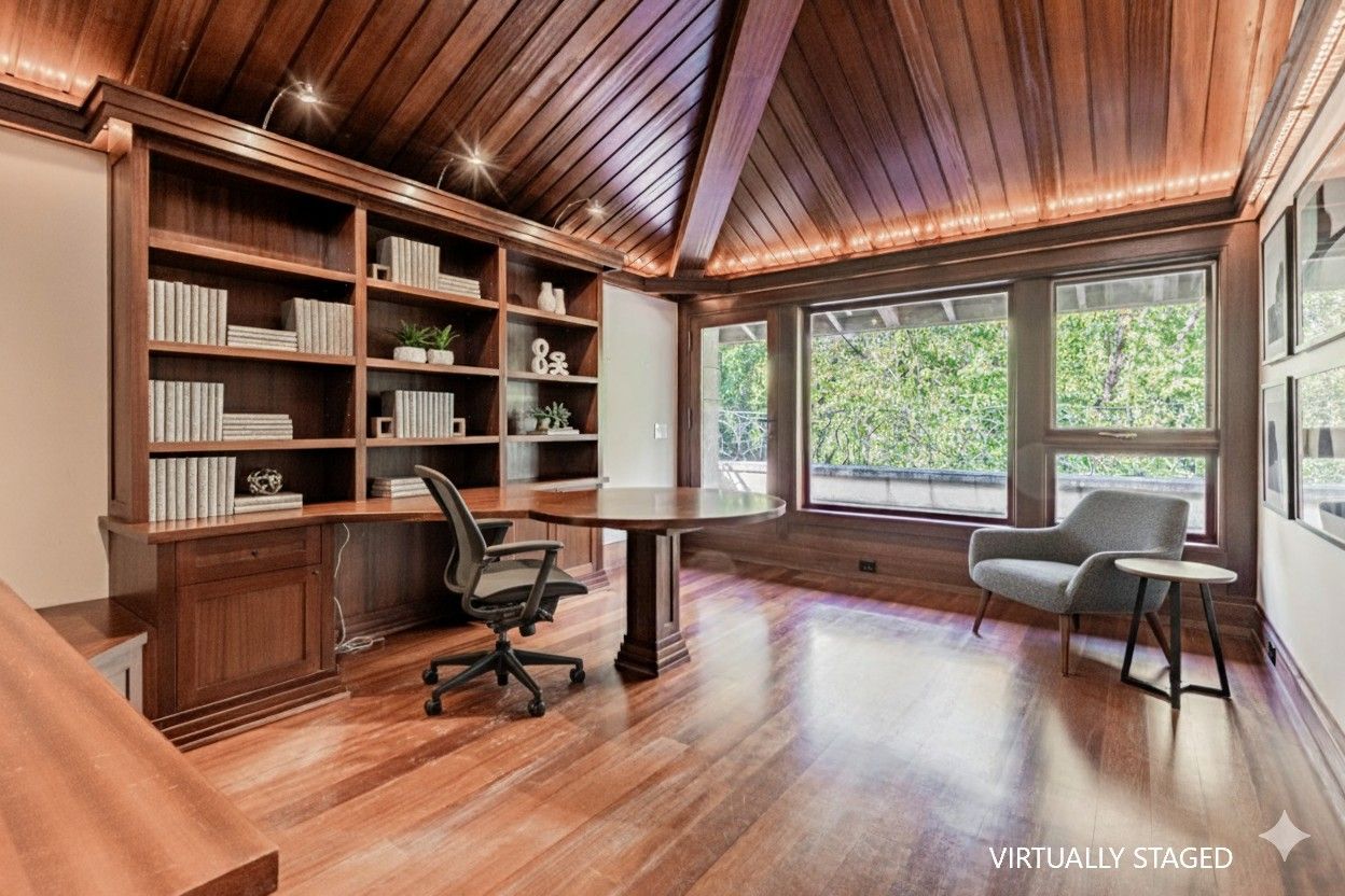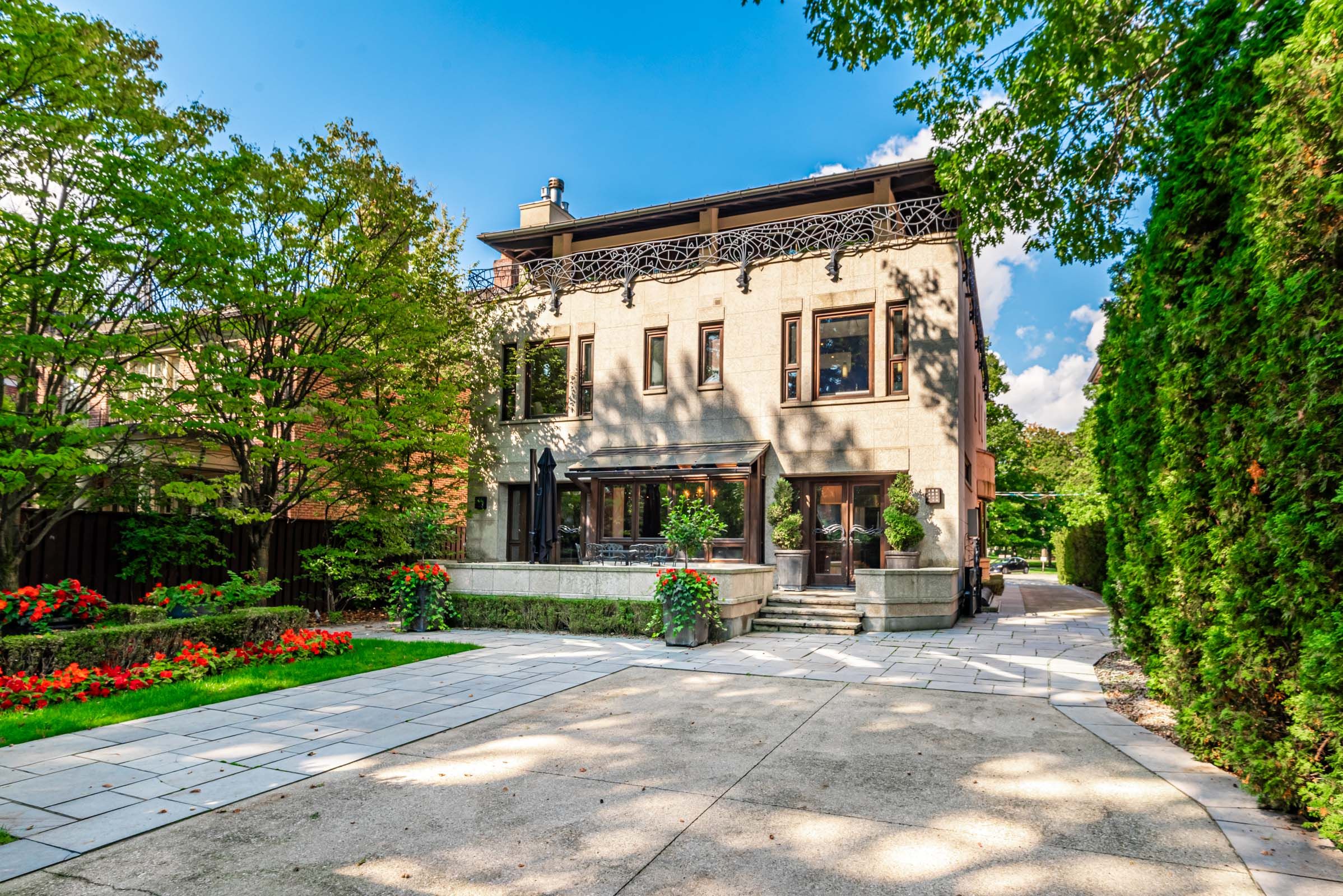 An architectural tour de force by acclaimed Robert Le Blond, recipient of the 1990 Governor Generals Award in Architecture ("Head-Smashed-In Buffalo Jump" in Alberta, now a UNESCO World Heritage Site), this 20-year-young bespoke residence is a French Art Deco masterwork of craftsmanship with inspired ironwork by Goudy from Spain. Offering over 5,000 sq ft of living space on a coveted corner by Chorley Park in prestigious Rosedale, the home is clad in rare Manitoba Tyndall stone, prized for its striking fossilized patterning. The residence blends enduring elegance with modern comfort, from the heated front porch and rear veranda to the soaring 17-foot living room crowned by a vintage theatre chandelier and wrapped in rich, mahogany-stained Jatoba wood wainscoting and floors. Formal entertaining spaces flow seamlessly into the chefs kitchen, breakfast area, and family room, all opening onto a landscaped garden sanctuary. The detached, heated garage, complete with a skylight, wet bar, shower, and custom storage, offers versatility as a private workshop, while a gated driveway ensures both privacy and grandeur. With five bedrooms, two offices, five fireplaces, six bathrooms, wrap-around balcony and even a dedicated pet wash, every element reflects a commitment to refined living without compromise.