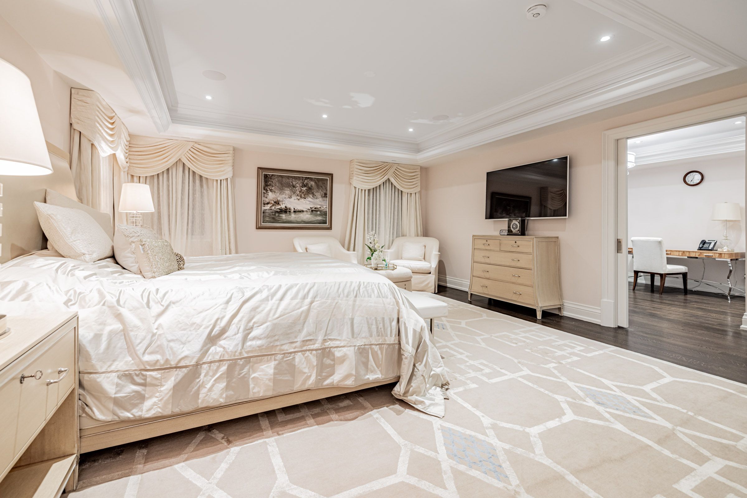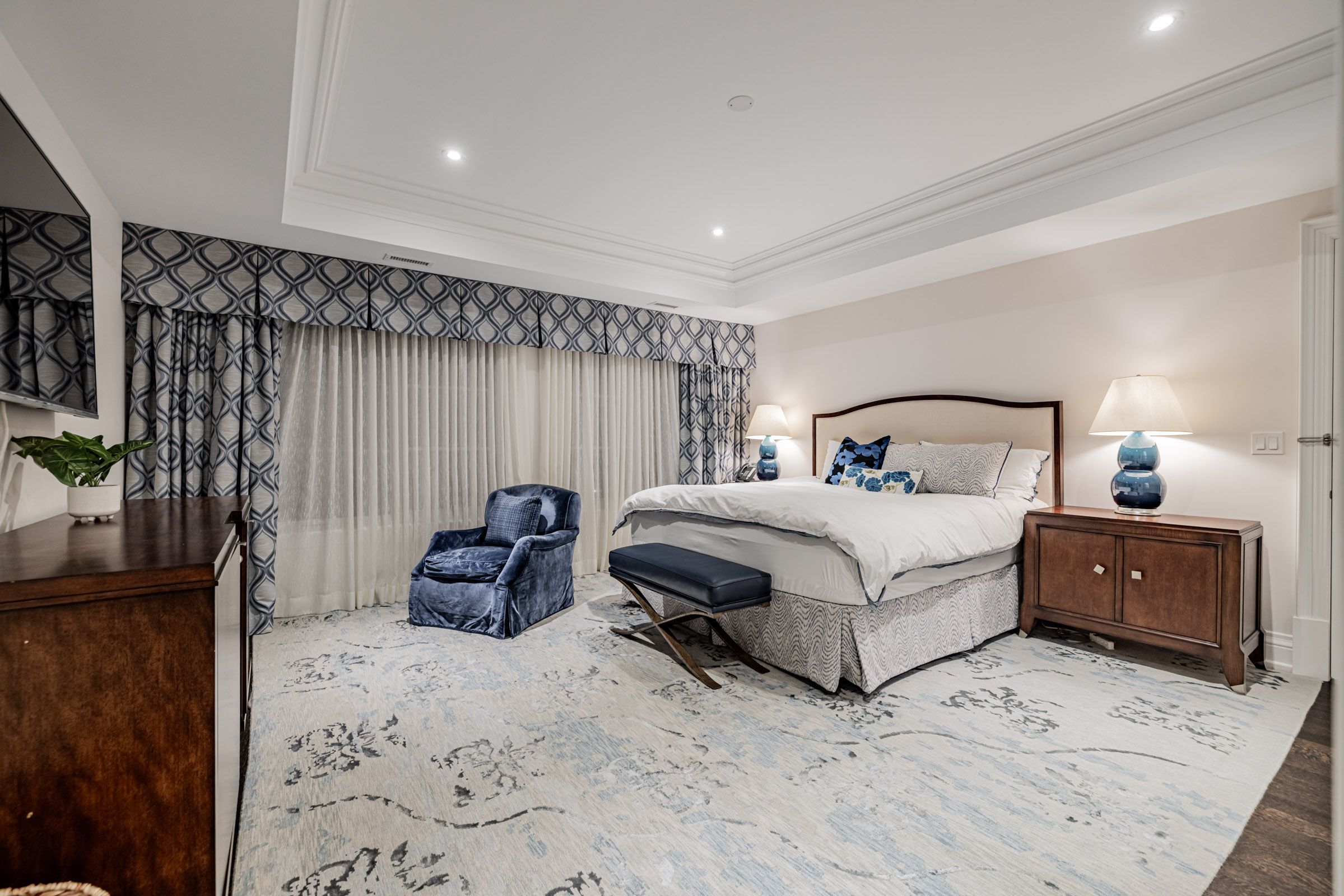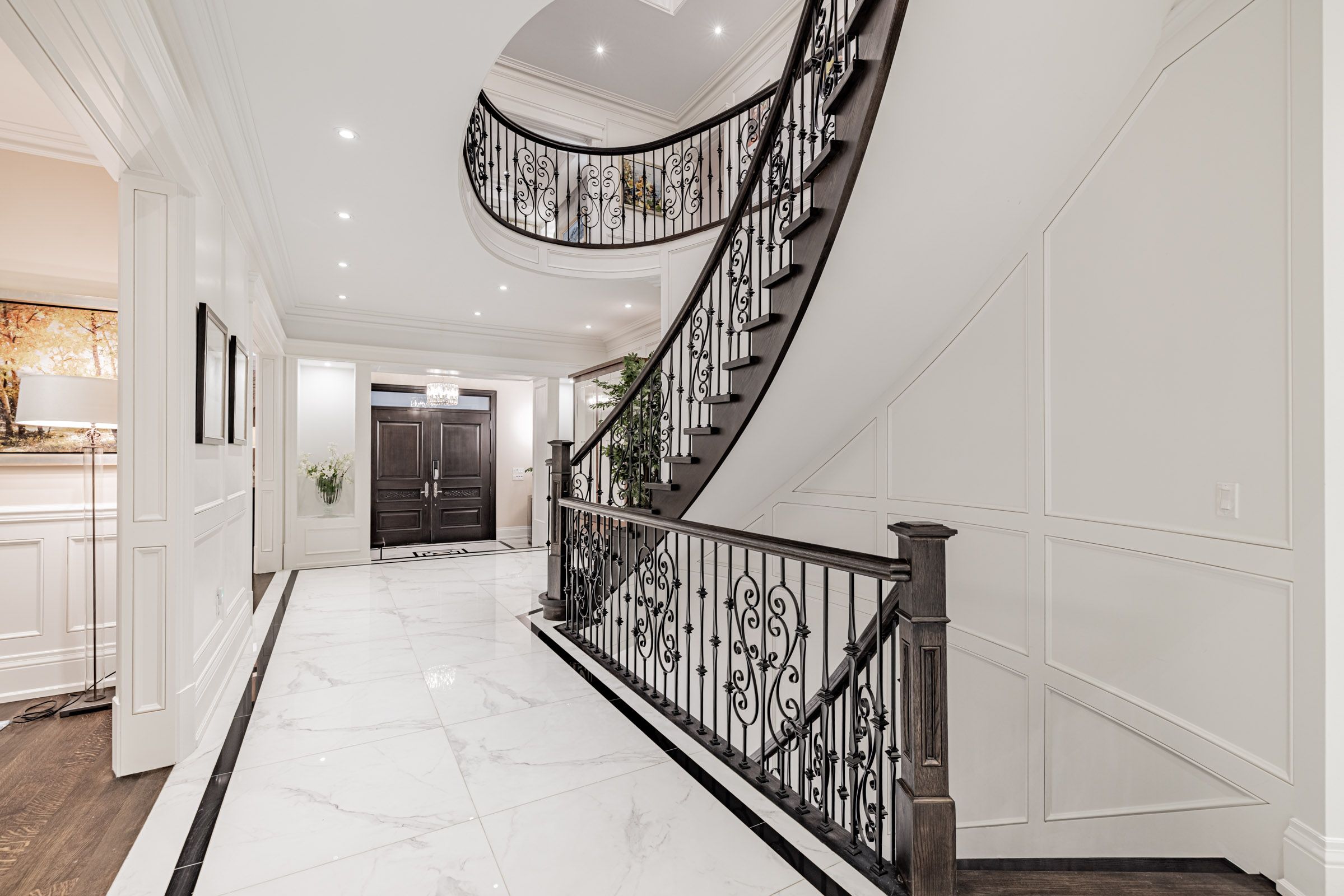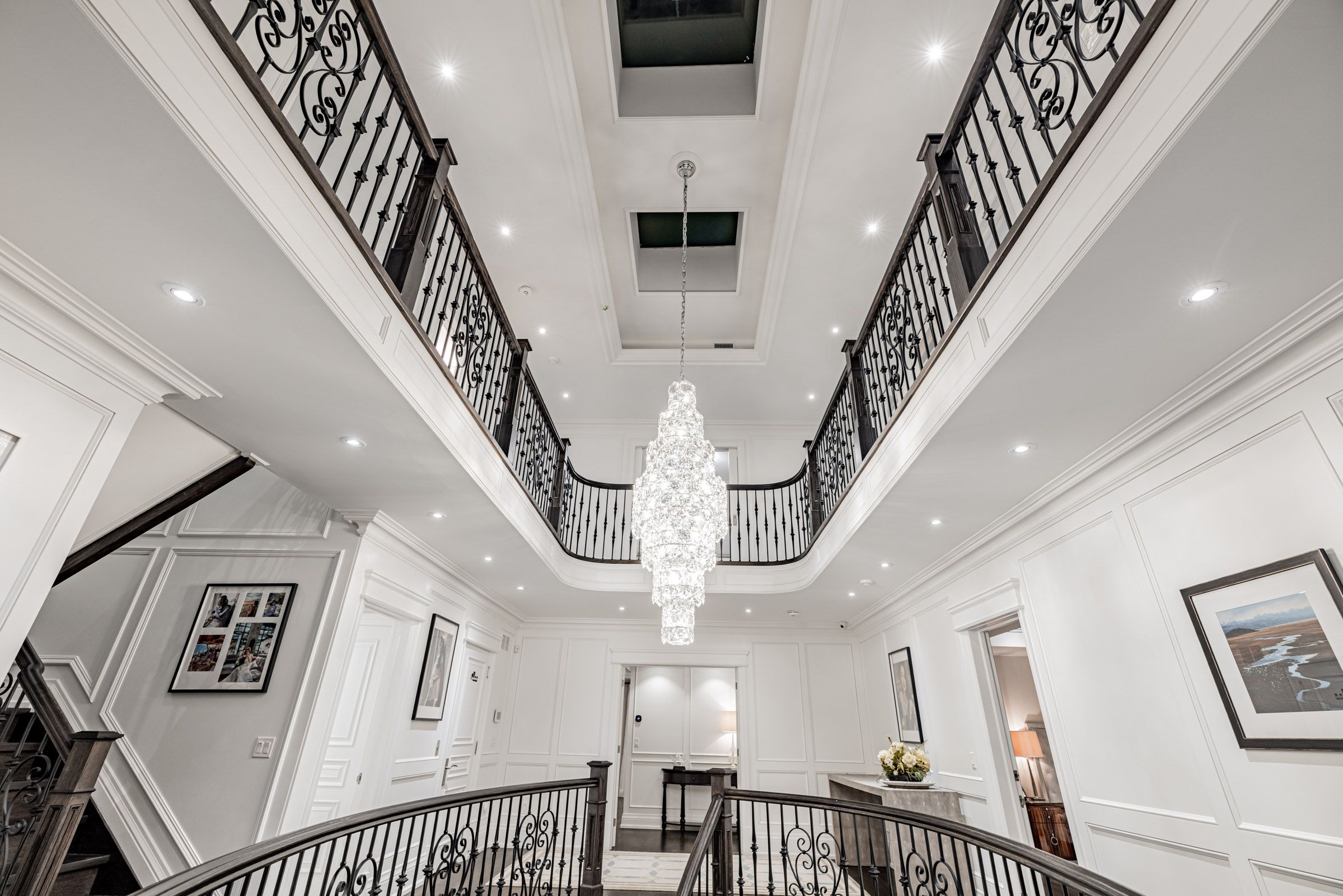 Stunning 3-STOREY Transitional Estate with ELEVATOR in Prestigious St. Andrew-Windfields. Only seven years new, this AMENITY-RICH masterpiece showcases over 12,000 SF of refined living space (approx. 9,000 SF above grade + 3,000 SF lower level) on an impressive 71' frontage, offering UNMATCHED CURB APPEAL and a true LUXURY experience. The grand foyer introduces expansive principal rooms, designer finishes, plaster moldings, coffered ceilings, and elegant fireplace features that anchor warm, welcoming gatherings. The chef-inspired kitchen is a showpiece, equipped with TOP-OF-THE-LINE Miele APPLANCES, custom cabinetry, quartz surfaces, pot filler, radiant HEATED FLOORS, and a large island, complemented by a fully equipped SEPARATE WOK KITCHEN. The breakfast area opens seamlessly to the landscaped backyard featuring natural stone, a fully enclosed NEW GAZEBO, and a pool-sized lot. Multiple skylights drench the home in NATURAL LIGHT. The opulent primary suite offers a sitting area with Juliette balcony, lavish 6-piece ensuite plus an additional 2-piece inner ensuite, and a spacious walk-in closet. All additional bedrooms include private ensuites, walk-in closets, and hardwood floors. The AMENITY-PACKED LOWER LEVEL includes a sound-insulated home theatre, wine cellar, wet bar, steam & dry saunas, large recreation/party area, gym, and a full GOLF SIMULATOR with exercise space. Walk-out access creates a seamless indoor/outdoor flow. Additional highlights include a 4-STOREY GRAND STAIRCASE, ELEVATOR, 3-CAR GARAGE with 14' ceilings (CAR-LIFT suitable), whole-home audio, CCTV surveillance, 400-amp service, 20KW backup GENERATOR, RADIANT FLOOR HEATING, two furnaces, two A/C units, HRV-fresh air system, water softener, and built-in smart home systems. Located steps to renowned schools, shops, parks, and upscale amenities, this exceptional residence offers luxury living at its finest in one of Toronto's most coveted neighbourhoods.