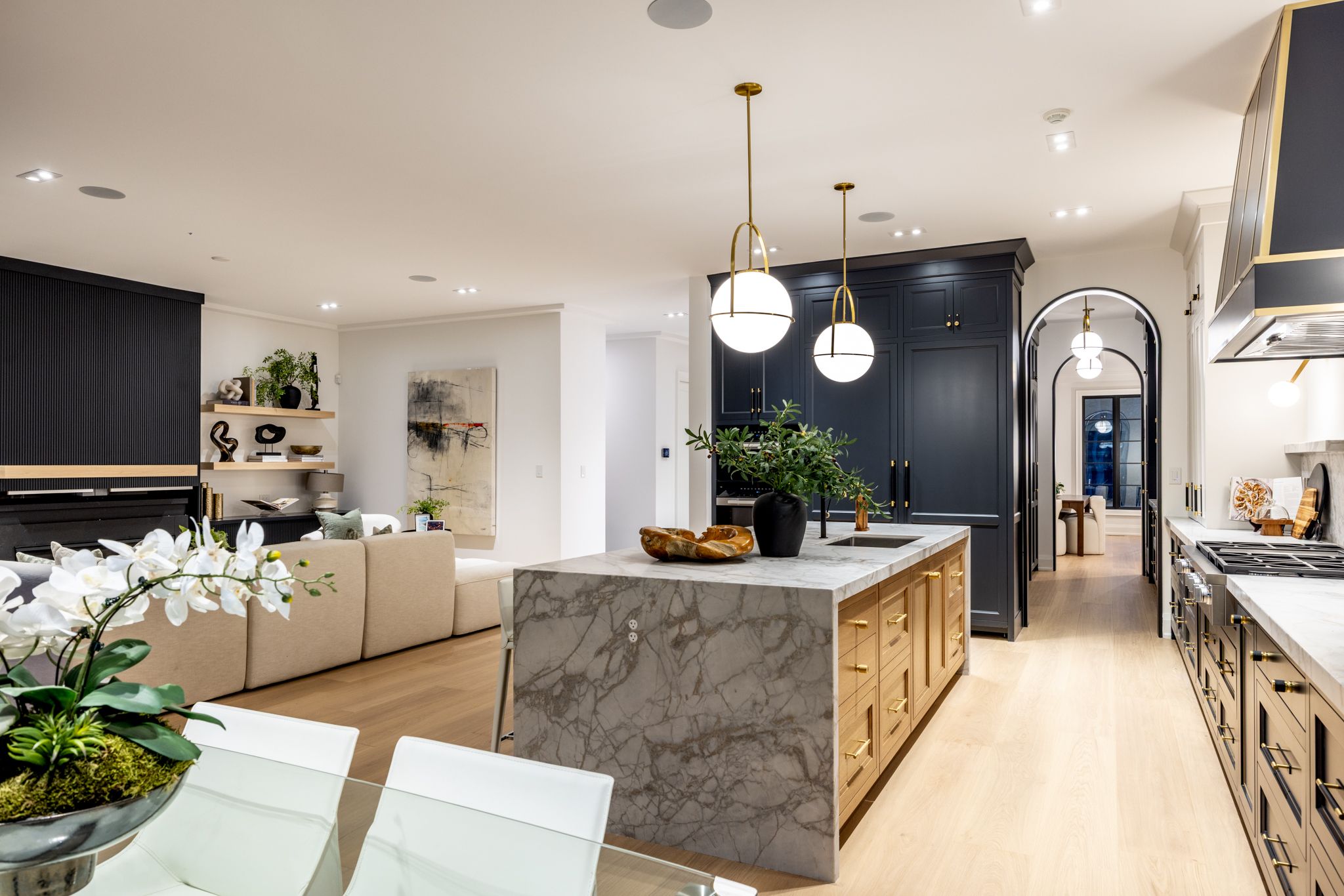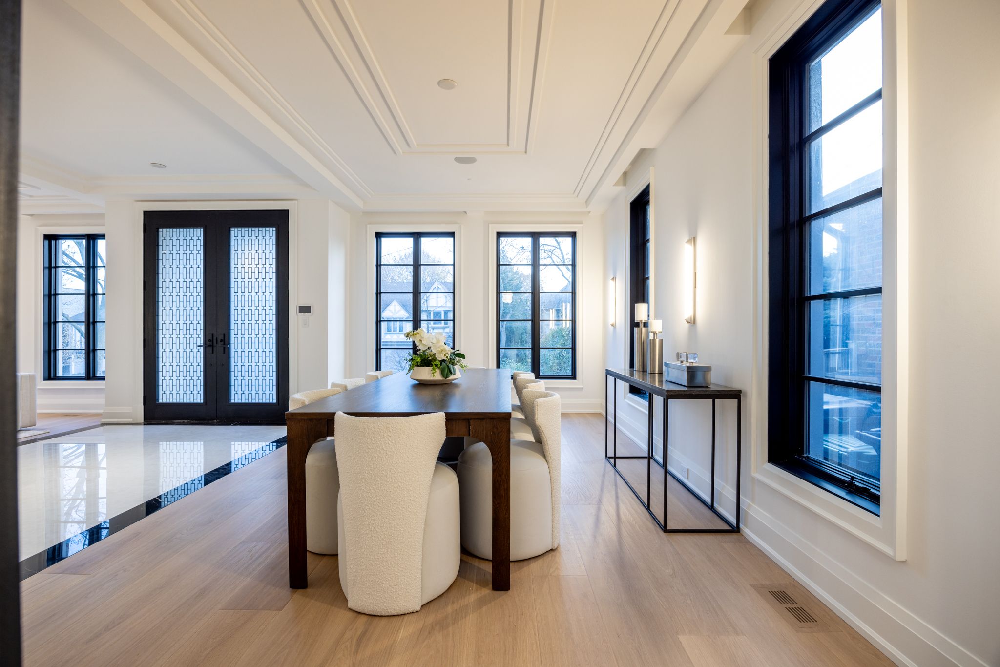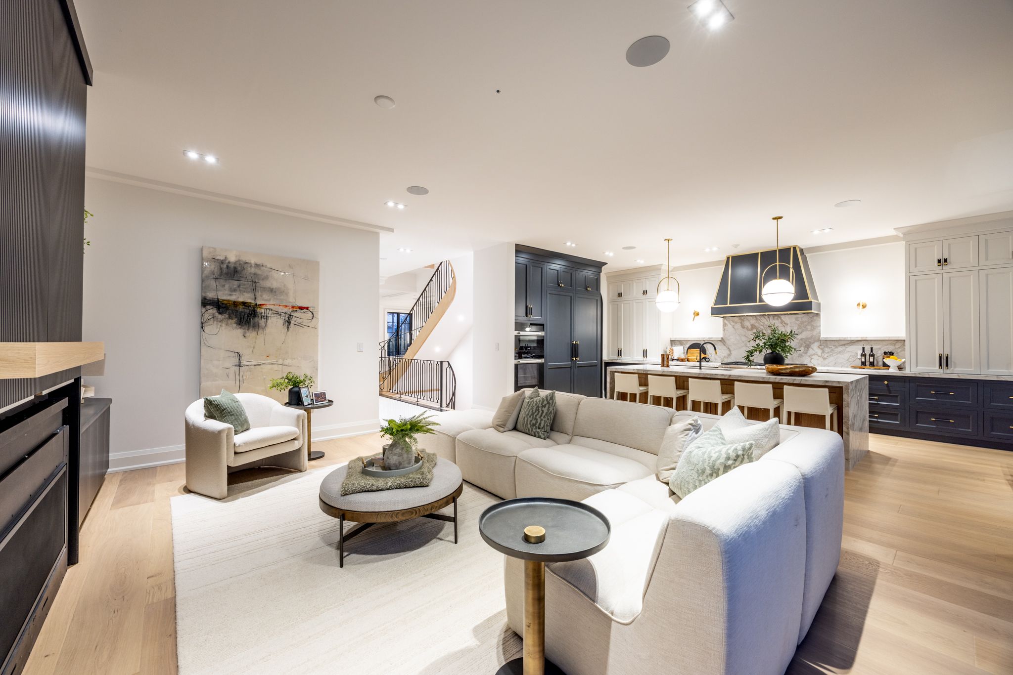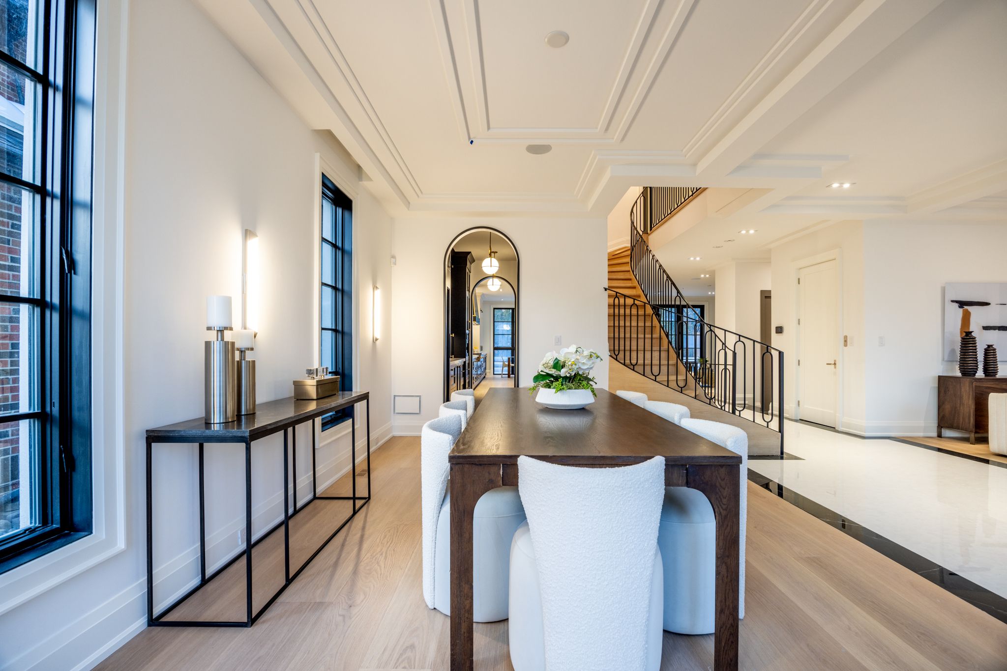 A newly built custom residence, designed by Spragge Architects, is perfectly positioned with southern exposure and captivating winter city views. Exemplifying exceptional craftsmanship in the heart of prestigious Forest Hill. This 6-bedroom, 8-bathroom home spans over 5,200 sq ft of refined living space, blending timeless artistry with the finest materials. From the moment you arrive, a heated walkway leads to an impressive entrance framed by a brick and Indiana limestone facade. Inside, soaring 10.5-foot ceilings, a sweeping curved staircase, and a grand stone hallway set a tone of understated elegance. The formal oversized living and dining rooms feature coffered ceilings, a statement fireplace, and a butler's pantry designed for seamless entertaining. Sunlight fills the principal rooms, overlooking manicured gardens and a saltwater pool, while a private elevator offers effortless access to every level. Enter through the private side entrance from the driveway into a well-appointed mudroom that combines function and style, adjacent to a striking powder room with marble floors and an integrated marble sink. The chef's kitchen, anchored by a generous eat-in island and breakfast area, connects to a welcoming family room with custom built-ins, a coffered ceiling, and a walk-out to the private yard. Upstairs, the Primary suite offers a tranquil retreat with a private balcony, custom walk-in closet with exquisite cabinetry, and spa-inspired ensuite. Two additional bedrooms, each with designer finishes and ensuite bathrooms, complete this level. The top floor adds versatility with two more bedrooms, a full bath, an office or play space, and a sunlit laundry room with abundant storage. The lower level impresses with a large recreation room, wet bar, gym, guest/nanny suite, powder room, and ample storage & radiant heating. Just steps from Forest Hill Village, Cedarvale Park, and only 15 minutes to Yorkville. Thirty-Six Ava Road defines modern luxury and effortless living.