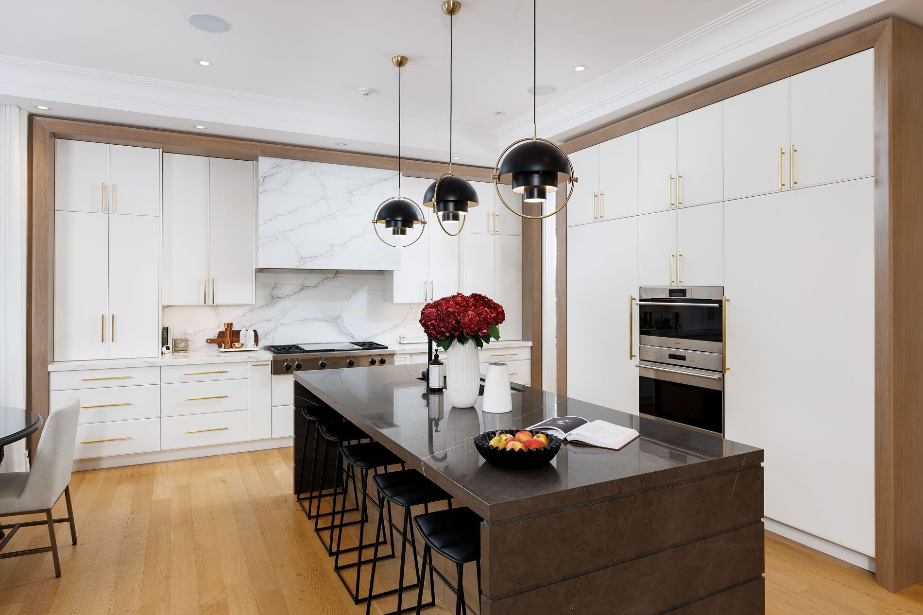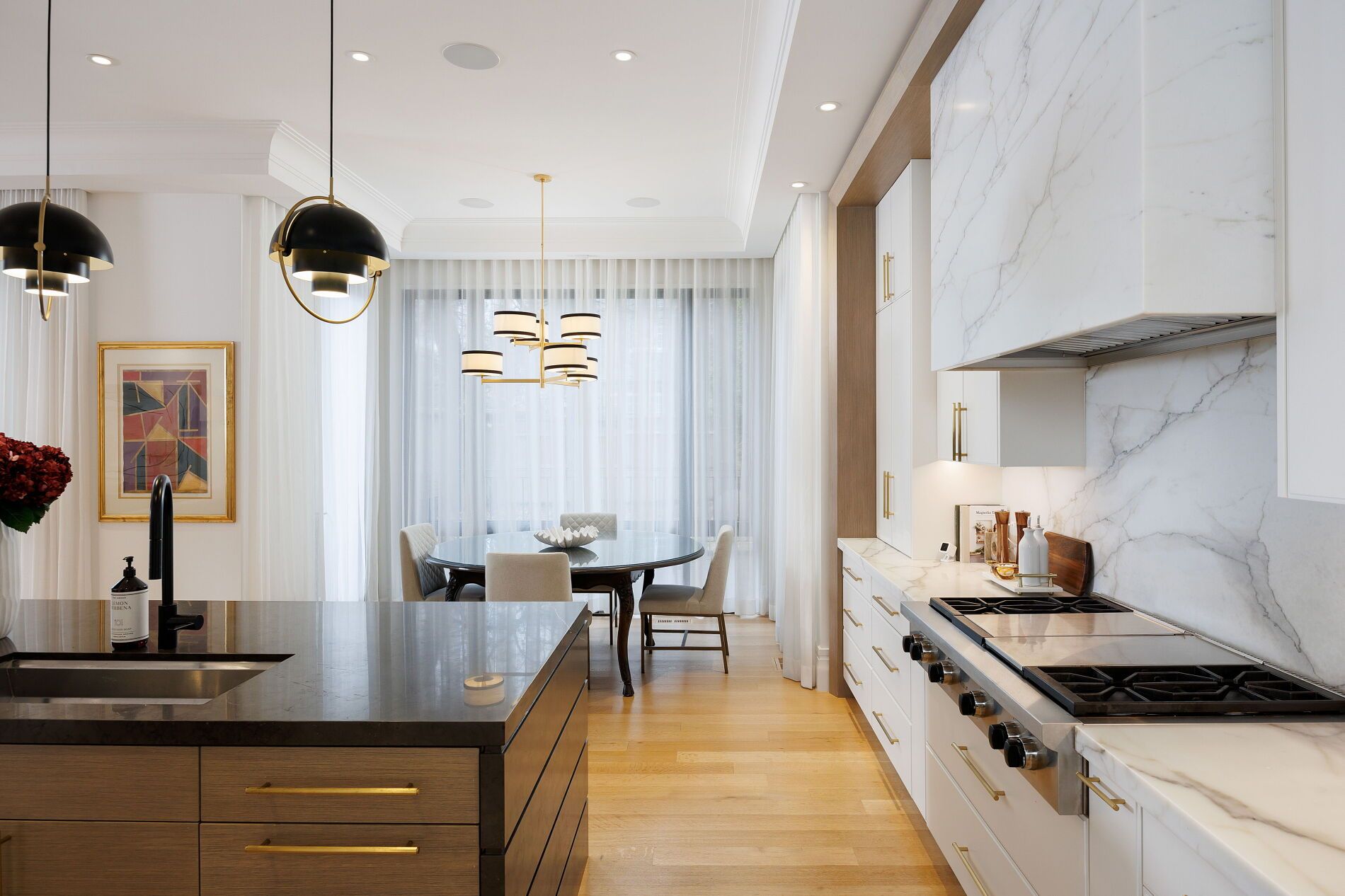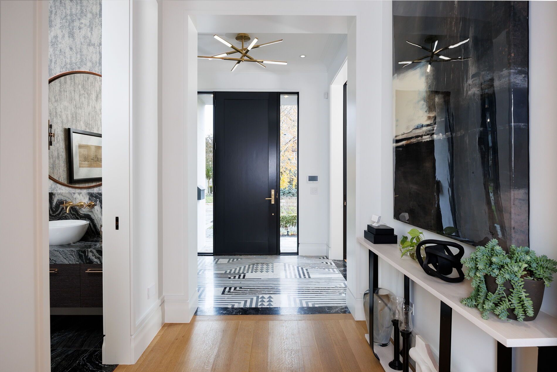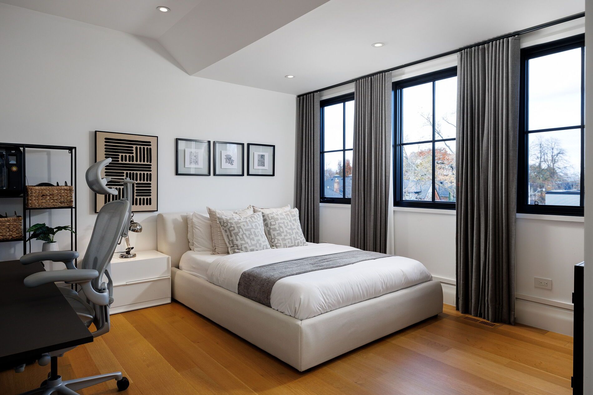 Nestled on a quiet, tree-lined street in Lytton Park, 207 Strathallan Blvd is a bespoke 5+ bedroom residence offering over 6,500 sq.ft. of elegantly crafted total living space. Built in 2019 by Teddington Homes & realized with uncompromising craftsmanship & a refined palette of luxury materials, the home was conceived under the architectural direction of Limor Benmor-Mizrahi (formerly of Peter Higgins Architect) & finished with interiors by Debra Salmoni, embodying a balance of modern sophistication & enduring comfort. A monumental front door opens into a refined foyer with a custom marble-inlay floor. A powder room is conveniently located off the foyer, across from the executive office. White oak & heated stone flooring, soaring ceilings & abundant natural light create an atmosphere of calm refinement. At the front, the executive office is anchored by a sleek see-through gas fireplace that also serves the open-concept formal living & dining areas, where French doors walk out to a flagstone terrace. The centre hall leads into the sun-filled family room with floor-to-ceiling windows & oversized sliders extending the space to the backyard. The south-facing breakfast area enjoys another walk-out. The kitchen, both a design statement & a culinary workspace, features integrated pro-grade appliances, custom Bellini cabinetry, marble countertops & backsplash, an oversized limestone island with seating, extended-height cabinetry & a fully outfitted butler's pantry with access to the mudroom & garage. Upstairs, the primary suite is a private retreat with a gas fireplace, balcony, soaring ceiling & spa-inspired 5pc ensuite. Three additional bedrooms each offer a private ensuite & custom walk-in closet. The 3rd level provides a flexible 5th bedroom suite with a 3pc ensuite & balcony. The lower level features a large entertainment room with kitchenette & walkup, a glass-enclosed fitness studio, a 6th bedroom with 3pc ensuite, the main laundry room, a 2pc bath & a cold room.