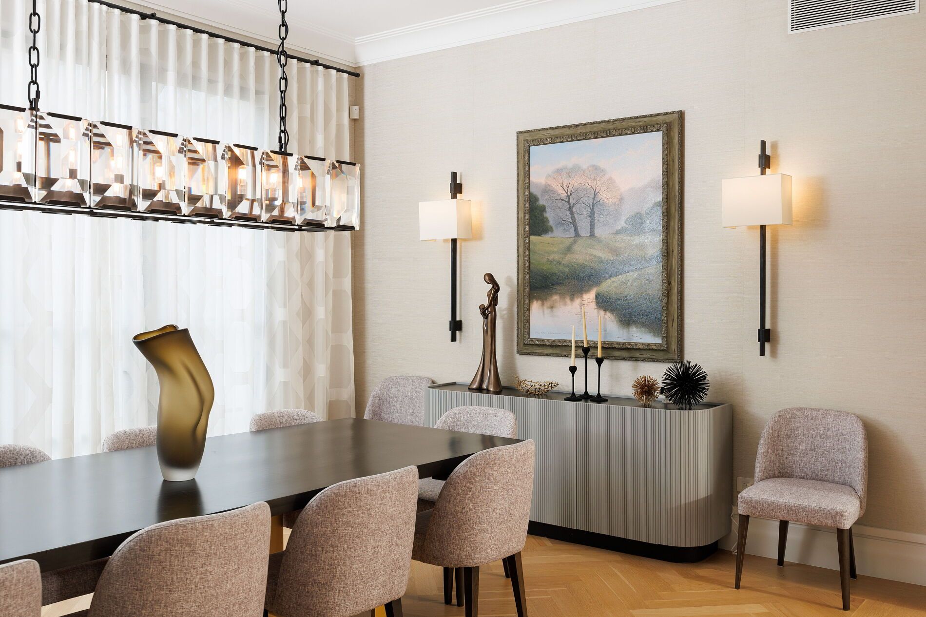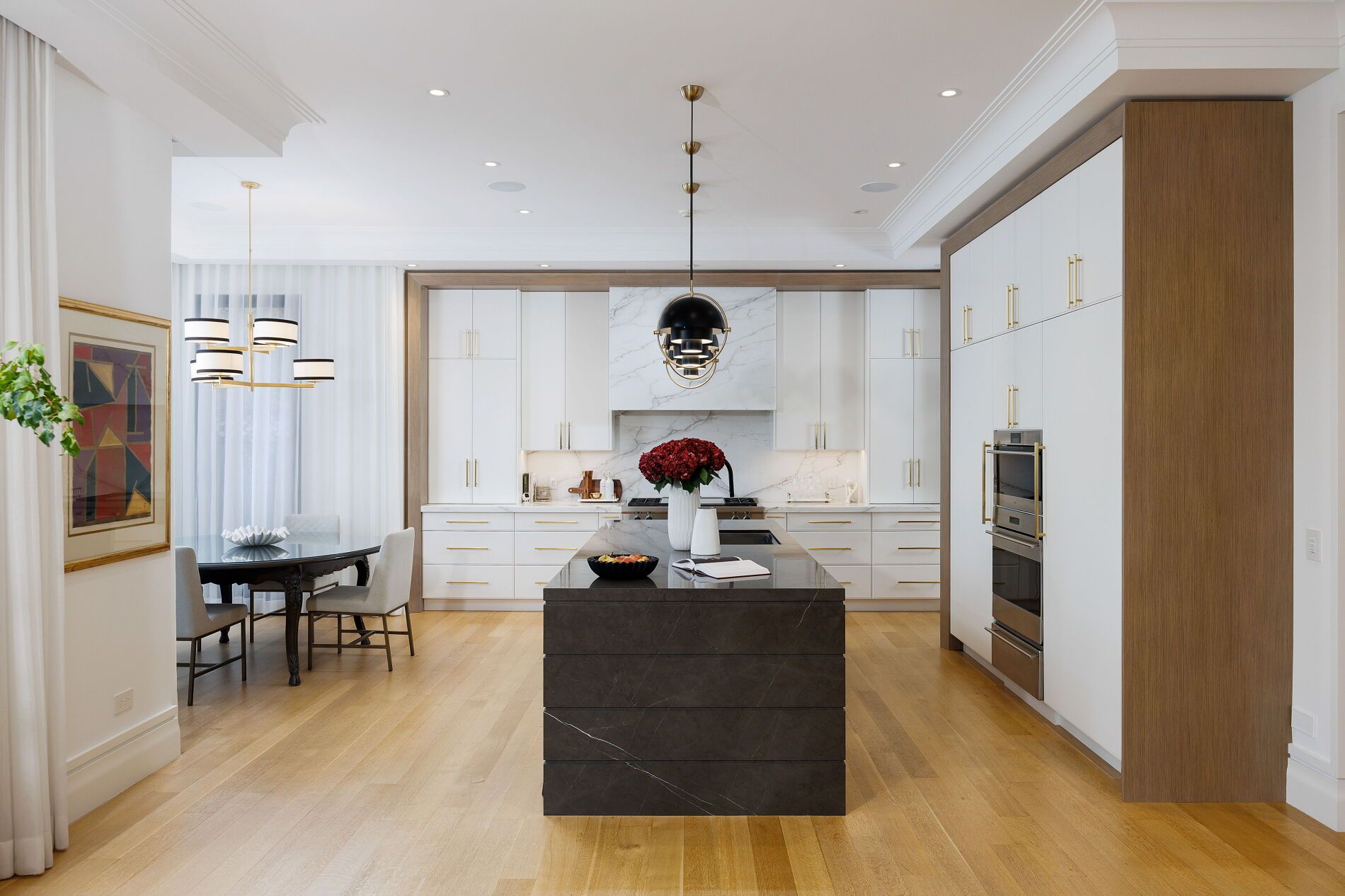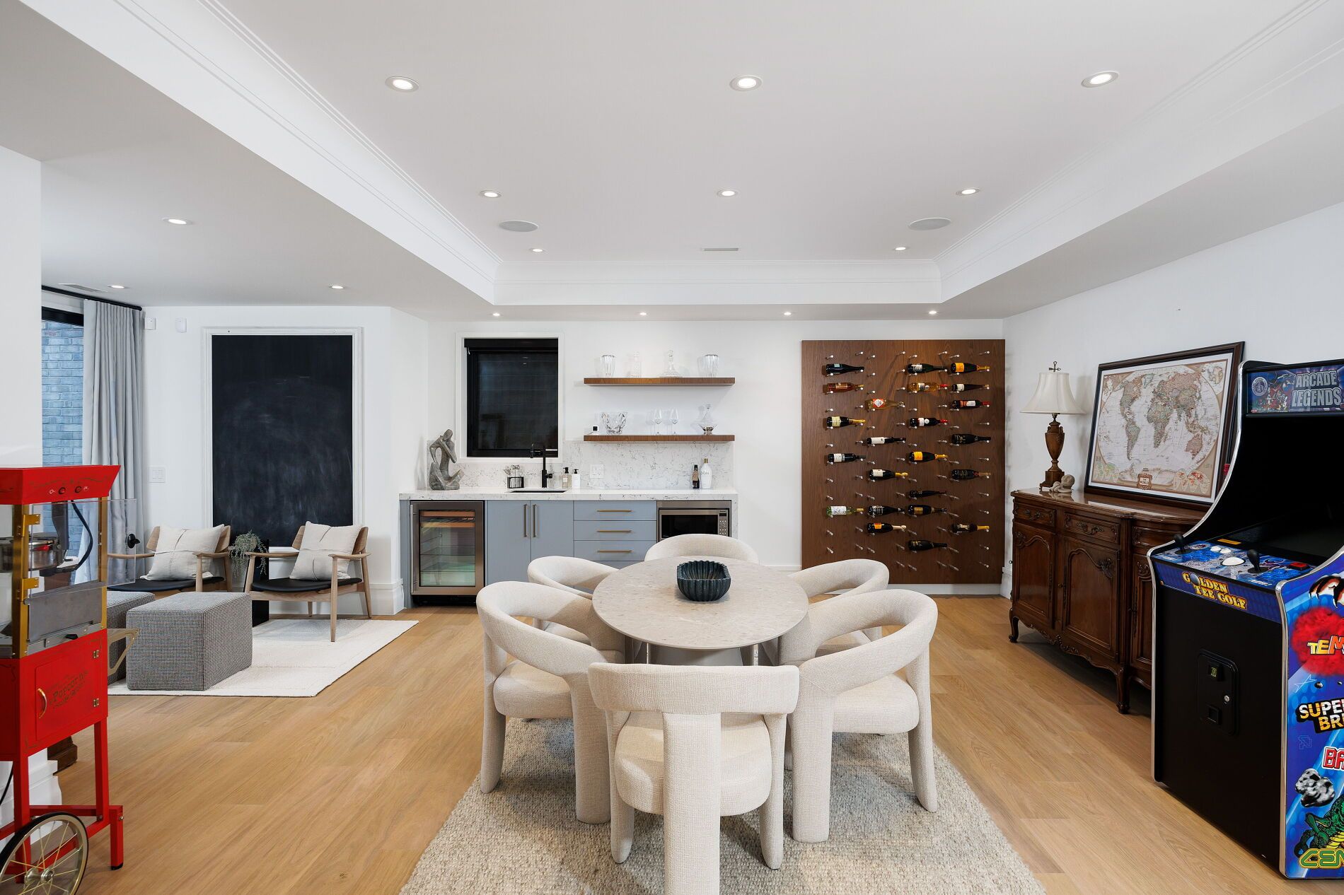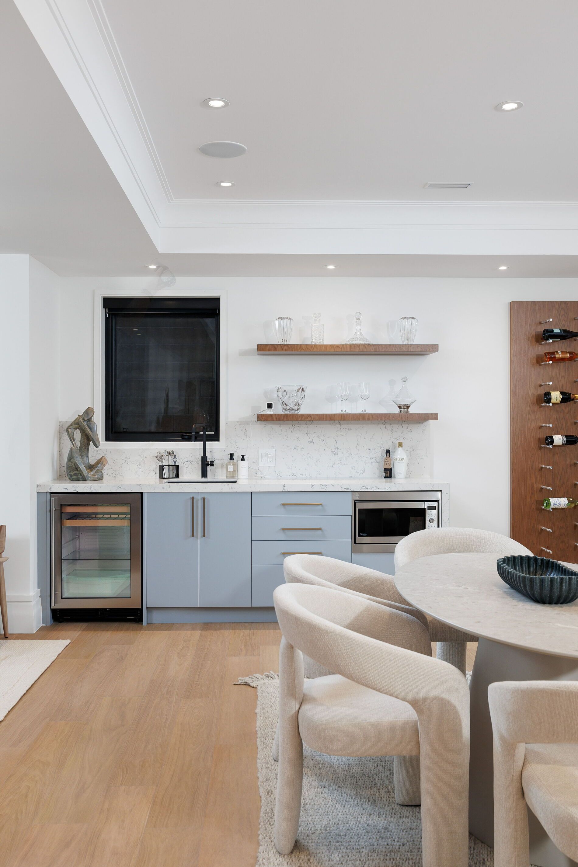 Nestled on a quiet, tree-lined street in Lytton Park, 207 Strathallan Blvd is a bespoke 5+ bedroom residence offering over 6,500 sq.ft. of elegantly crafted total living space. Built in 2019 by Teddington Homes & realized with uncompromising craftsmanship & a refined palette of luxury materials, the home was conceived under the architectural direction of Limor Benmor-Mizrahi (formerly of Peter Higgins Architect) & finished with interiors by Debra Salmoni, embodying a balance of modern sophistication & enduring comfort. A monumental front door opens into a refined foyer with a custom marble-inlay floor. A powder room is conveniently located off the foyer, across from the executive office. White oak & heated stone flooring, soaring ceilings & abundant natural light create an atmosphere of calm refinement. At the front, the executive office is anchored by a sleek see-through gas fireplace that also serves the open-concept formal living & dining areas, where French doors walk out to a flagstone terrace. The centre hall leads into the sun-filled family room with floor-to-ceiling windows & oversized sliders extending the space to the backyard. The south-facing breakfast area enjoys another walk-out. The kitchen, both a design statement & a culinary workspace, features integrated pro-grade appliances, custom Bellini cabinetry, marble countertops & backsplash, an oversized limestone island with seating, extended-height cabinetry & a fully outfitted butler's pantry with access to the mudroom & garage. Upstairs, the primary suite is a private retreat with a gas fireplace, balcony, soaring ceiling & spa-inspired 5pc ensuite. Three additional bedrooms each offer a private ensuite & custom walk-in closet. The 3rd level provides a flexible 5th bedroom suite with a 3pc ensuite & balcony. The lower level features a large entertainment room with kitchenette & walkup, a glass-enclosed fitness studio, a 6th bedroom with 3pc ensuite, the main laundry room, a 2pc bath & a cold room.