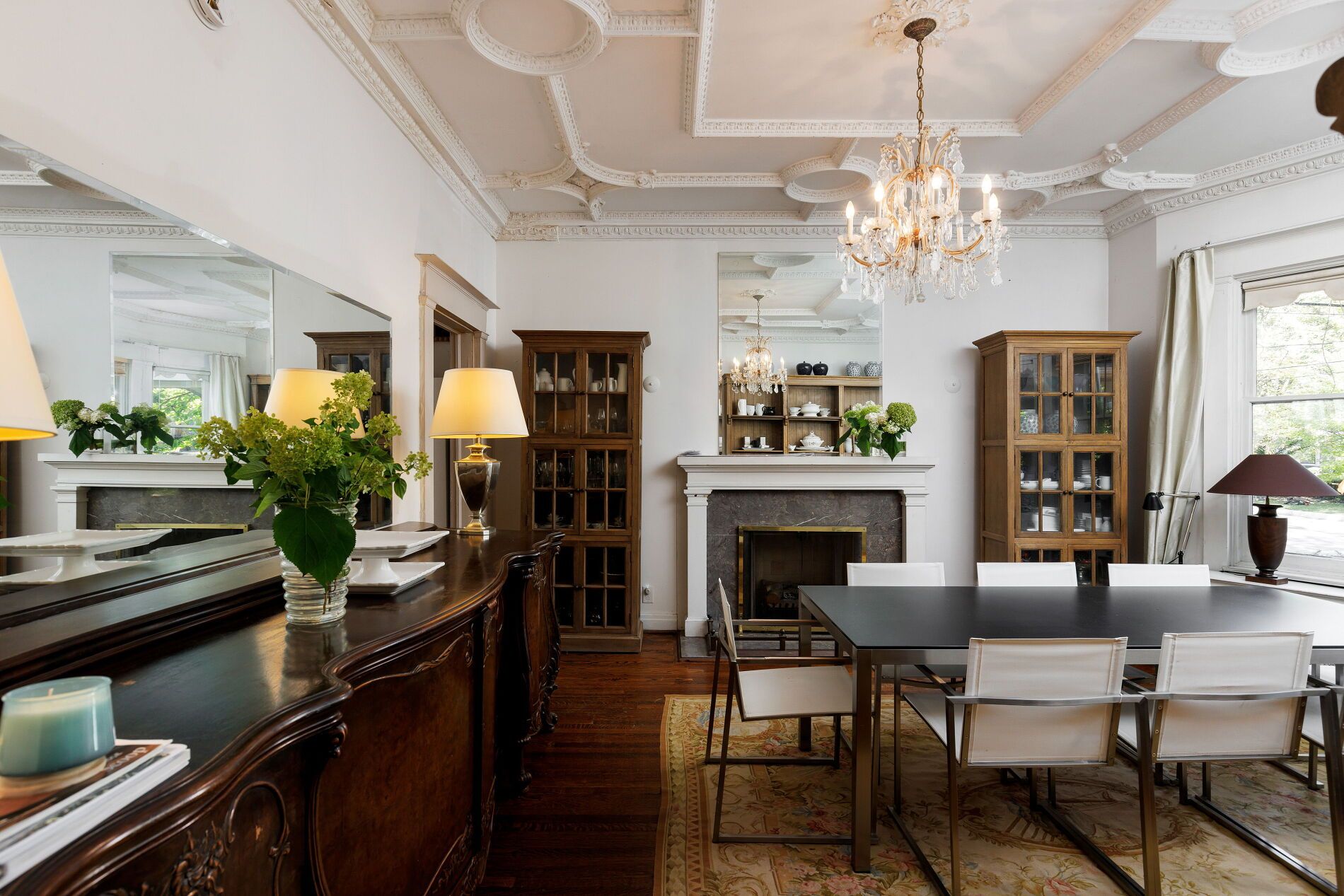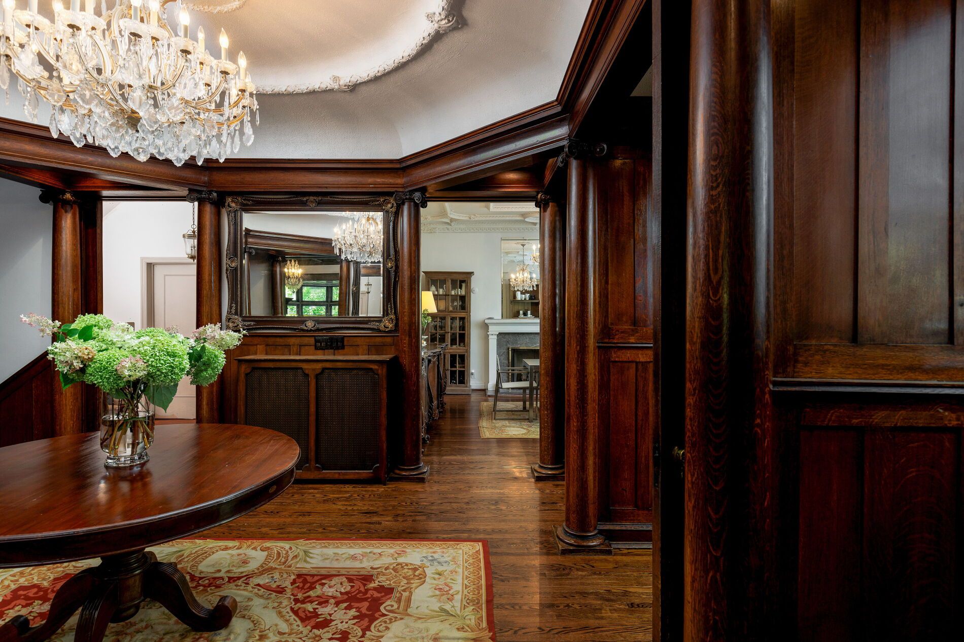 Nestled in Toronto's prestigious Rosedale neighbourhood, this landmark mansion occupies an expansive 100' x 122' estate-sized lot and offers over 7,500 square feet of impeccably designed living spaces. With 7 + 1 generously proportioned bedrooms, 8 bathrooms, and an exceptional third-floor loft, this grand residence seamlessly blends historic architecture with the scale, elegance, and functionality. Originally built circa 1900 for the distinguished Applegate family, the home has been meticulously restored and thoughtfully maintained to preserve it's architectural heritage including a self portrait stain glass window of Mrs. Applegate herself. Drawing inspiration from the classical traditions of Italian Renaissance architect Andrea Palladiio - most notably his iconic Villa Rotunda in Vicenza, Italy - the home reflects timeless design and exceptional craftmanship. A majestic octagonal central hall, framed by twelve lonic columns, creates an unforgettable first impression and sets the tone for the rest of the residence. Throughout the home, rich period details abound: original oak hardwood floors, finely hand-craved oak mouldings and wainscoting, intricate millwork, and 6 fireplaces with decorative tile and brick hearths. The soaring 10-foot ceilings are adorned with ornate plaster crown mouldings, ceiling medallions, and oak-beamed details that speak to the home's historical significance. Expansive bow windows and beautifully preserved stained glass flood the interior with natural light and highlight the warm, elegant atmosphere. Outside, the property is a private oasis, surrounded by mature trees, lush landscaping, and tranquil gardens that offer rare serenity in the heart of the city. A detached two-car garage and additional parking for three vehicles provide added convenience. This is a once-in-a-generation opportunity to own a truly iconic Rosedale residence - an architectural treasure steeped in history and timeless charm.