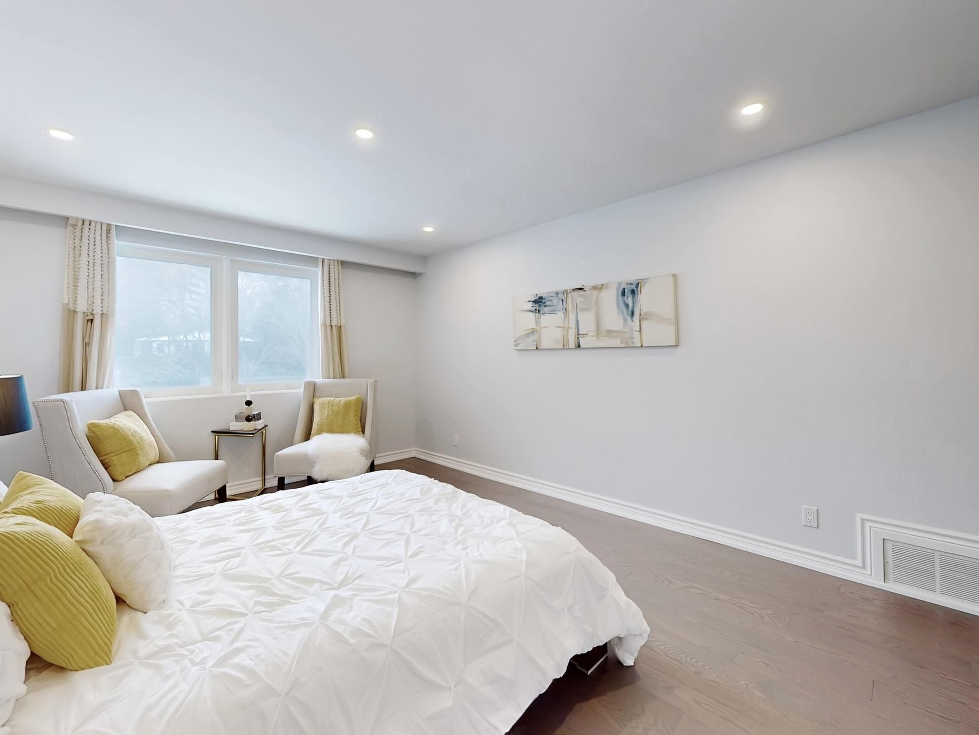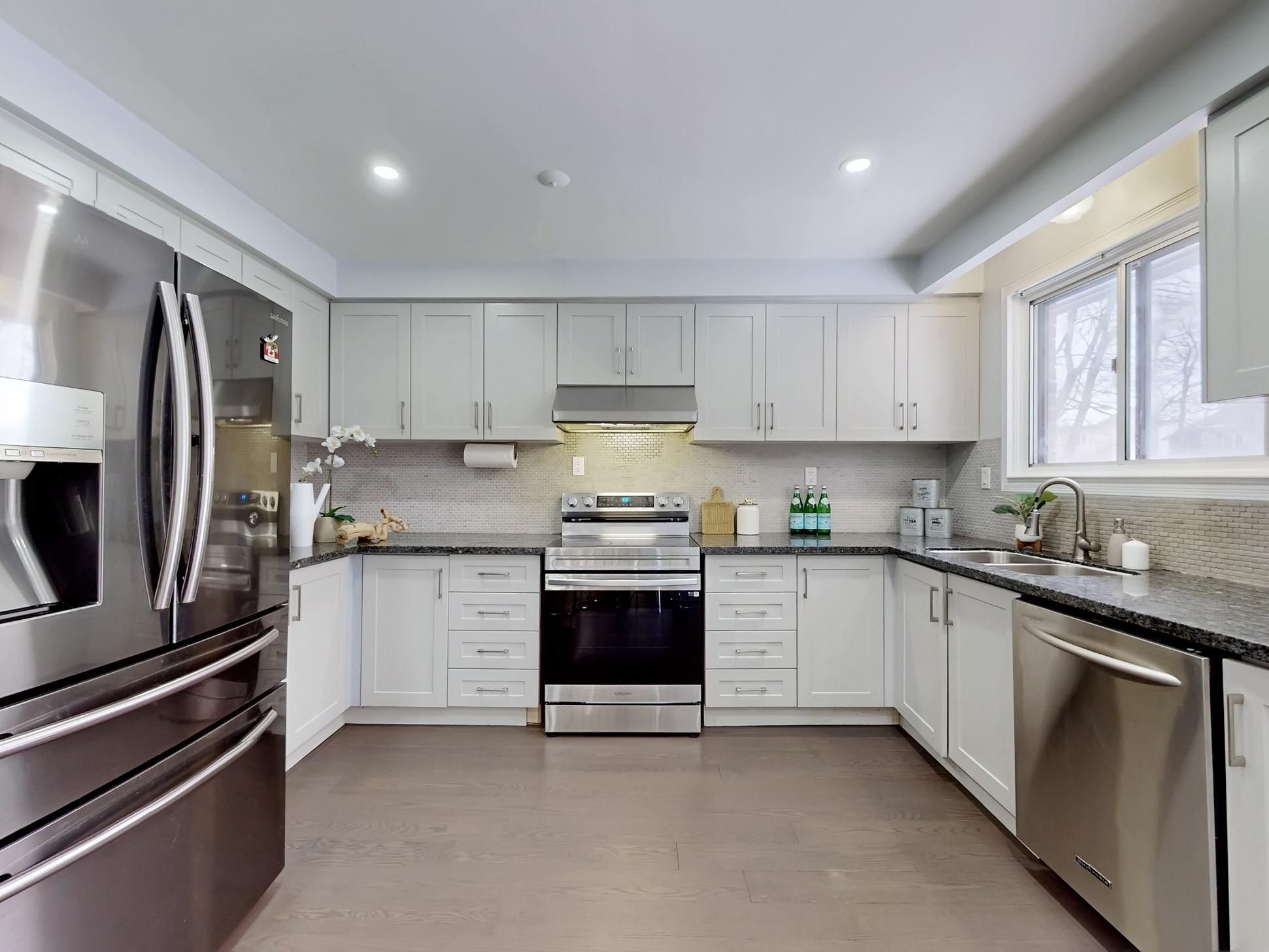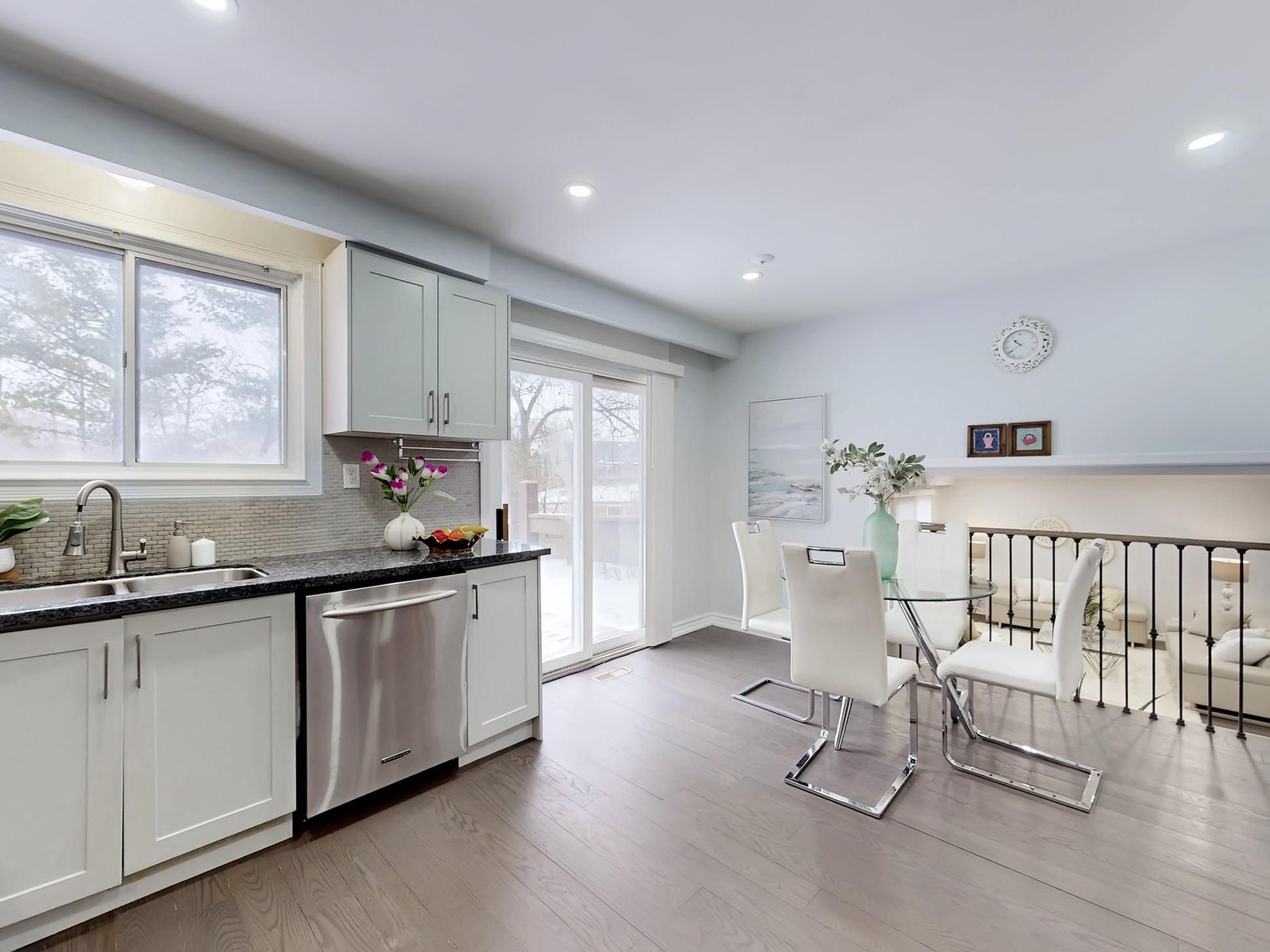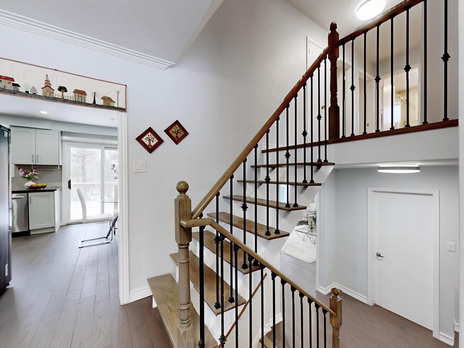 **Top-ranked school district (A.Y. Jackson S.S. & Zion Heights M.S.)** Rare opportunity to move right in, or invest, or build on this stunning, south-facing detached sidesplit-4 levels with 4+1 bedrooms, situated on a premium 10,980+ sqft pie-shaped lot in a quiet cul-de-sac, backing on Bayview Ave (often referred to as the "Dragon Vein Line"). Top-to-bottom renovation completed in 2017-2018 and meticulously maintained. This elegant home is ideal for families seeking generous living space and multiple bedrooms. Home features include double entry doors; a large foyer with double closet; a sun-filled porch offering peace and tranquility of the court; oak hardwood flooring on the lower, main, and upper levels; laminate flooring in the basement; pot lights throughout; spacious and stunning living and dining areas with large picture windows; an open-concept kitchen with stainless steel appliances, granite counter-tops, eat-in kitchen, overlooking the family room, and walk-out to a large deck; wood-burning fireplaces in both large family and recreation rooms; a fabulous family room with walk-out to backyard patio; a large recreation room with extended cool room and crawl-space storage; a primary bedroom with south exposure, walk-in closet and 4-pc ensuite; a second bedroom with walk-out to a large balcony; a basement bedroom with 4-pc ensuite; side separate entrance via laundry room and powder room; double garage plus 4-car driveway parking; large garden shed, and a private backyard boundary via metal & wood fencing and mature lined trees. Outstanding future development potential including a garden suite fronting on Bayview Ave, or addition 2nd floor on the side portion, or rebuild luxury custom home, or possible land assemble with neighbors to sell to the townhome developments (buyer to verify zoning, permits, and development options). Prime location steps to TTC, plazas, parks, and biking/hiking trails, with quick access to subway, major malls, and Hwys 401/404/DVP/407.