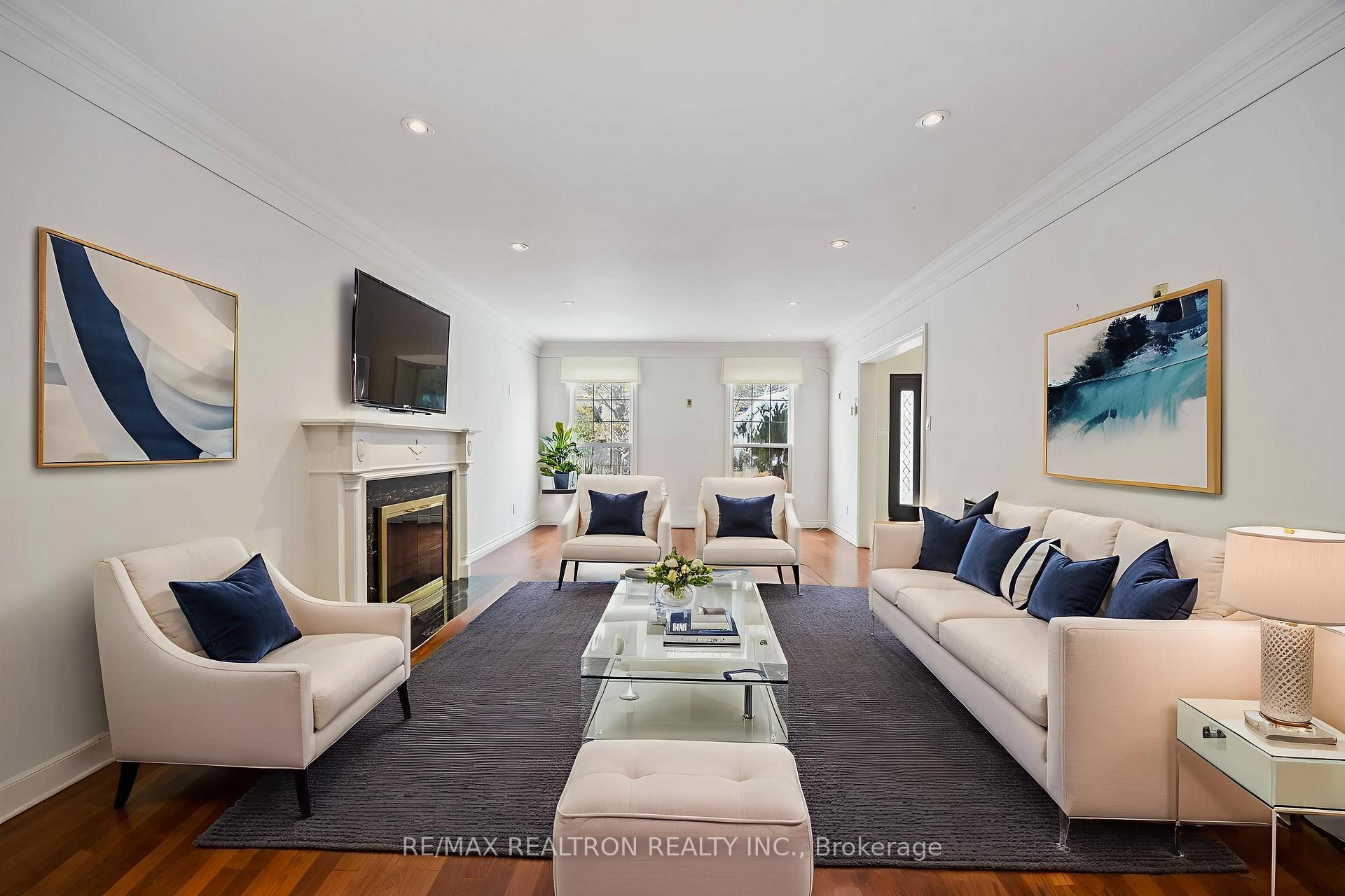 Welcome to 12 Donwoods Drive. Live in elegance in Toronto's coveted Hogg's Hollow community with this classic Georgian-style brick home, tucked away on a private laneway above Donwoods Drive. Offering over 5,000 sq.ft. of living space, this residence combines timeless architecture with thoughtful modern upgrades. Step into the bright, grand foyer that sets the tone for this sophisticated home. The spacious family room leads to a renovated gourmet eat-in kitchen with a large island and granite countertops-perfect for family gatherings. Relax by one of the four cozy fireplaces or host summer dinners on the interlocked backyard patio, surrounded by lush greenery. The large primary suite features a walk-in closet and serene views. Perfect for a family needing generous space, this well-maintained home is clean, bright, and move-in ready, with the opportunity to refresh interiors over time to suit your style. The wood-paneled office provides a quiet retreat, while the kitchen is a dream culinary space. A versatile fifth bedroom on the lower level can serve as a guest suite, gym, or nanny/granny suite. Enjoy stunning treetopvistas from the custom rooftop deck above the stone garage, complete with a modern garage door and a private, tranquil setting. The finished lower level includes a recreation room and in-law suite, ideal for extended family or guests. Location is unmatched-just a 12-minute walk to York Mills Subway, 15 minutes to downtown, and steps from Yonge Street, top-rated Armour Heights PS, York Mills CI, and elite private schools. Close to golf courses and HWY 401, this home blends elegance and serenity with everyday convenience. Experience luxury living surrounded by nature, where urban convenience meets timeless sophistication. Privately situated, this home offers exceptional charm and potential-whether you fully renovate, update, or simply move in. A rare location in one of Toronto's most coveted neighborhoods makes it highly desirable. *Virtually Staged*