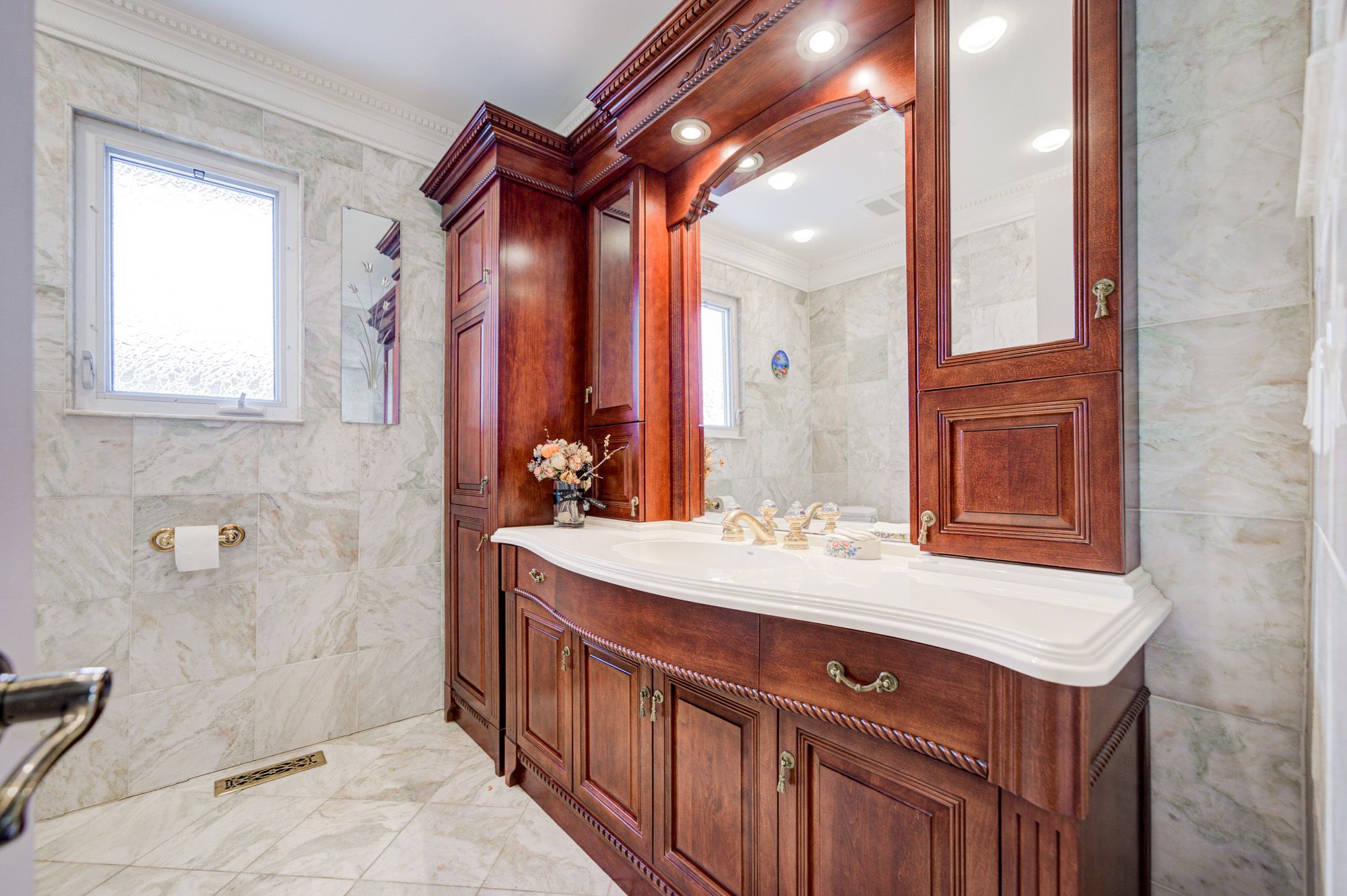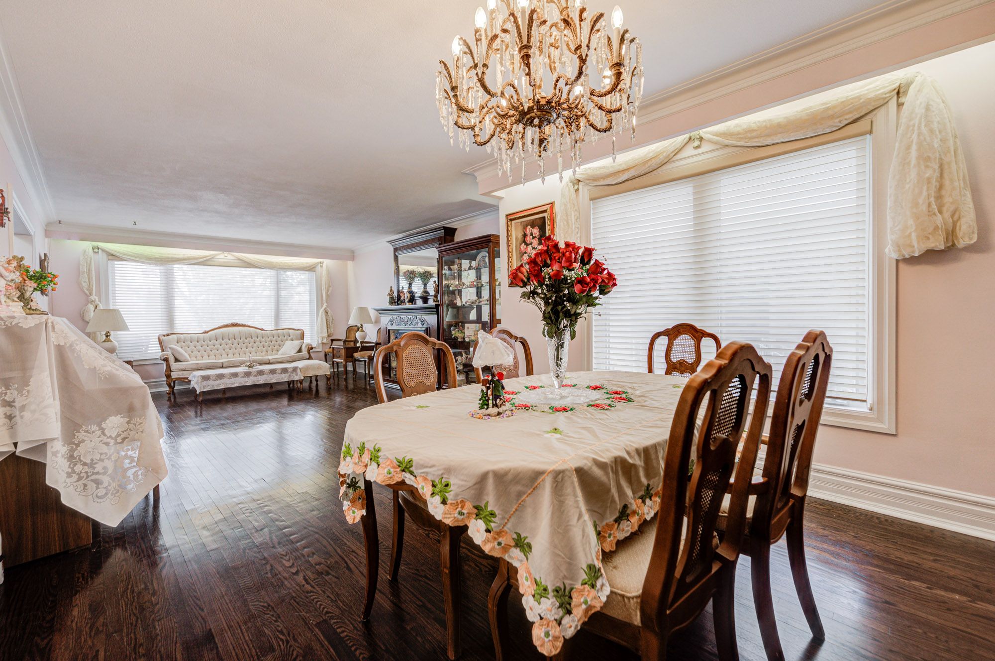 Impressive detached home in prime North York featuring 3+2 bedrooms, 4 bathrooms, and 2 kitchens with over 3,500 sq.ft. of living space. Large Library can be used as a separate bedroom. Grand 20-ft long hall creates a dramatic entrance, complemented by a bright and functional layout. Renovated kitchen with maple cabinetry offers both style and practicality. Separate side entrance to a finished basement with second kitchen and additional bedroom - ideal for extended family or income potential. Large family room and wet bar. Private driveway and garage. Located on a quiet, family-friendly street close to top-rated schools, parks, shopping, transit, and highways.