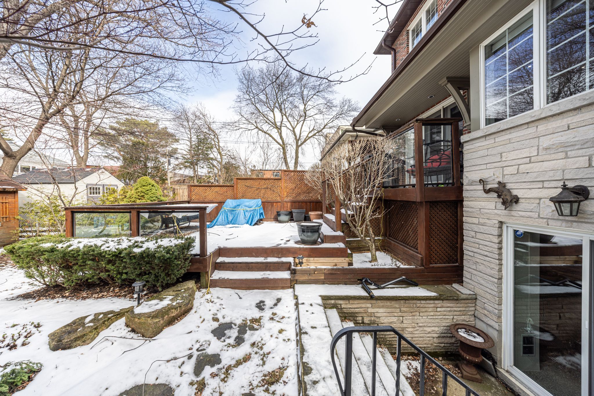 Exceptional 4-bedroom family home in the heart of Chaplin Estates, conveniently located near UCC and BSS, offering approximately 3,009 sq ft above grade plus a finished walkout basement. This deceptively spacious residence has been thoughtfully expanded with a substantial 3-level addition, seamlessly blending the charm of its traditional façade with the scale and functionality of a much larger home. Elegant principal rooms include a formal living room with wood-burning fireplace and a gracious dining room ideal for entertaining. The kitchen, complete with breakfast area and quality appliances, opens to a generous family room with walkout to a private deck and beautifully landscaped garden-well suited for both everyday living and hosting. Character details such as plaster mouldings, hardwood flooring and quality millwork complement the home's overall sense of warmth and craftsmanship. The upper levels offer well-proportioned bedrooms and a flexible layout, including a third level that provides valuable additional space for a growing family, home office or guest retreat. The finished walkout lower level offers excellent recreational space with natural light and direct access to the backyard. Pride of ownership is evident throughout; the home has been meticulously maintained and is entirely move-in ready, while offering a clear opportunity for a buyer to modernize kitchen, bathrooms and finishes over time. Set on a rare 35' lot with a private driveway-an uncommon and highly desirable feature in this neighbourhood-this home is ideally positioned just steps to Eglinton's shops, restaurants and everyday amenities, as well as the Crosstown LRT for convenient transit access. A compelling opportunity to secure a well-maintained family home with exceptional space, location and long-term upside in one of Midtown Toronto's most sought-after communities.