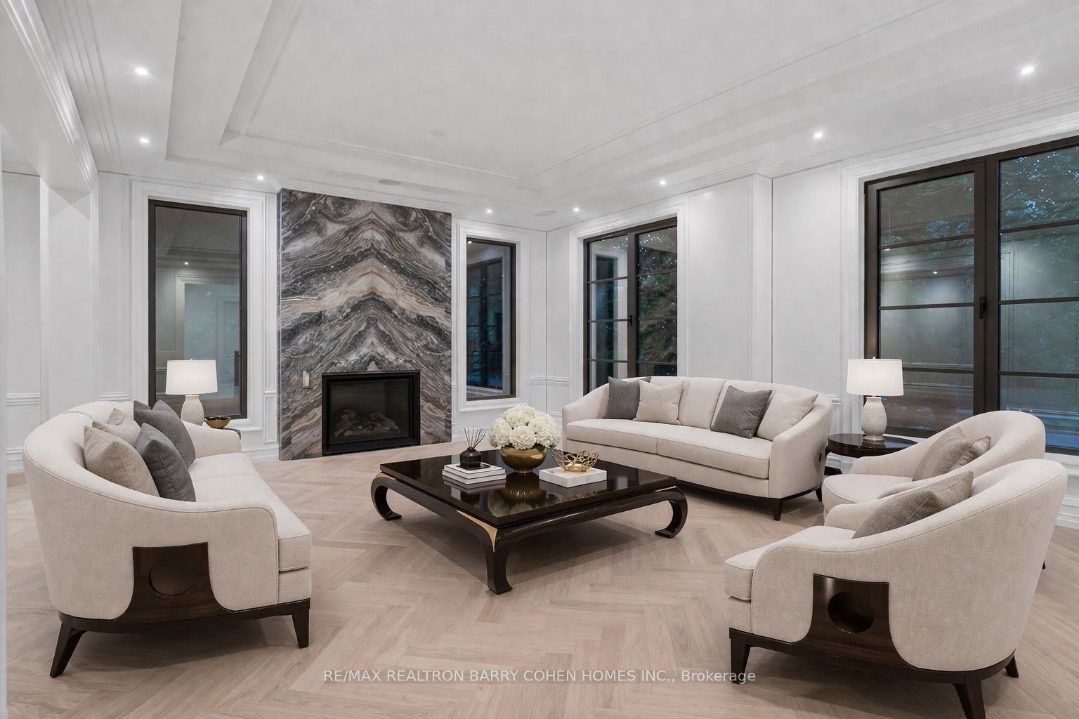 Architecturally Significant Iconic Estate , Situated on Toronto's Most Exclusive & Prestigious Banbury Neighborhood With Walking Distance To Bridle Path Trail. Over 7300 Sqft. Above Grade Luxurious Living Area Plus Over 3000 Sqft. Finished And Walkout Heated Basement, Designed And Crafted By An Acclaimed Architect & Builder. Clad in Indiana Limestone Front Elevation W/Architectural Brick Accents, Enhanced by Lush Landscaping, a Heated Driveway & Dramatic Exterior Lighting. Exceptional Craftsmanship is Showcased Throughout W/Custom Walnut & White Oak Millwork, Imported European Slabs, 12' Ceilings, Elegant Wall Paneling, Detailed Moldings, Heated Floors & Custom Wood Accent Walls. Floor-to-Ceiling Tilt & Turn Aluminum Windows & Sliding Doors, Flood The Home W/Natural Light. The Grand Foyer Features Imported Italian Slabs, a Striking Staircase, And An Oversized Skylight, Setting a Refined & Elegant Tone. Expansive Principal Rooms Highlight Chevron Hardwood Floorings, Gas Fireplaces, And Book-Matched Italian Slab Feature Walls.The Chef-s Kitchen Offers Dual Islands, Top-Of-The-Line B/I Appliances, a Butlers Pantry W/Servery Access to the Formal Dining Room & Custom Cabinetry. The Breakfast Area & Oversized Family Rm. Include Large-Scale Aluminum Sliding Doors Leading to an Expansive Deck & Concrete Swimming Pool. A 4-Stop Elevator Services All Three Levels, Plus an Additional Private Lift W/Direct Garage Access Fully Accessibility-Friendly. The Primary Retreat Boasts Coffered Ceilings, a Wet Bar, Fireplace, Boutique-Style Hers Dressing Boudoir, His Closet, And a Lavish 7-Piece Ensuite Designed to Impress. The Entertainment-Ready Basement Boasts an Oversized Recreation Area W/ 2 Double Aluminum Sliding Doors Offering Garden-Level Views And Abundant Natural Light, a Large Gym W/Washroom and Dry Sauna, a Home Theatre, Additional Washer/Dryer, And Direct Access From the Garage Complete W/a Dog Wash Station & Elevator Access. The Finest in Luxury Amenities!
