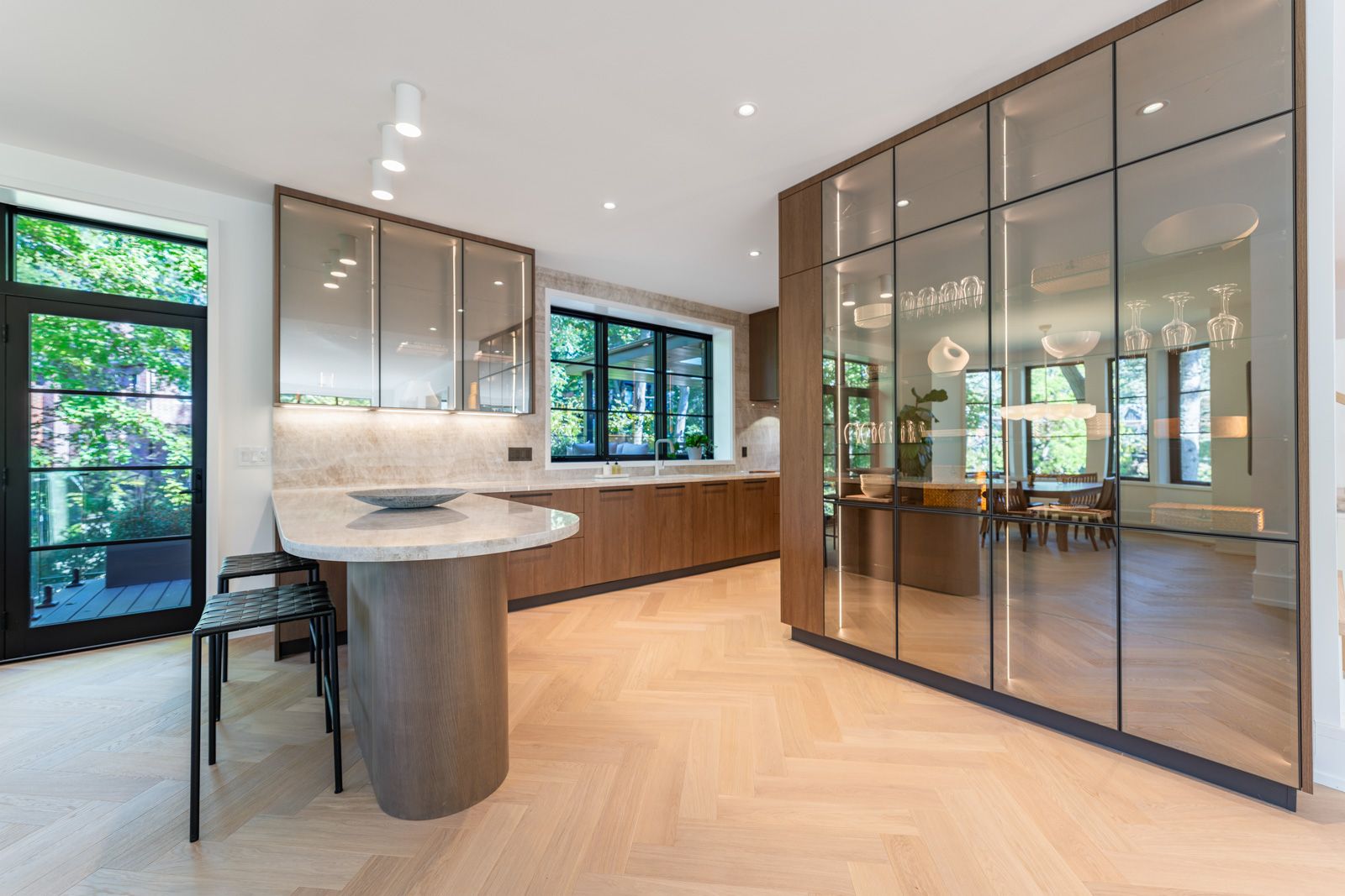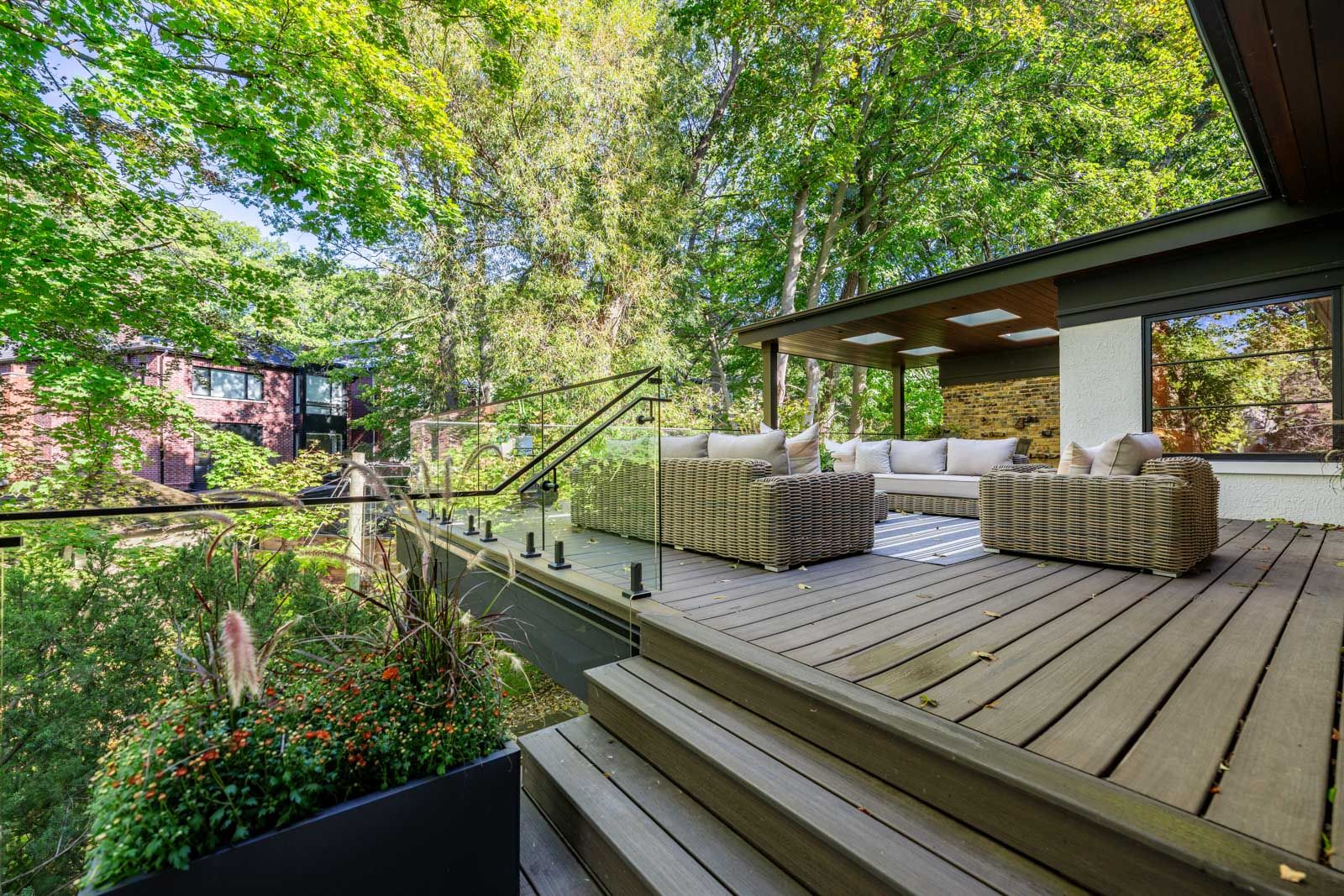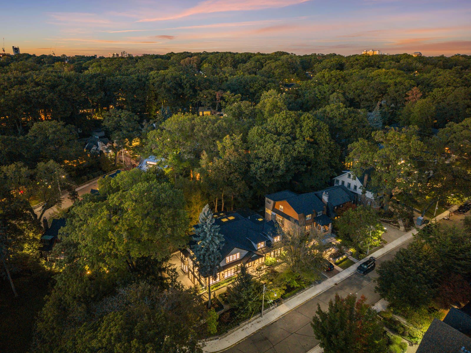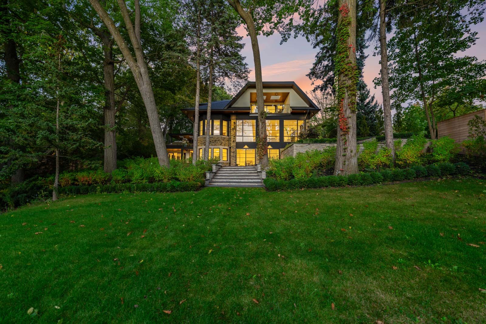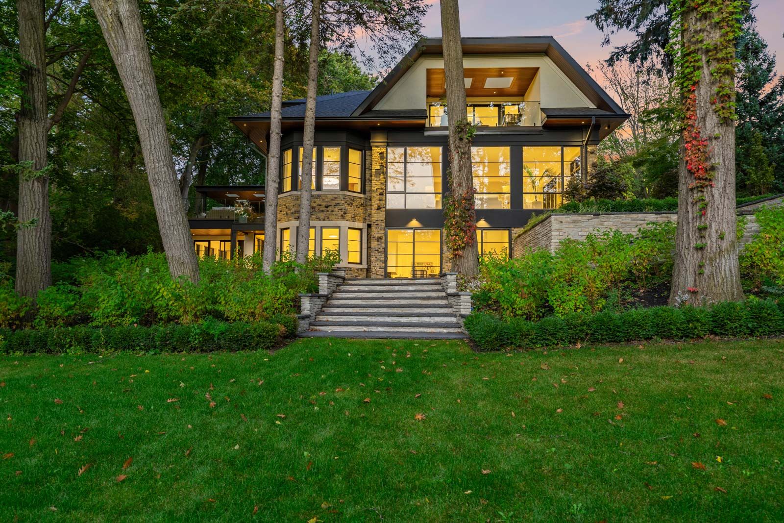 Completely restored and reimagined, Longwood House is a landmark estate in a coveted, private pocket of The Beach. Once the summer retreat of a 19th-century lumber baron, this iconic residence now stands as a masterful blend of historic grandeur and art-deco sophistication. Commanding nearly half an acre across two lots, 8 Crown Park Road sits privately perched at the end of a quiet cul-de-sac, surrounded by the lush beauty of Ivan Forrest Gardens and overlooking Glen Manor Drive and the Glen Stewart Ravine. Inside, the scale is breathtaking with three full levels, seven walkouts, and over 8,000 sq. ft. of living space (Main: 2,871 sq. ft. | 2nd: 2,425 sq. ft. | Lower: 3,074 sq. ft.). Every inch has been meticulously rebuilt with timeless craftsmanship and curated materials sourced from around the world: imported tile from Spain and South America, alabaster lighting in the living room, pantry, and bar, and three custom gas fireplaces wrapped in bespoke marble. The grounds are a private oasis. Over $1M in landscaping includes restored original brick (including rare clinker brick), solid wood soffits, a hydronic heated driveway, walkway, entry, and garage floor, a full-property irrigation system, Ebel stone retaining walls with granite caps, and an expansive rear terrace finished in black granite. Elegant, versatile spaces throughout offer both light and warmth from the stately foyer, sunlit dining room, and Scavolini millwork home office, to the gym, games' room, two wet bars, wine cellar, and in-law suite potential. With wall-to-wall windows framing lush ravine and garden views from every angle, Longwood House truly is The Crown of the Beach, your own private park in the heart of the city.