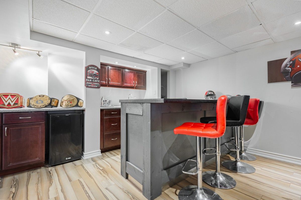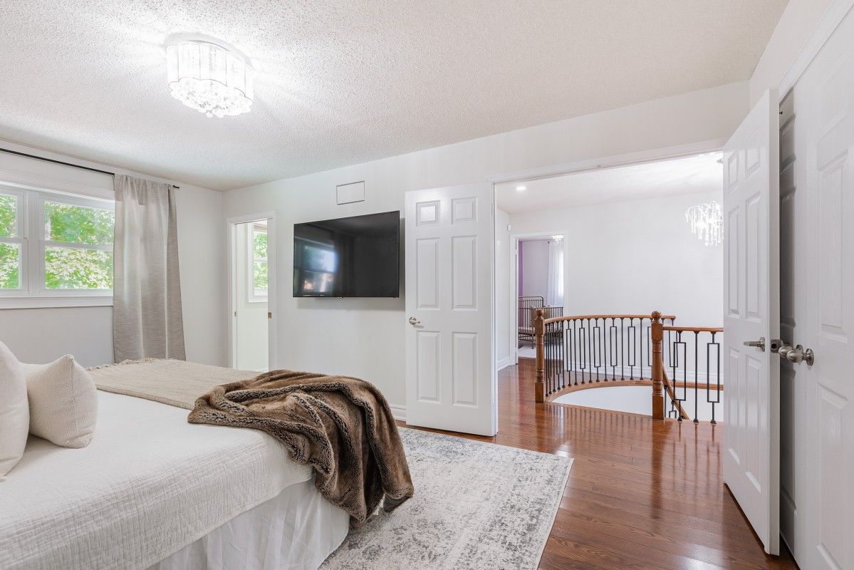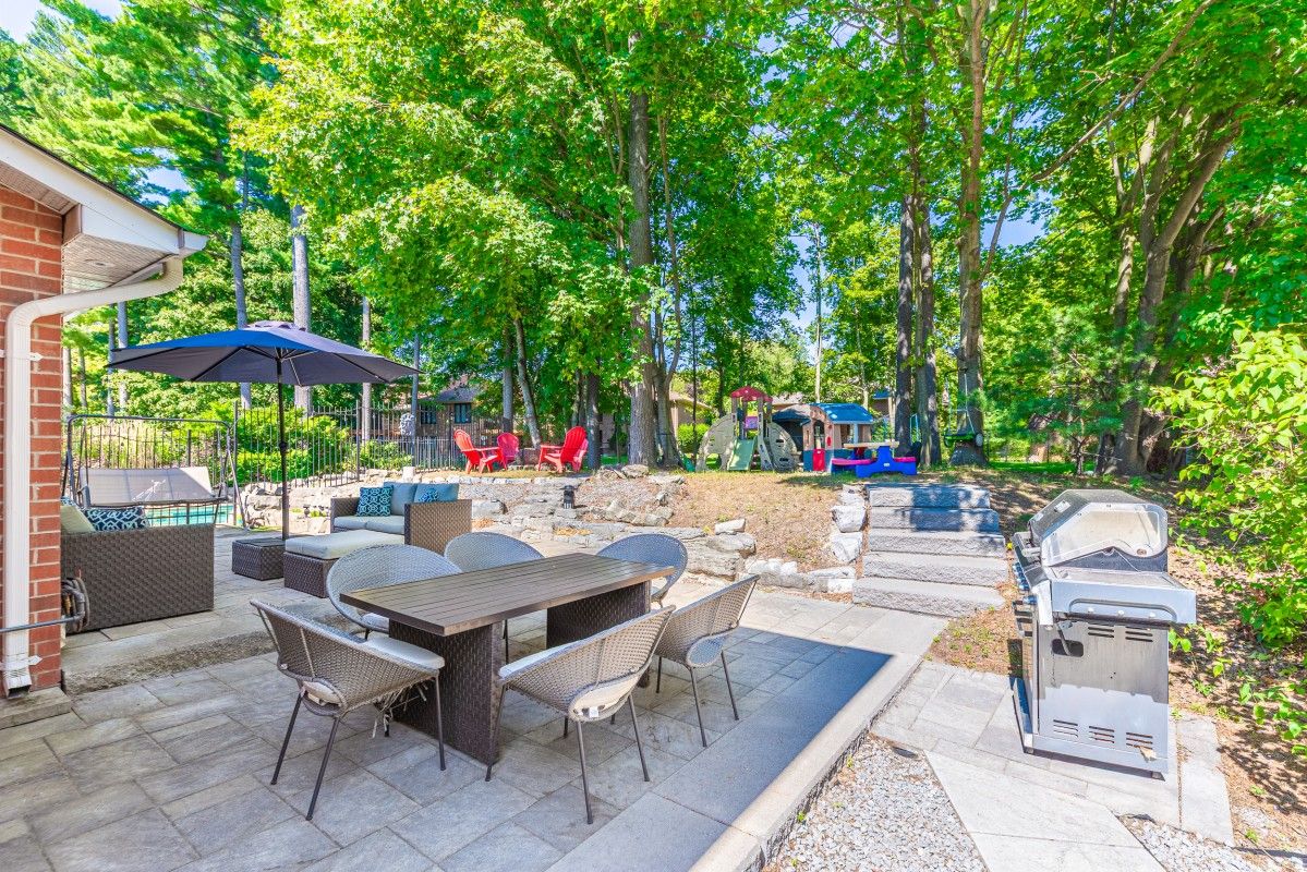 Welcome to The Exclusive Enclaves Community. This rarely offered home blends elegance, functionality, and resort-style living. Featuring a spacious 4+1 bedroom, 4-bath layout, this residence offers an impressive triple-car garage with parking for up to 9 vehicles. Step inside to find a thoughtfully designed floor plan with hardwood flooring throughout the main level, a bright living and dining area, and a cozy family room with a Electric fireplace overlooking the backyard oasis. Recent upgrades include new Windows, insulated garage doors. A fully functional industrial furnace separate from the main dwelling furnace. The updated kitchen comes equipped with modern appliances and ample storage, flowing seamlessly into the breakfast area. Upstairs, generously sized bedrooms include a primary suite with a private ensuite and walk-in closet. The finished basement offers flexible living space with a rec room, additional bedroom, wet bar, and pot lights, perfect for entertaining or extended family living. Outdoors, enjoy your own private retreat: an inground pool, landscaped yard with mature trees, and Muskoka-like views backing onto green space. Kids playground, trails, and conservation areas are all nearby, creating the perfect balance of convenience and nature. Recent upgrades include new windows, insulated garage doors, ensuring comfort and peace of mind. Located minutes from schools, shopping, Highway 401/407, and transit, this home offers both luxury and lifestyle.