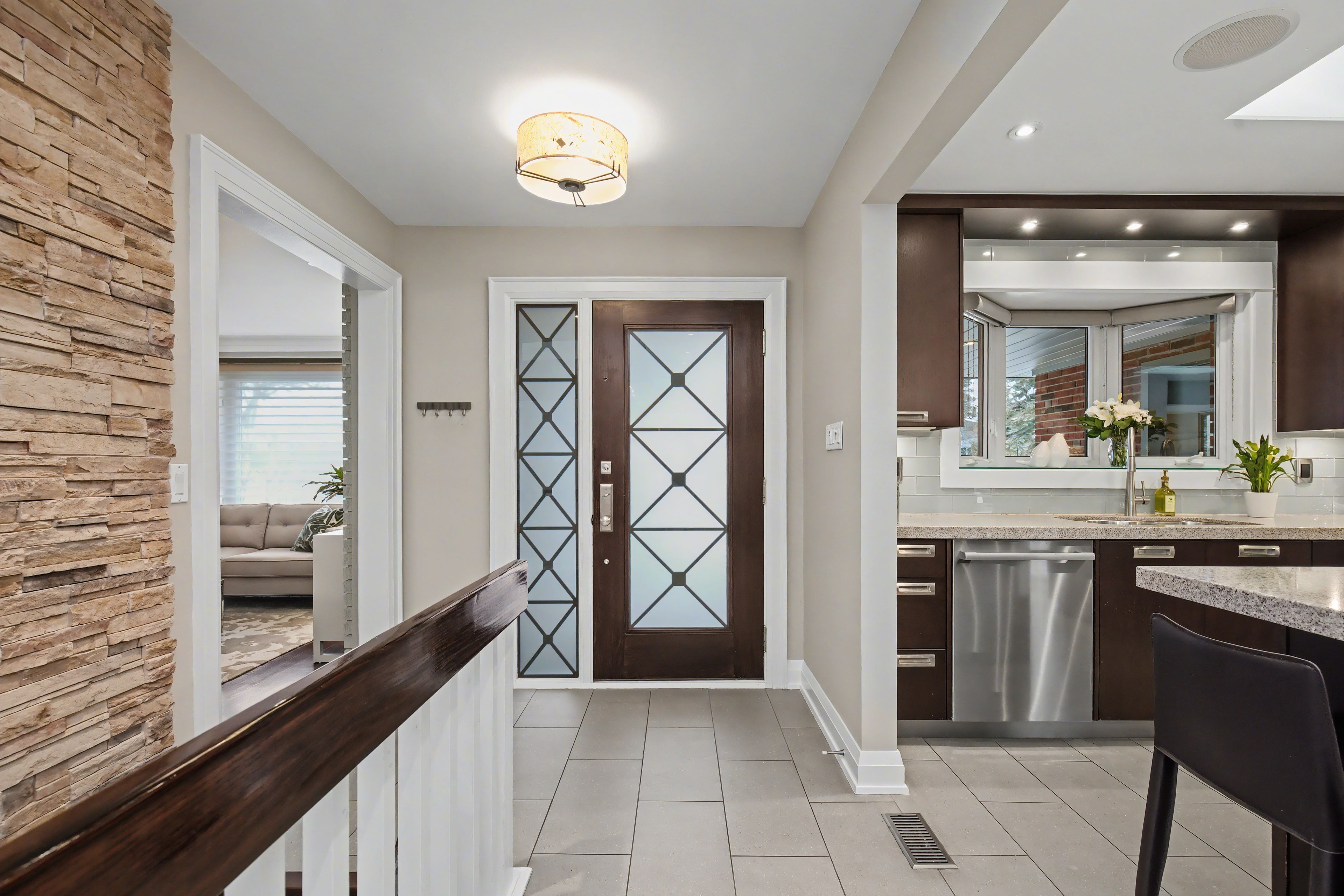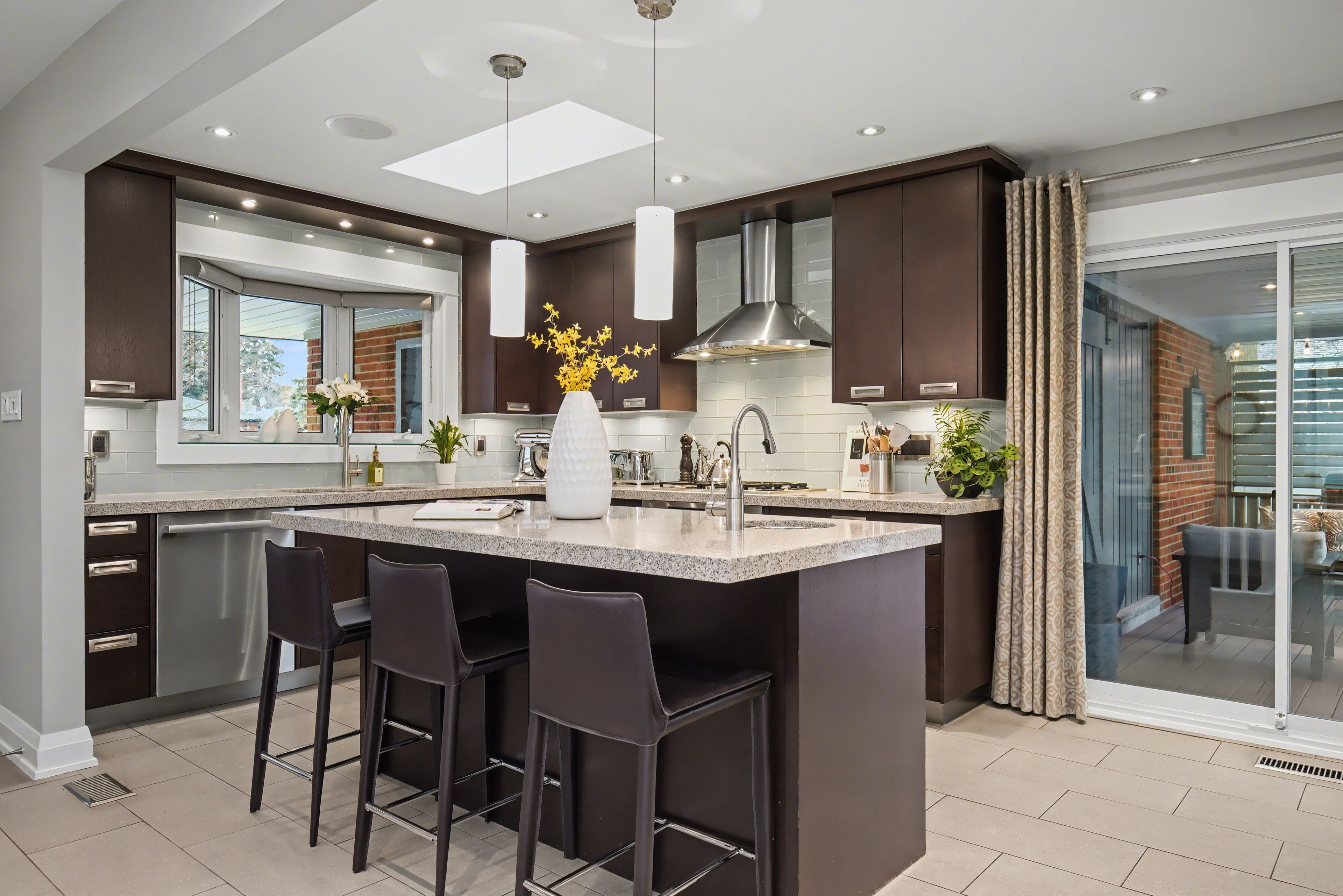 Gorgeous in Guildwood - A Standout home in One of Toronto's Most Sought-After Lakeside Neighbourhoods. This beautifully maintained home offers an exceptional blend of location, comfort, and long-term value. Quiet, established streets, excellent schools, and seamless commuter access make this a neighbourhood a true gem. Thoughtfully designed, with large windows and three skylights filling the space with natural light. The main living areas feature a gas fireplace and an elegant box-beam ceiling in the dining room, creating a warm, refined atmosphere. The eat-in kitchen offers a large centre island, quartz countertops, and a walkout to a covered PVC low-maintenance composite deck and stone patio, ideal for everyday living and entertaining in any weather. Three bedrooms complete the main floor, including a primary suite with a 3pc ensuite, plus an additional full bath with a deep soaker tub. The fully finished basement adds valuable living space with a family room, home office, two additional bedrooms, a 3pc bathroom, separate laundry room, and ample storage. Recent updates include new carpeting in the basement and spare bedrooms, along with heated floors in both upstairs bathrooms. All interior walls and doors are sound-insulated, reflecting quality construction. Outdoor features include a barn-door entrance from the deck to the garage, a covered front porch, pot lighting in the soffits, a 2-car garage, and a wide private driveway with ample parking. The beautifully landscaped lot offers mature trees, landscape lighting, a fully fenced backyard, and a vinyl-sided shed with power and lighting for added storage or workspace. Walk to Guildwood GO, minutes to Highway 401, close to Kingston Road shopping and dining, and steps to parks, schools, and the waterfront, this home delivers on lifestyle and livability. More than a home - it's a rare opportunity to enjoy lakeside living, sun-filled spaces, and effortless commuting in one of Guildwood's most cherished communities.